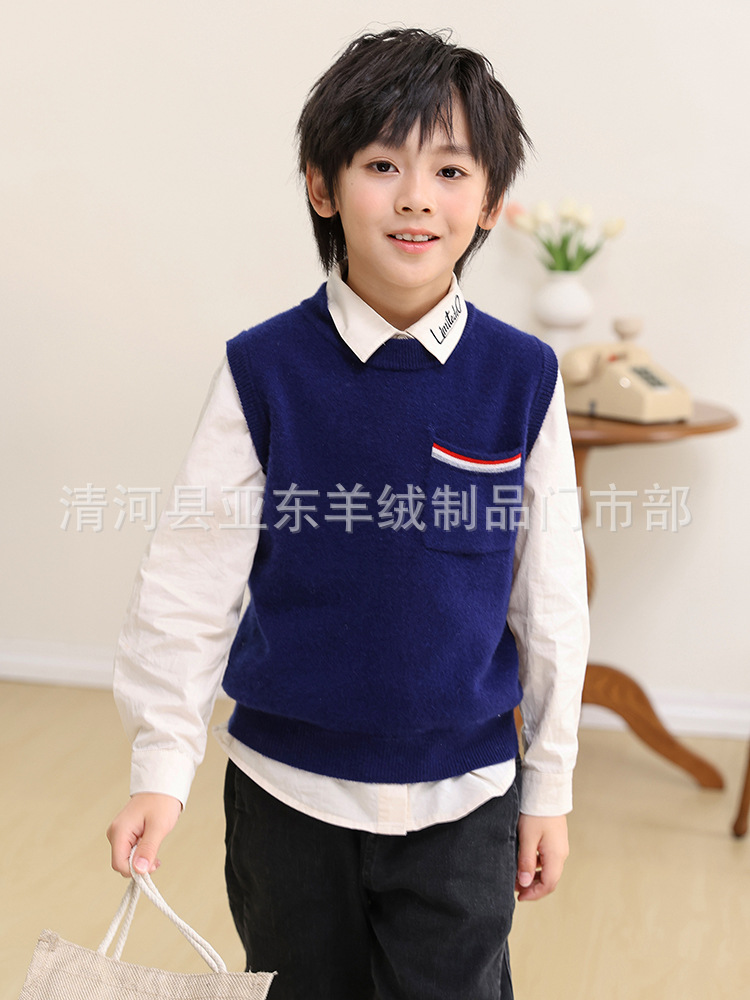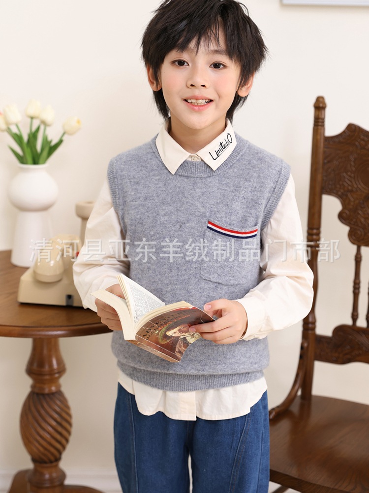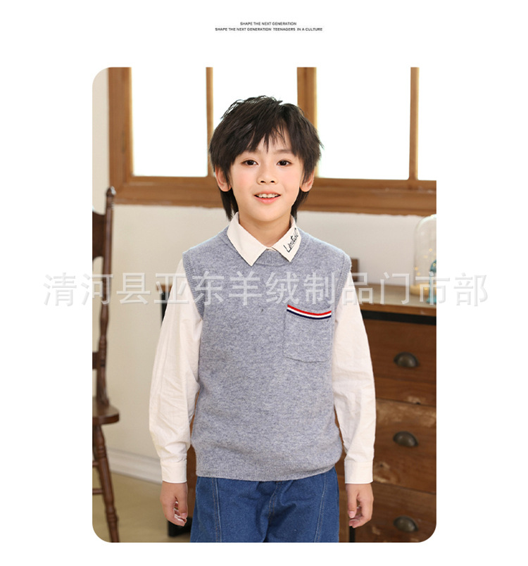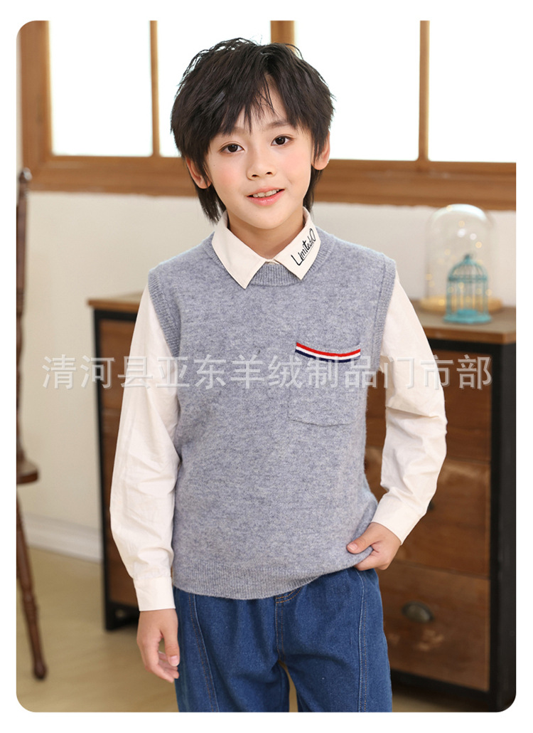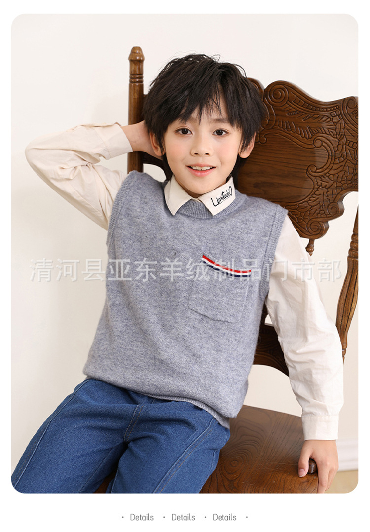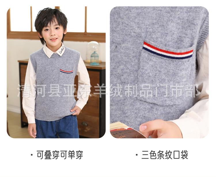 100 순수 양모 어린이 주머니 조끼 소년 중 · 대형 어린이 가을 · 겨울 최고급 바토밍 니트 웨이스트코트 느슨한 조끼스토어 가기