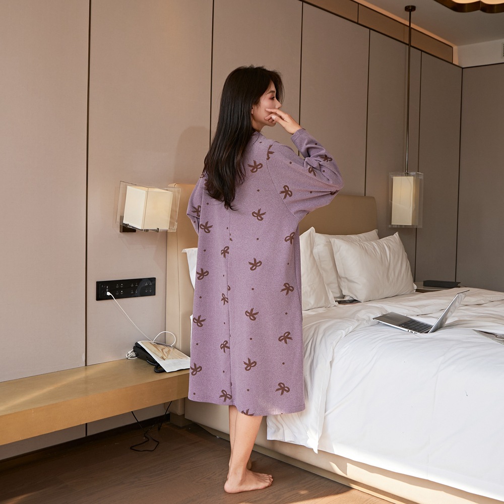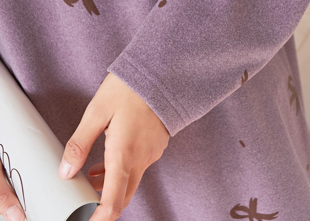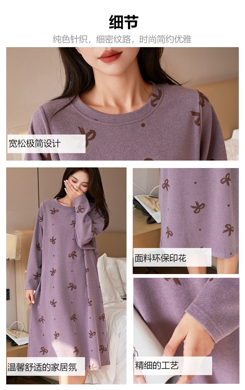 本产品采用的是徳绒阳离子的面料 柔软舒适 保暖性好 忙碌了一天的您 多麽希望回到家有口热乎的饭菜等您 如果再有这么一件柔软温暖的睡裙家居服是不是会幸福感拉升了不少呢