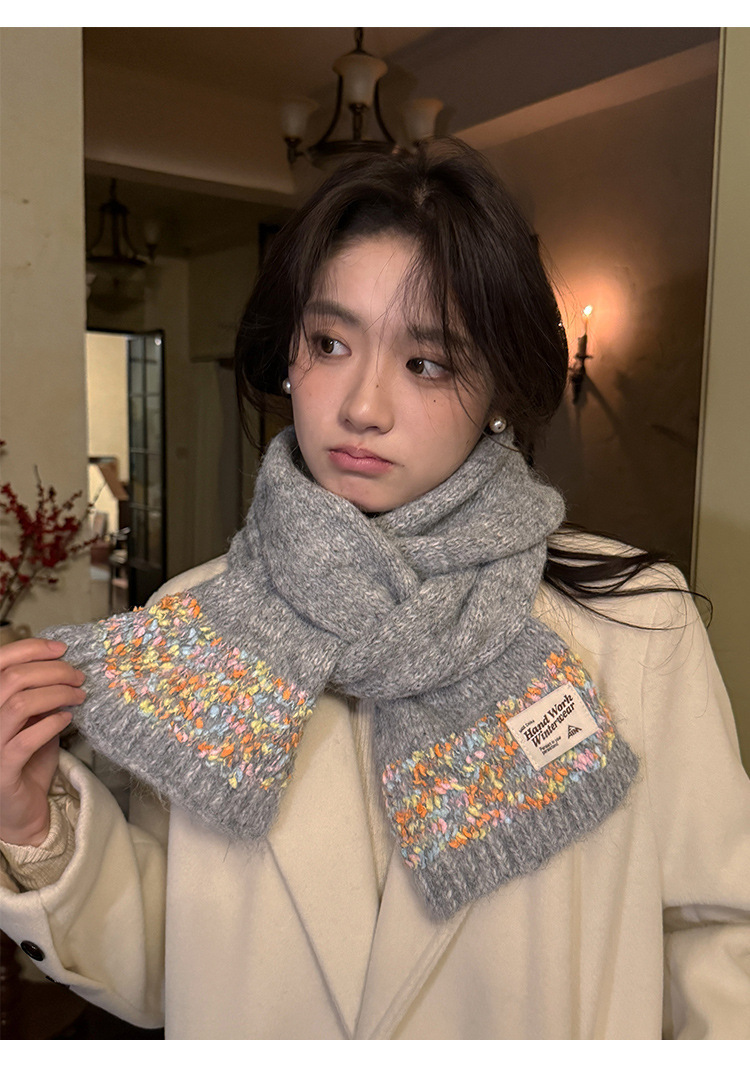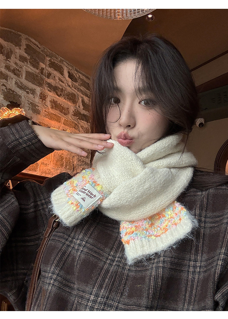 2024 새로운 컬러 캔디 닷 겨울 울 스카프 도파민 컬러 소프트 왁스 니트 스카프