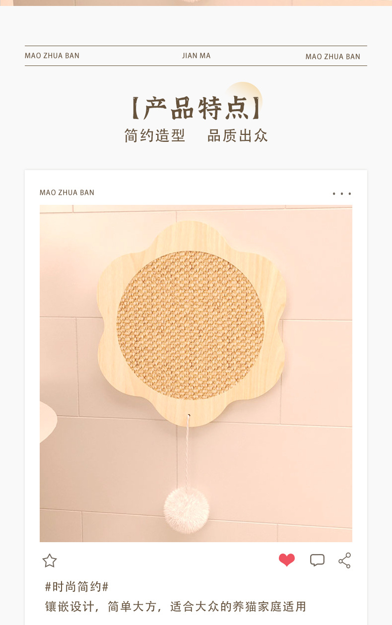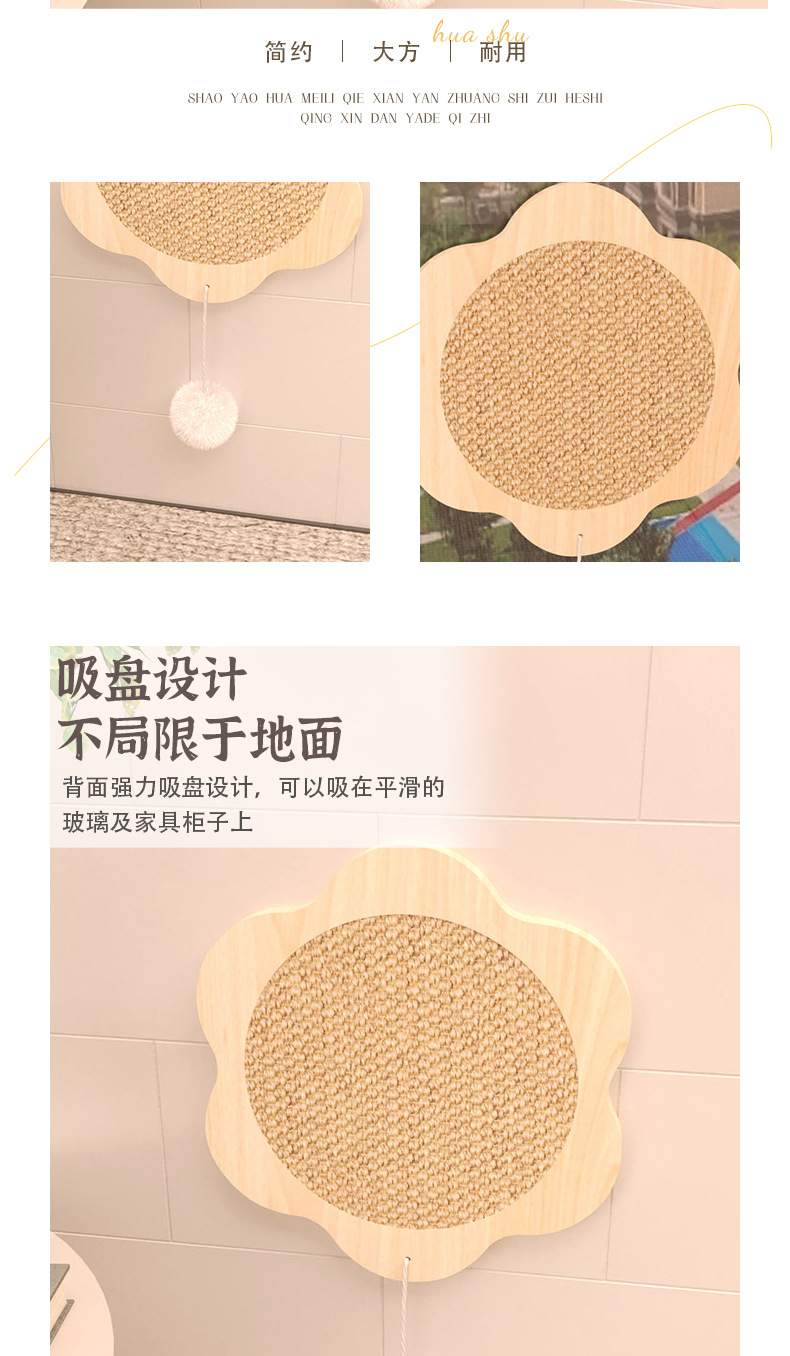 Sucker Sisal 고양이 긁는 보드 매달려 고양이 발 보드 수직 벽 고착 발톱 연삭 유물 공간 절약 고양이 장난감 용품스토어 가기