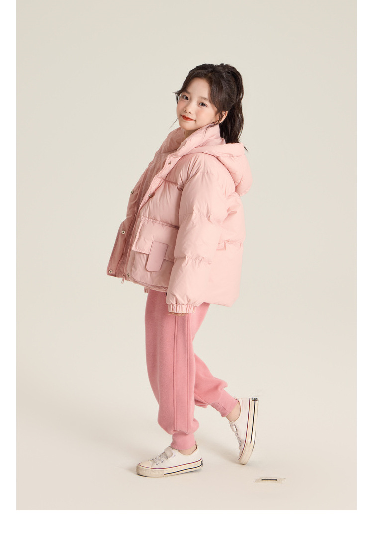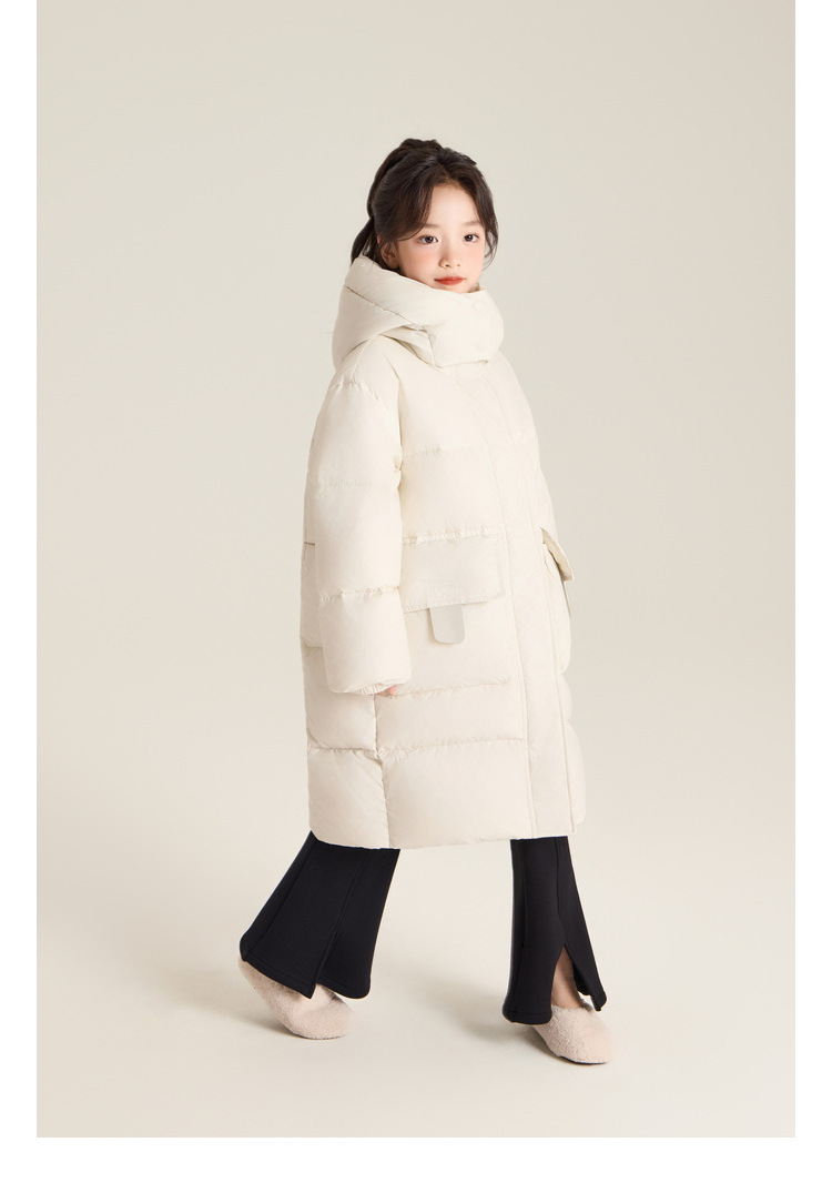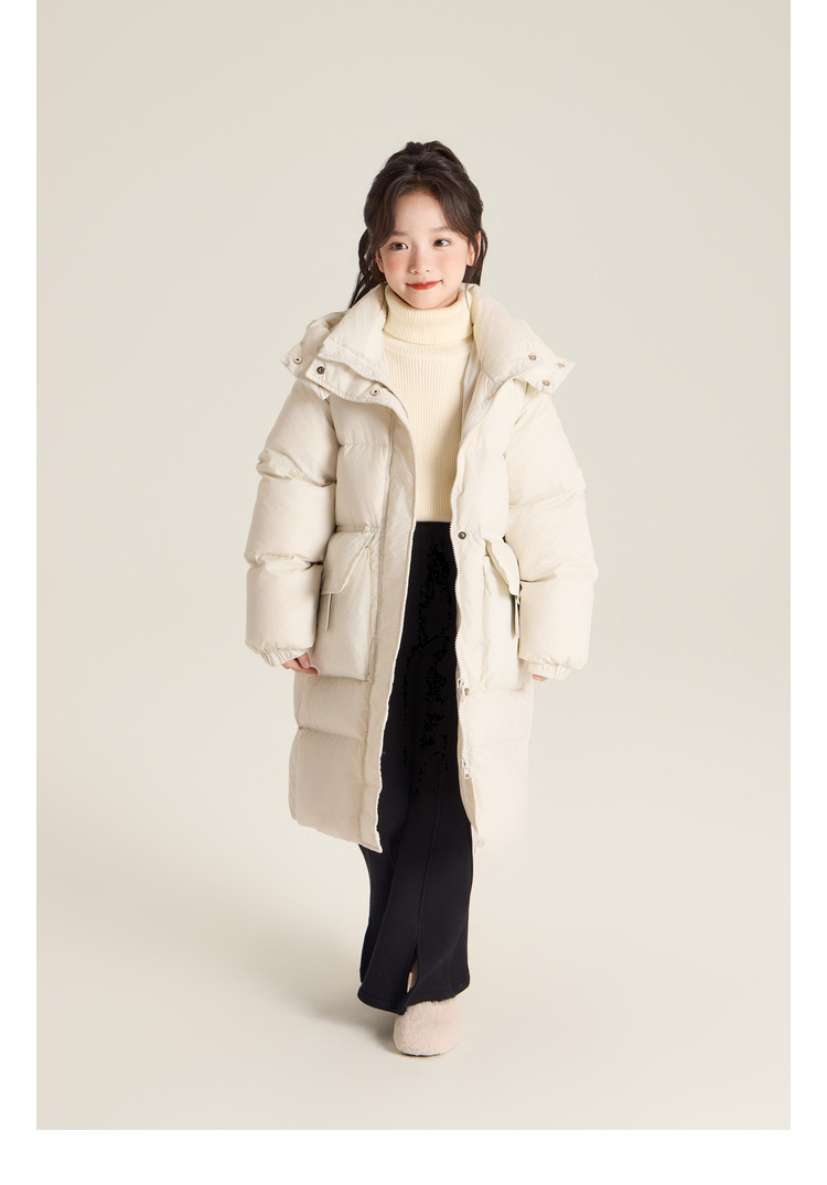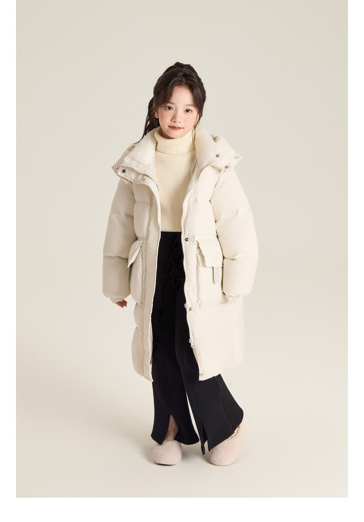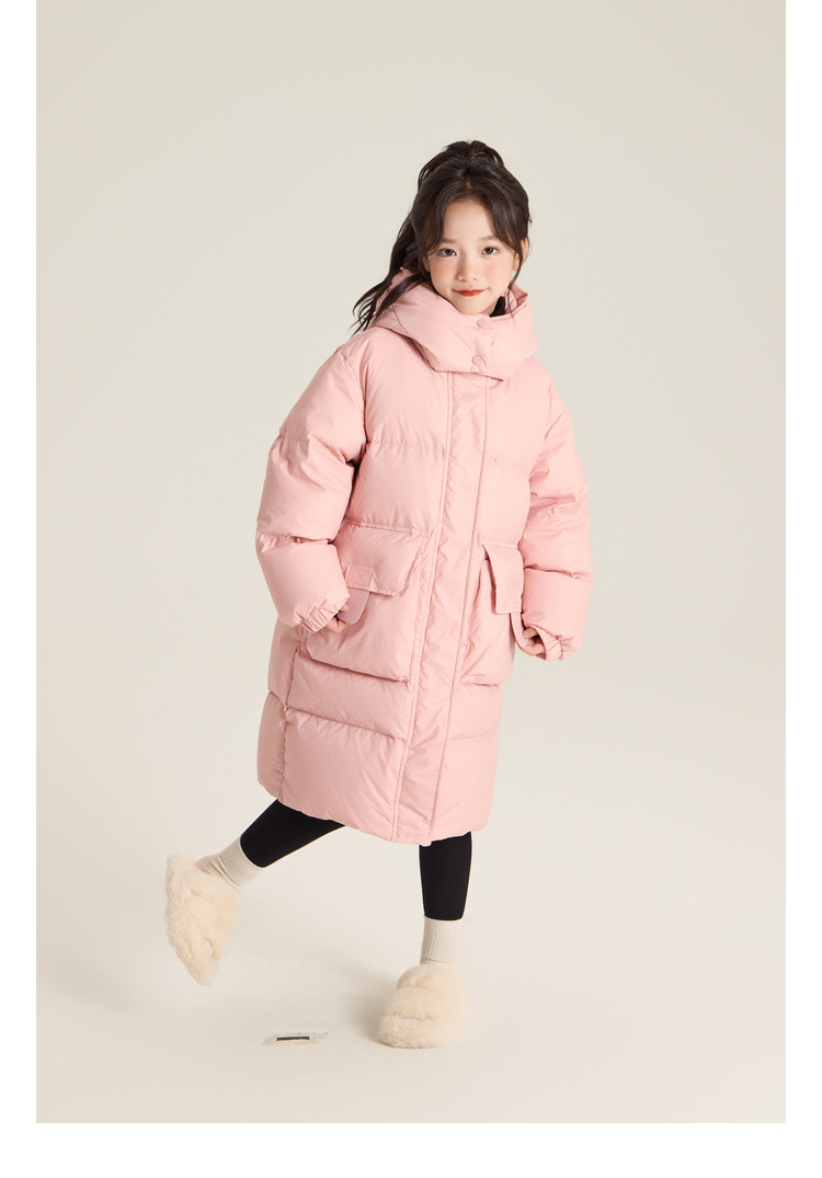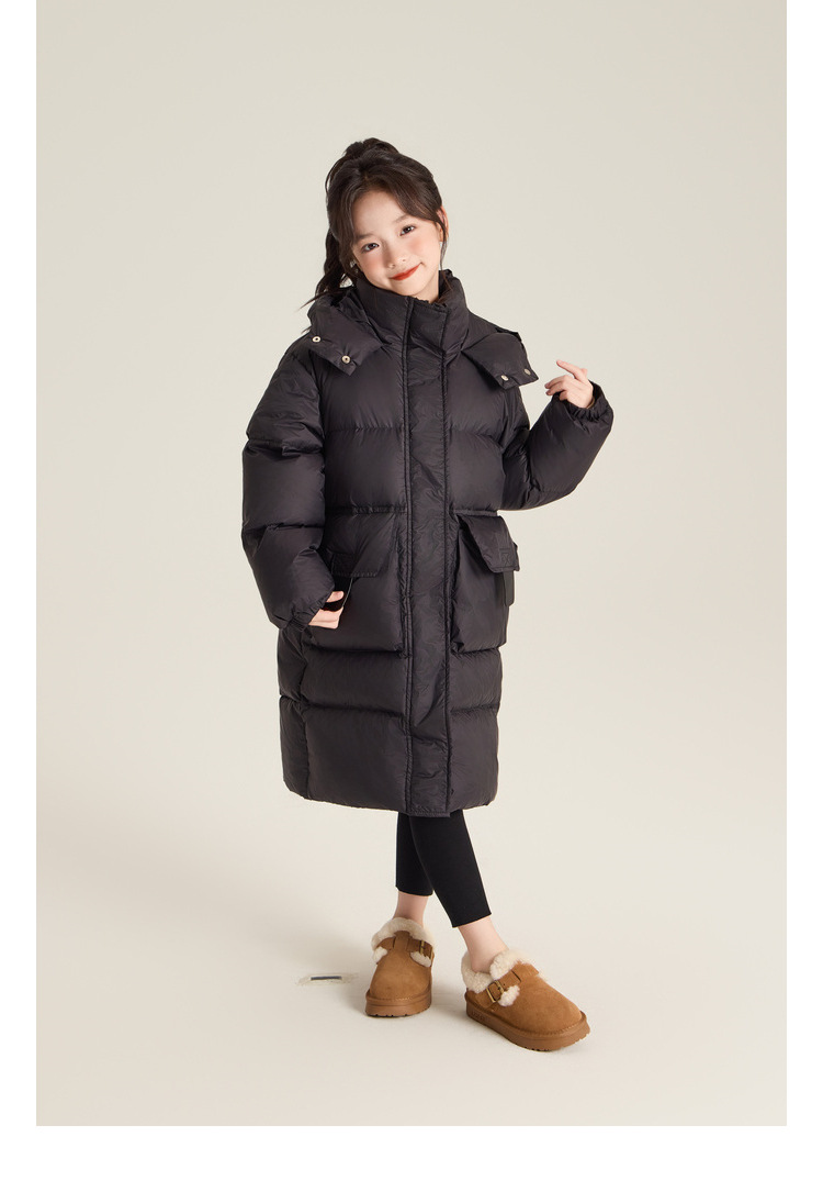 Amybaby 소녀 다운 재킷 겨울 2024 새로운 한국 부드러운 단색 후드 캐주얼 롱 다운 재킷스토어 가기