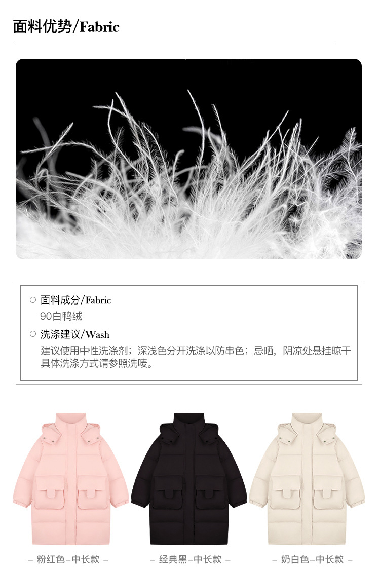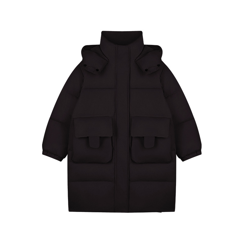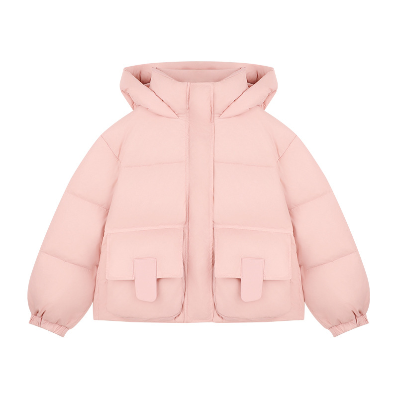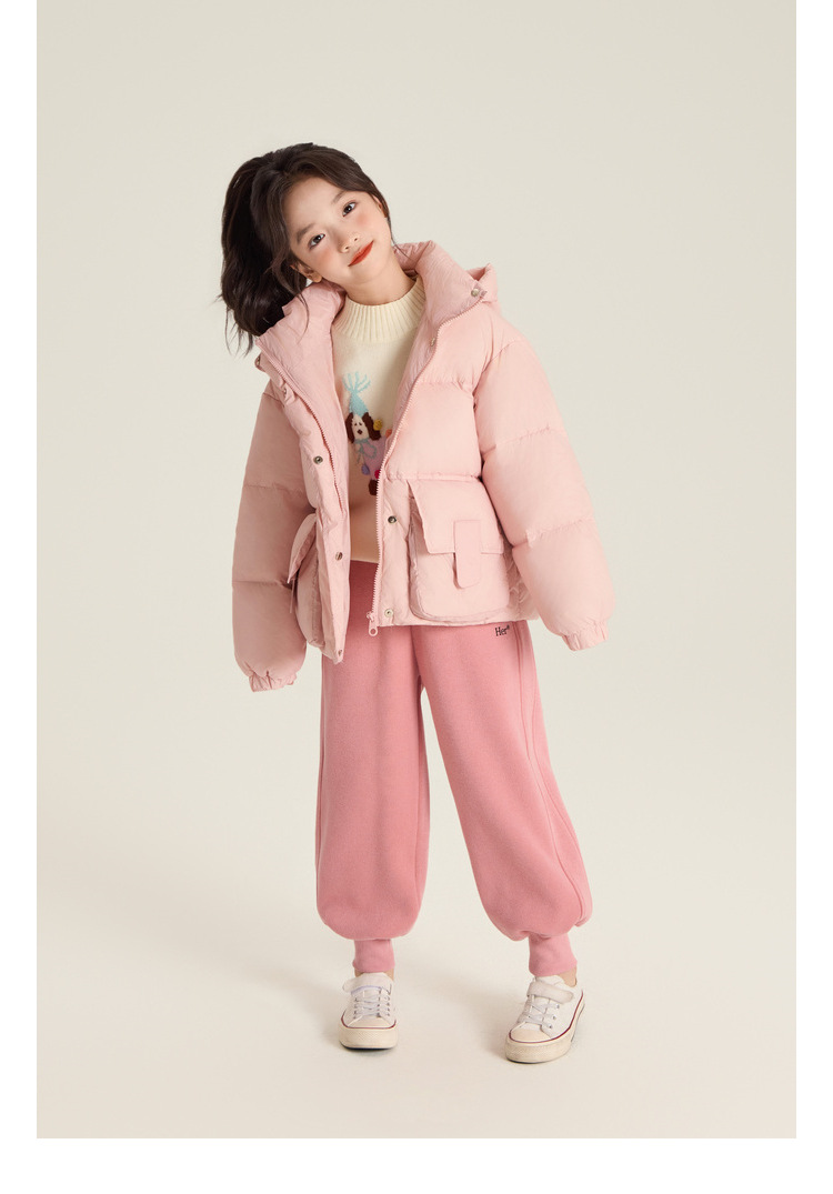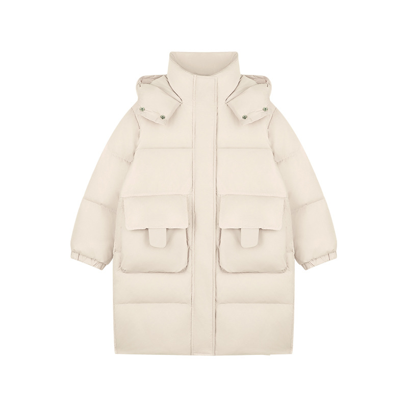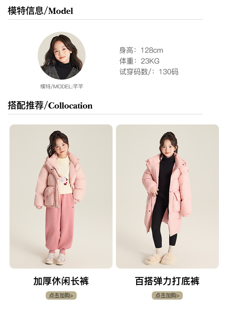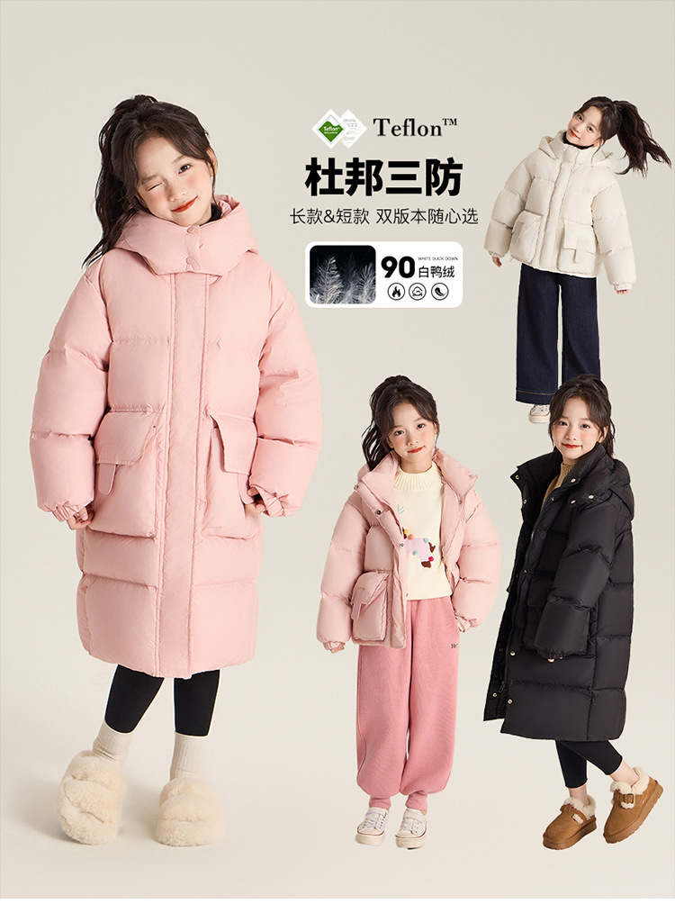 Amybaby 소녀 다운 재킷 겨울 2024 새로운 한국 부드러운 단색 후드 캐주얼 롱 다운 재킷스토어 가기