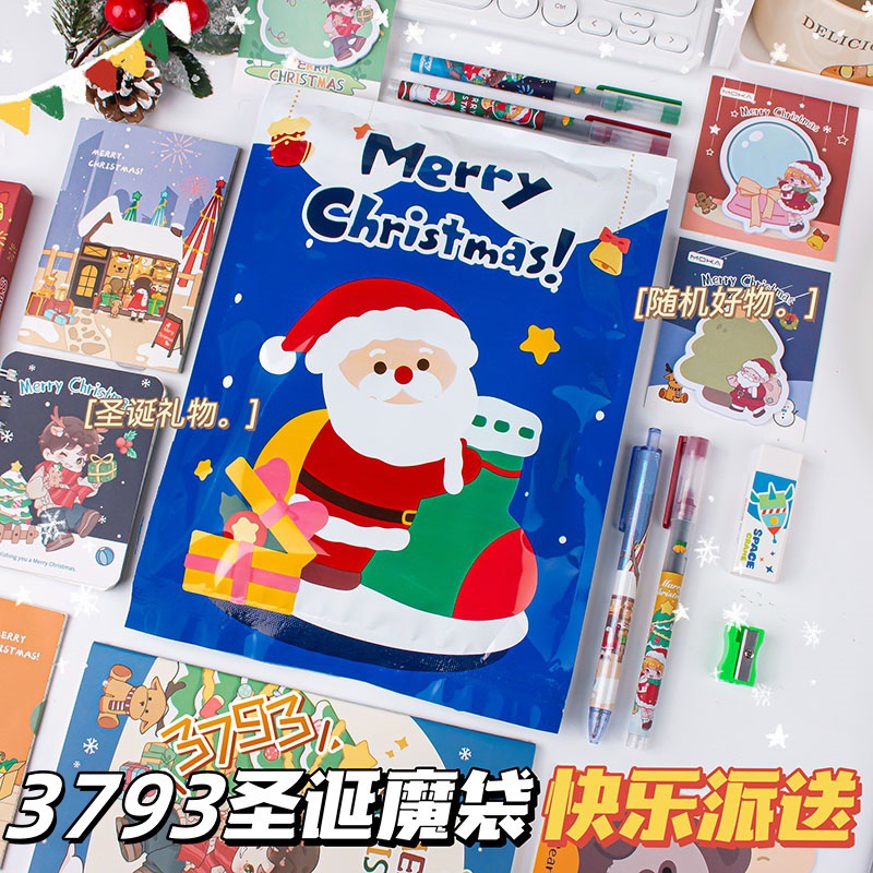 A5 크리스마스 시리즈 매직 가방 문구 세트 초등학생 깜짝 문구 블라인드 박스 선물 가방 행운의 블라인드 가방 작은 선물