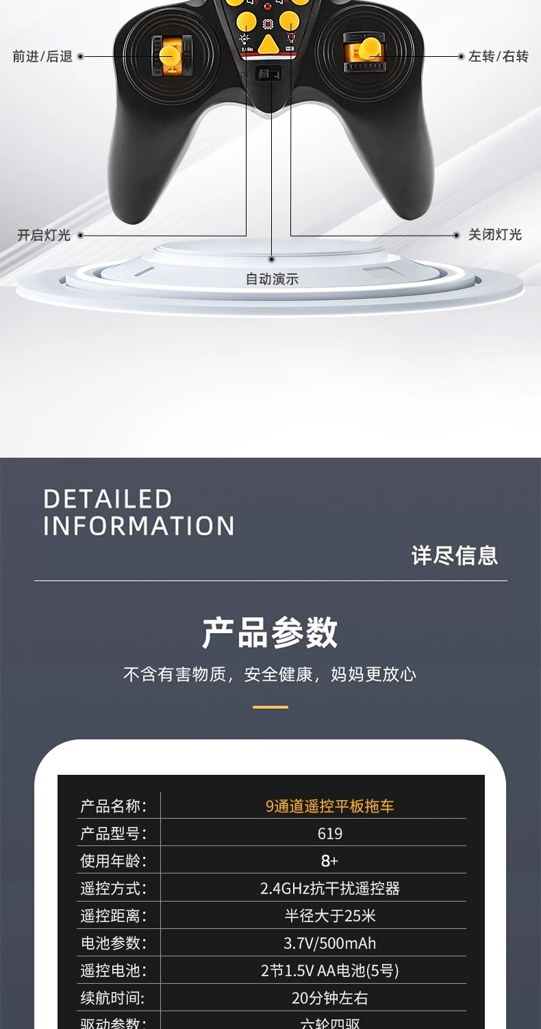 • 619-9채널 원격조종 플랫베드카 [ISO9001 품질인증 + 전체검사 및 배송]