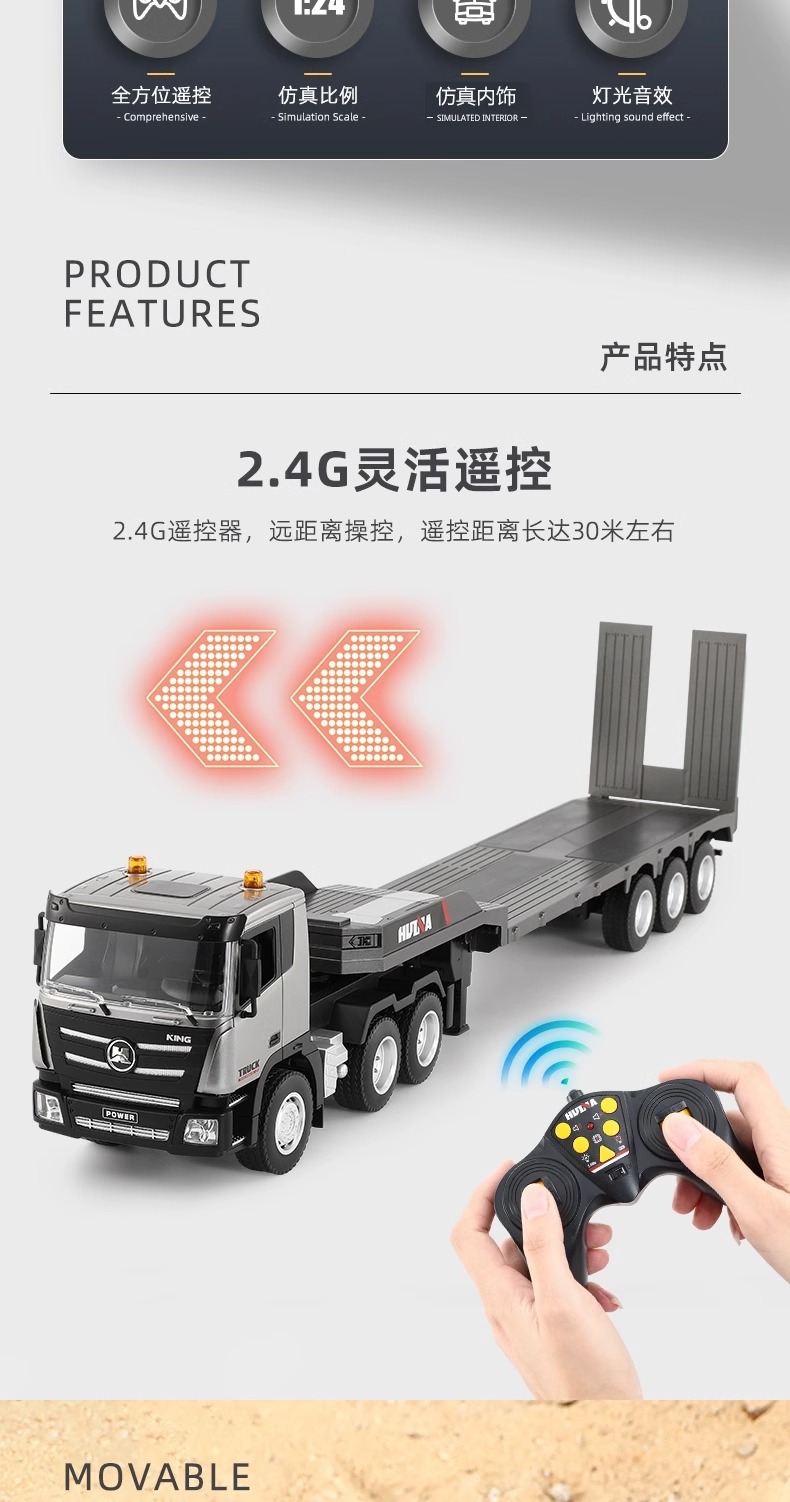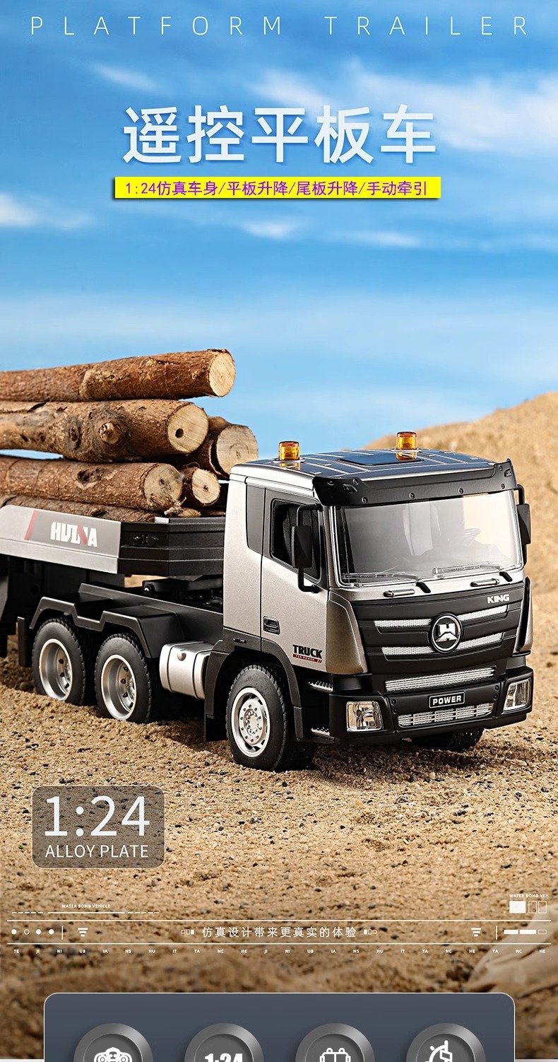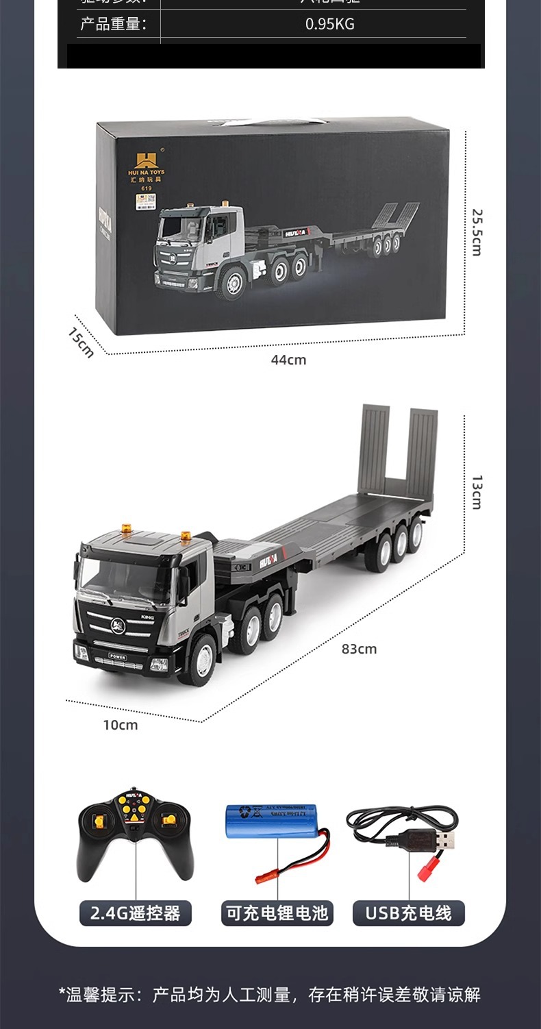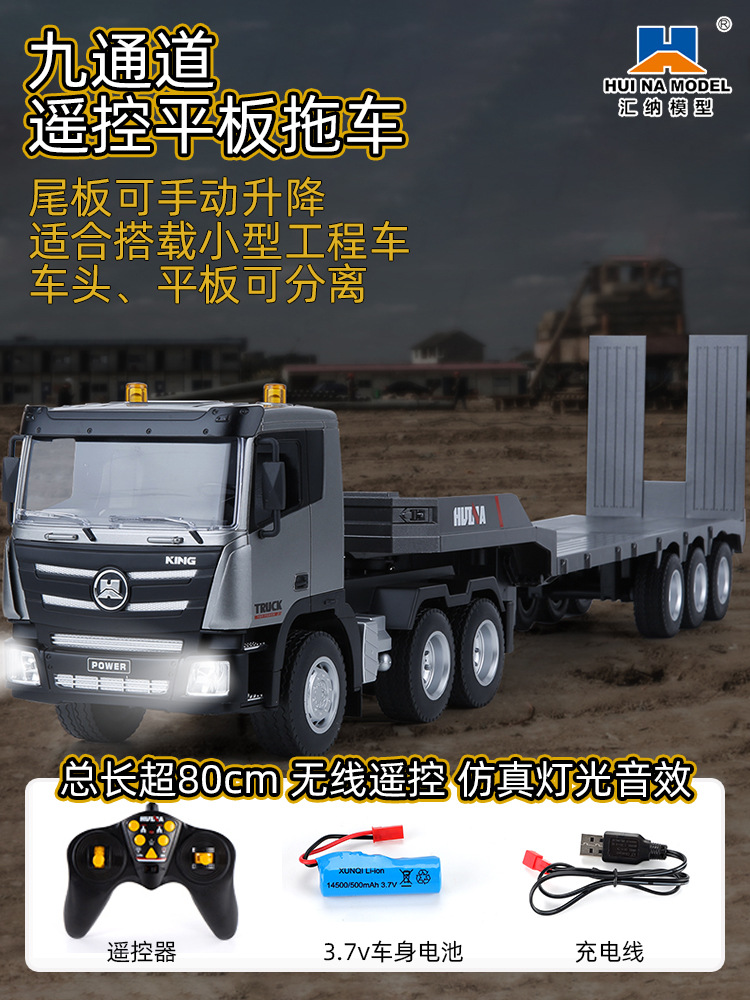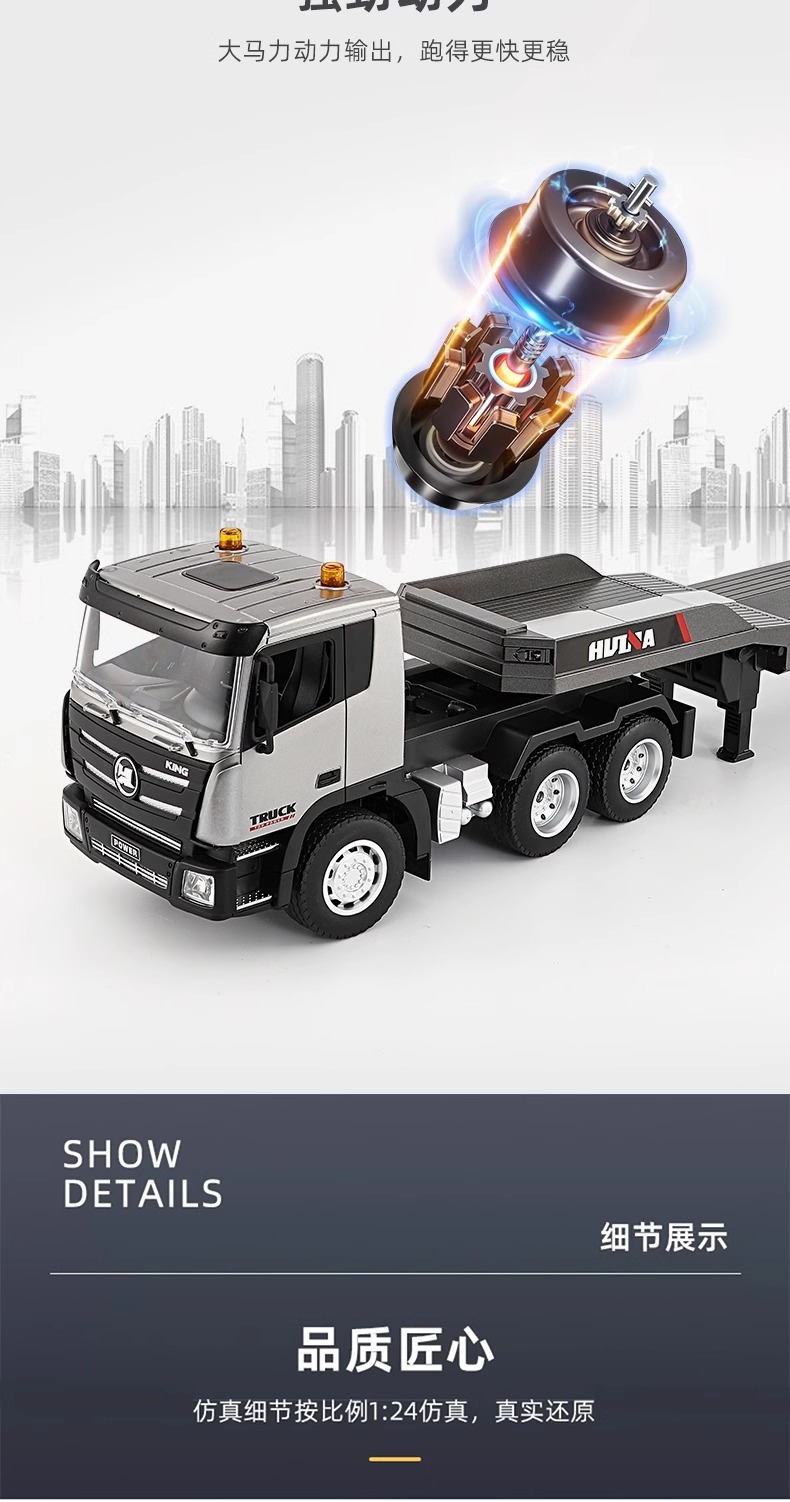 TongLi Huina 619 원격 제어 평판 트레일러 시뮬레이션 전기 운송 엔지니어링 트럭 어린이 소년 장난감스토어 가기