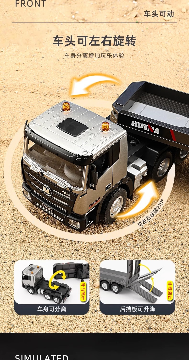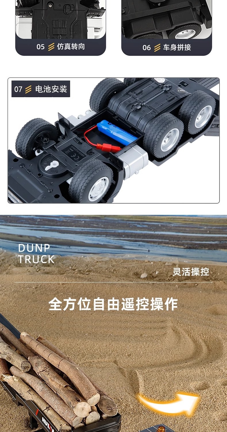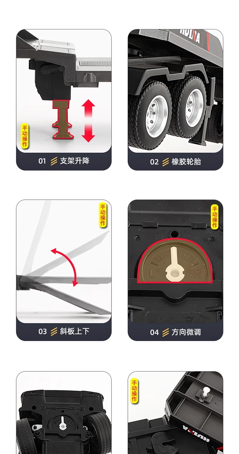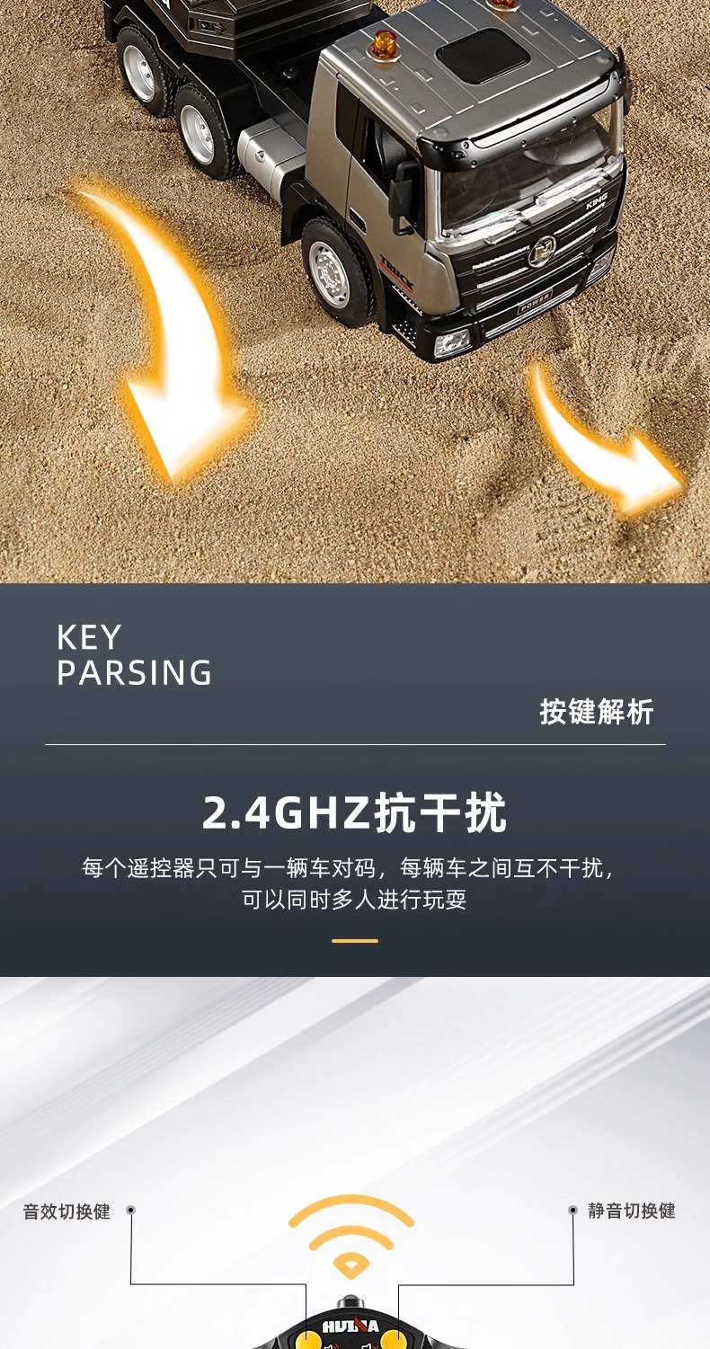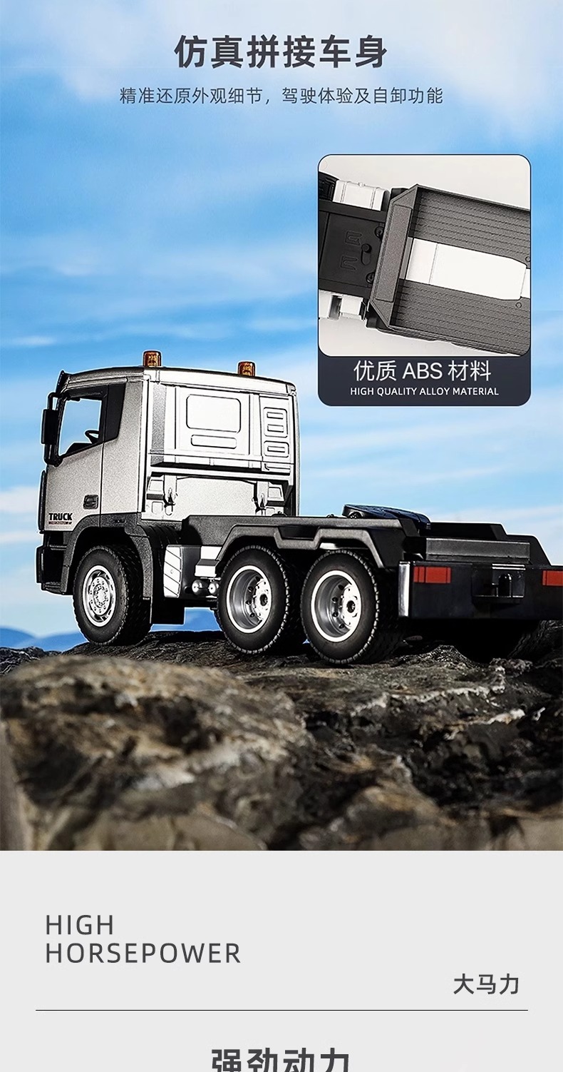 TongLi Huina 619 원격 제어 평판 트레일러 시뮬레이션 전기 운송 엔지니어링 트럭 어린이 소년 장난감스토어 가기