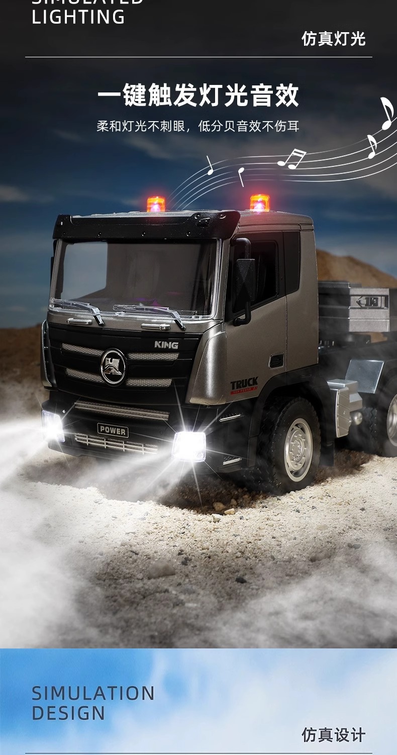 TongLi Huina 619 원격 제어 평판 트레일러 시뮬레이션 전기 운송 엔지니어링 트럭 어린이 소년 장난감