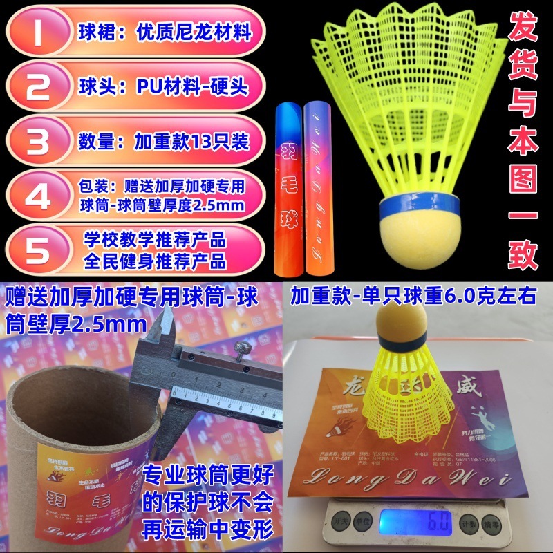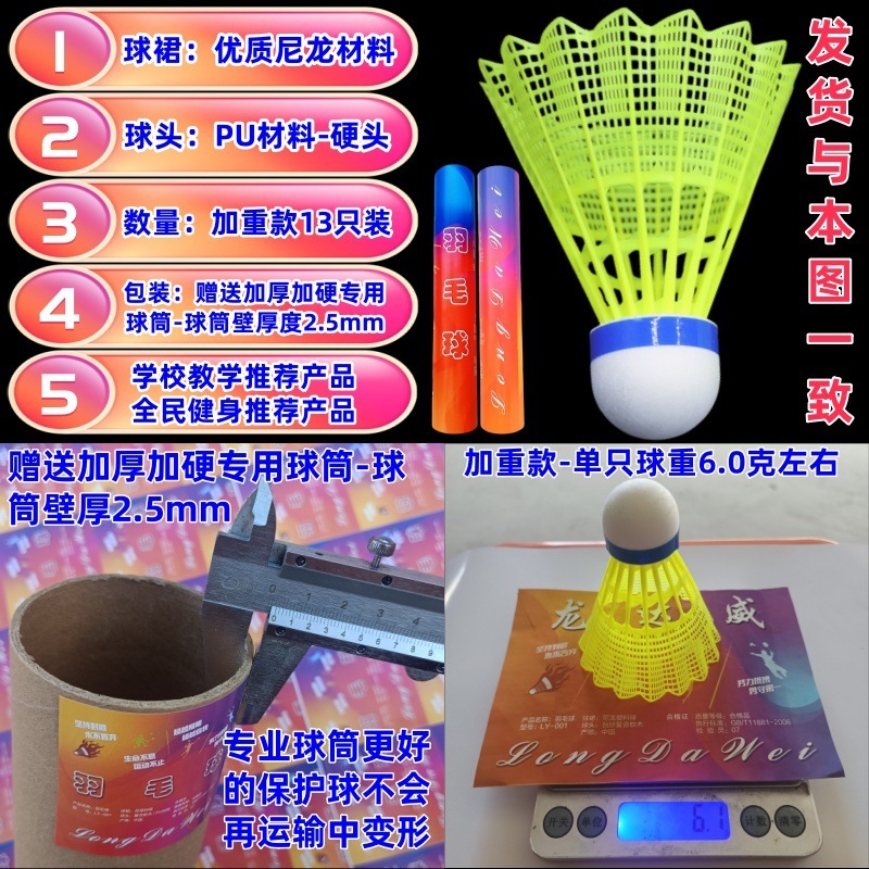 13 배드민턴 나일론 배드민턴 무게 PU 볼 헤드 야외 높은 총알 방풍 학교 훈련 공스토어 가기