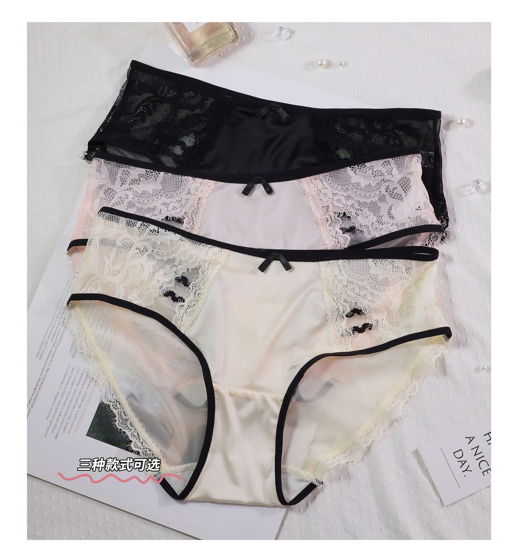 광택 있는 아이스 실크 속옷 클리어 거즈 경량 소녀 속눈썹 섹시 레이스 속옷 명암 컬러 고양이 클로 속옷 여성용스토어 가기