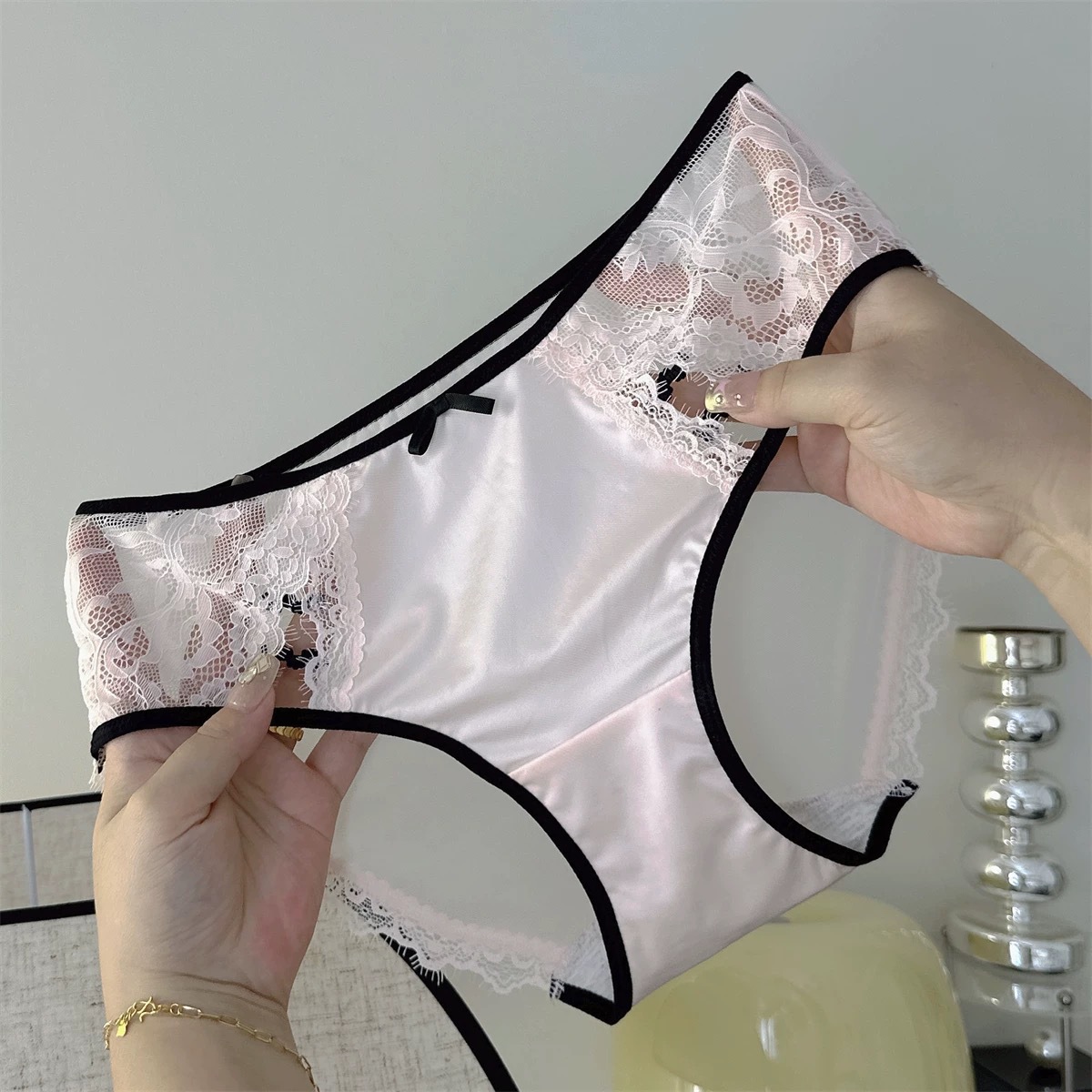 광택 있는 아이스 실크 속옷 클리어 거즈 경량 소녀 속눈썹 섹시 레이스 속옷 명암 컬러 고양이 클로 속옷 여성용