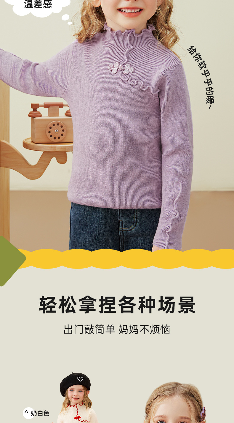 Kuwa Mi 가을과 겨울 소녀 구덩이 스트립베이스 스웨터 새로운 중국 중간 목 니트 탑 높은 탄성 중국 스타일 스웨터스토어 가기