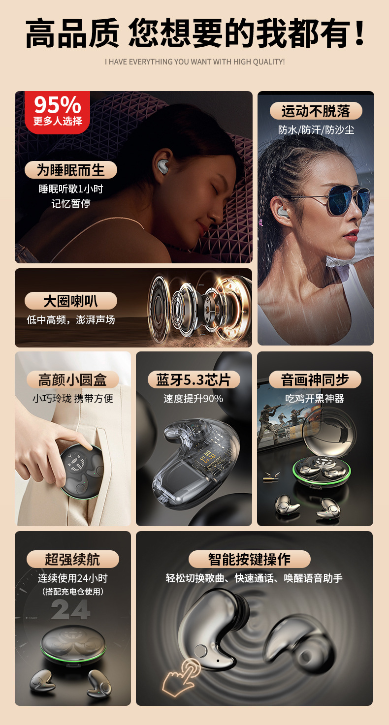 TEMU 국경 폭발 수면 무선 블루투스 헤드셋 초박형 초박형 내구성 스포츠 게임 헤드셋 블루투스 트루