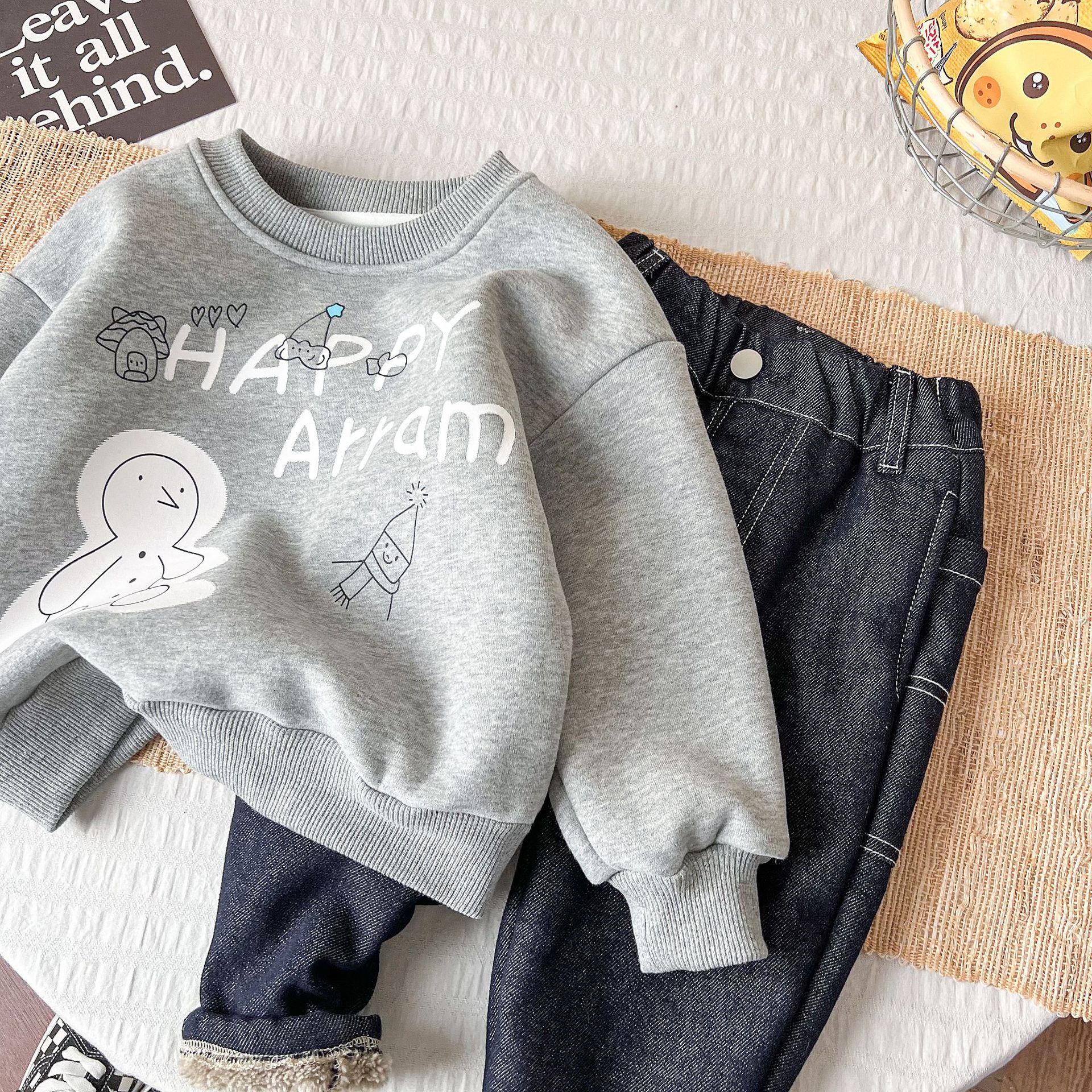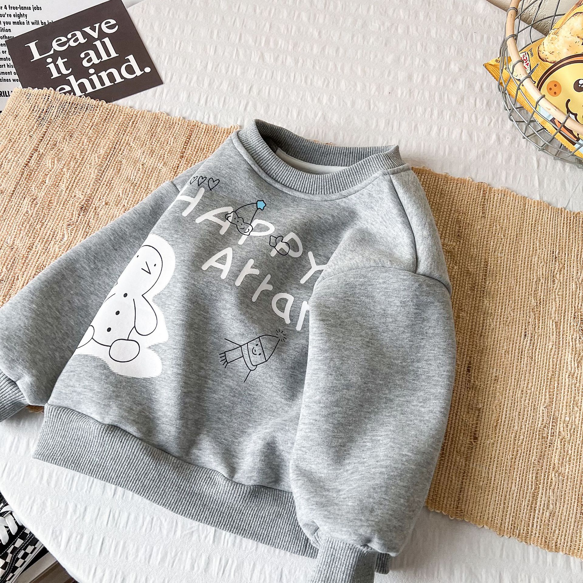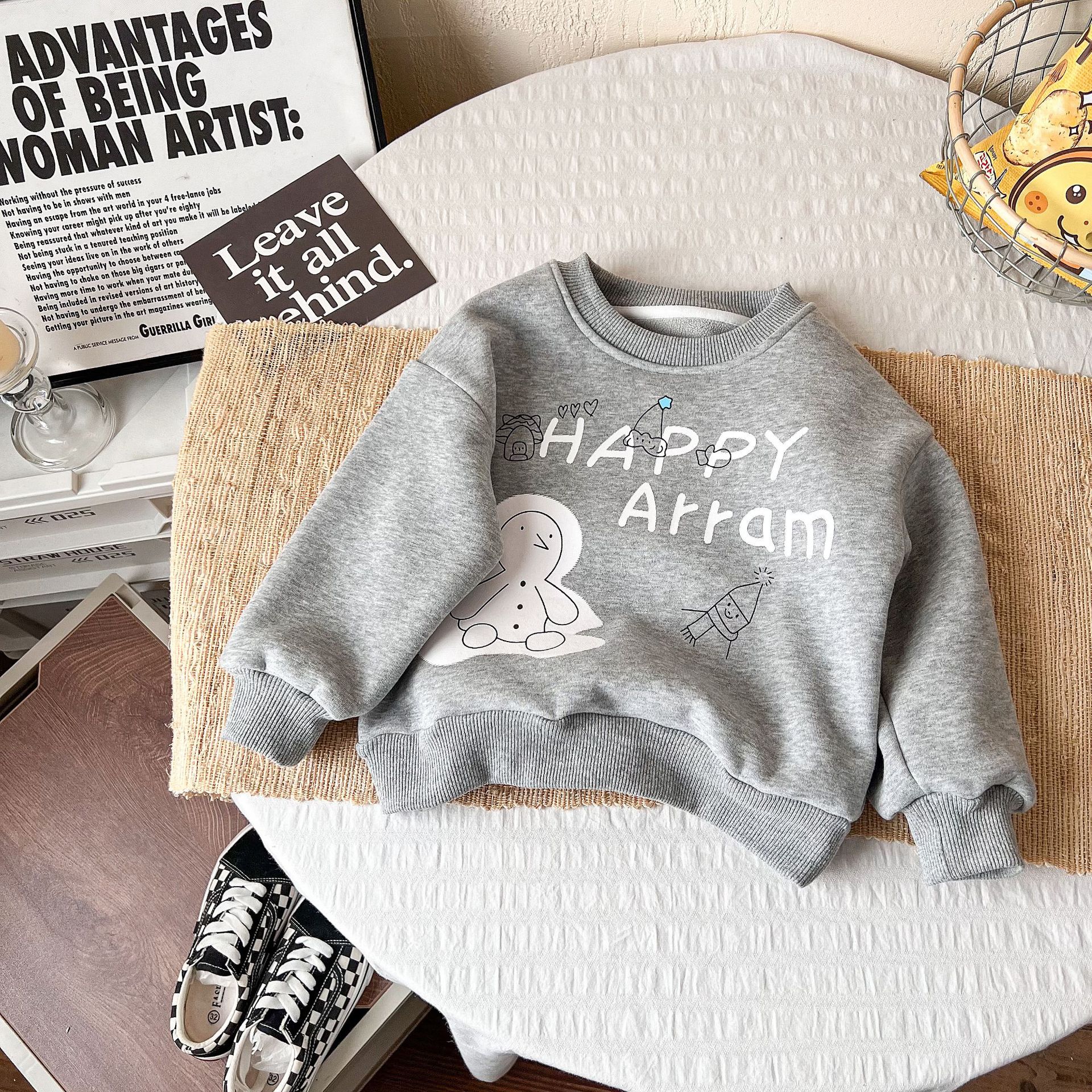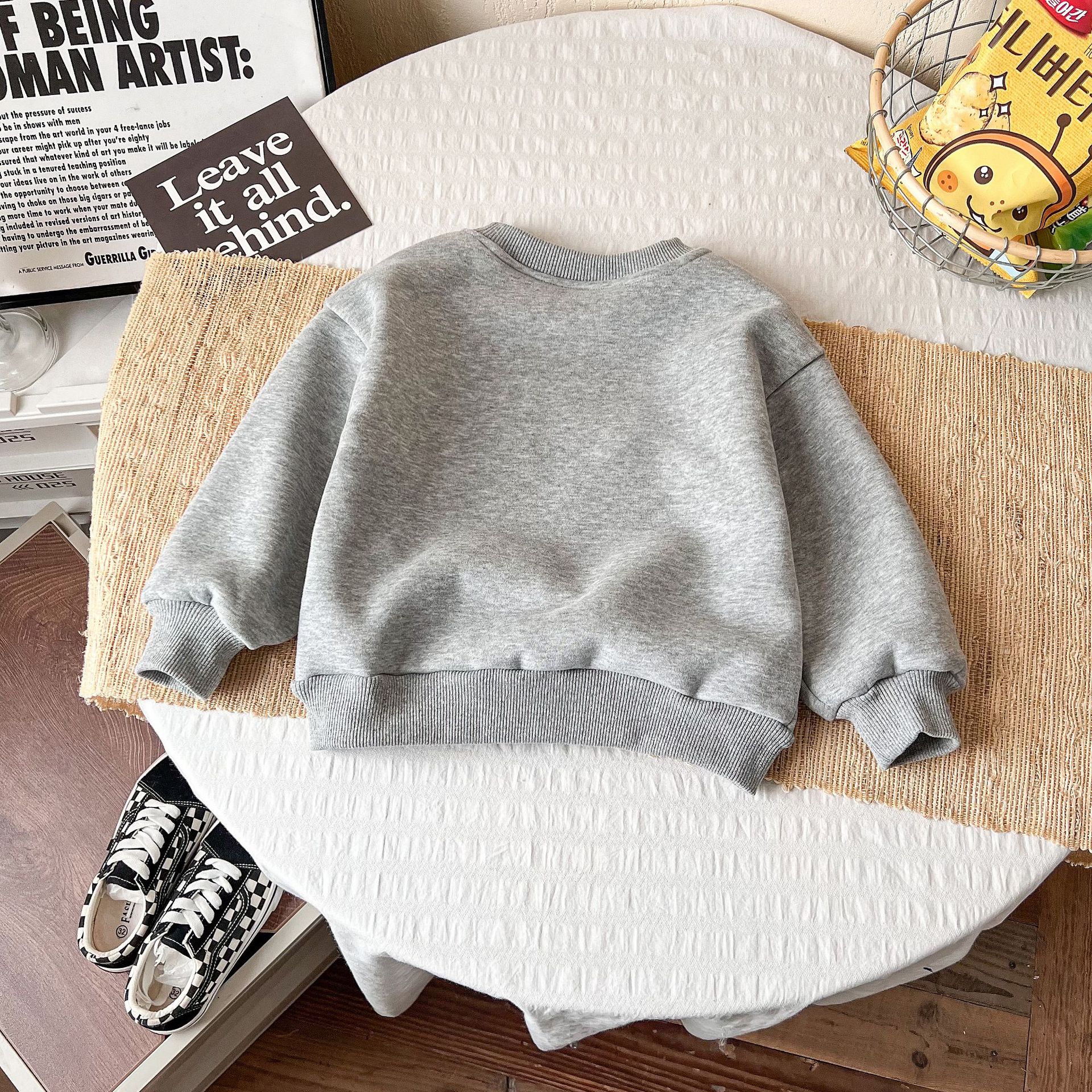 아동복 2024 가을/겨울 새로운 어린이 만화 기모 스웨트 셔츠 한국 스타일 조커 보이즈 그레이 스웨트 셔츠 두꺼운 트렌디스토어 가기