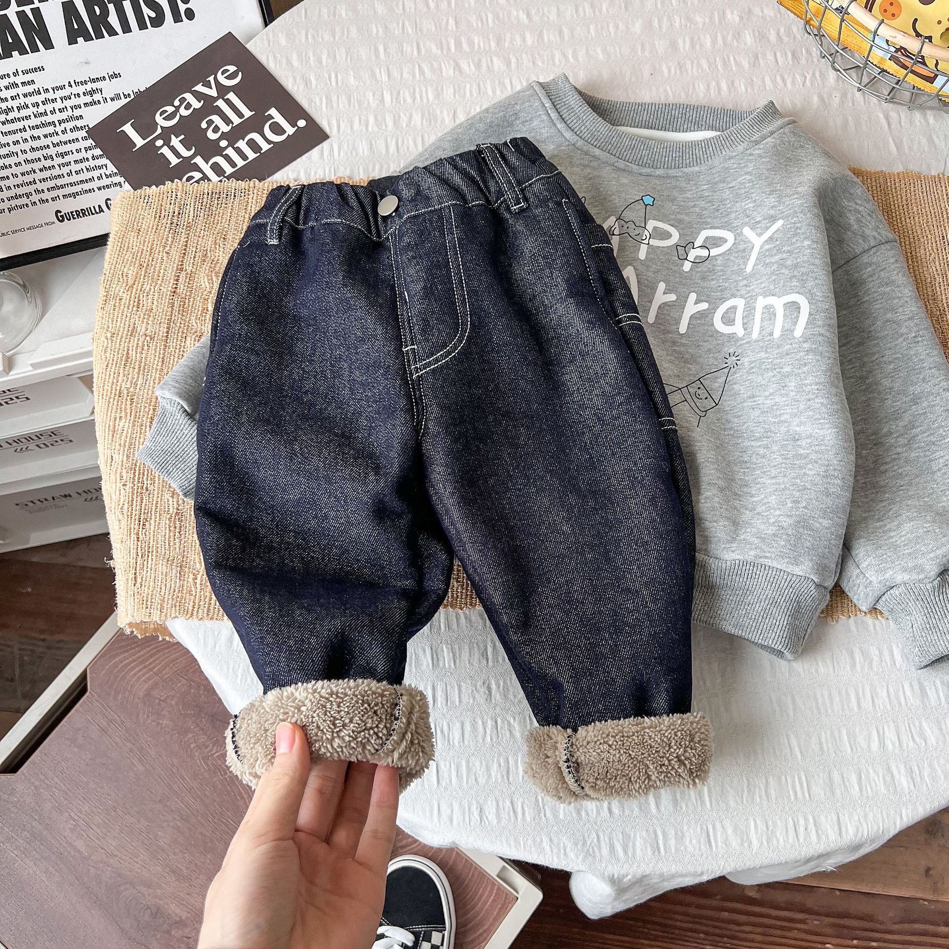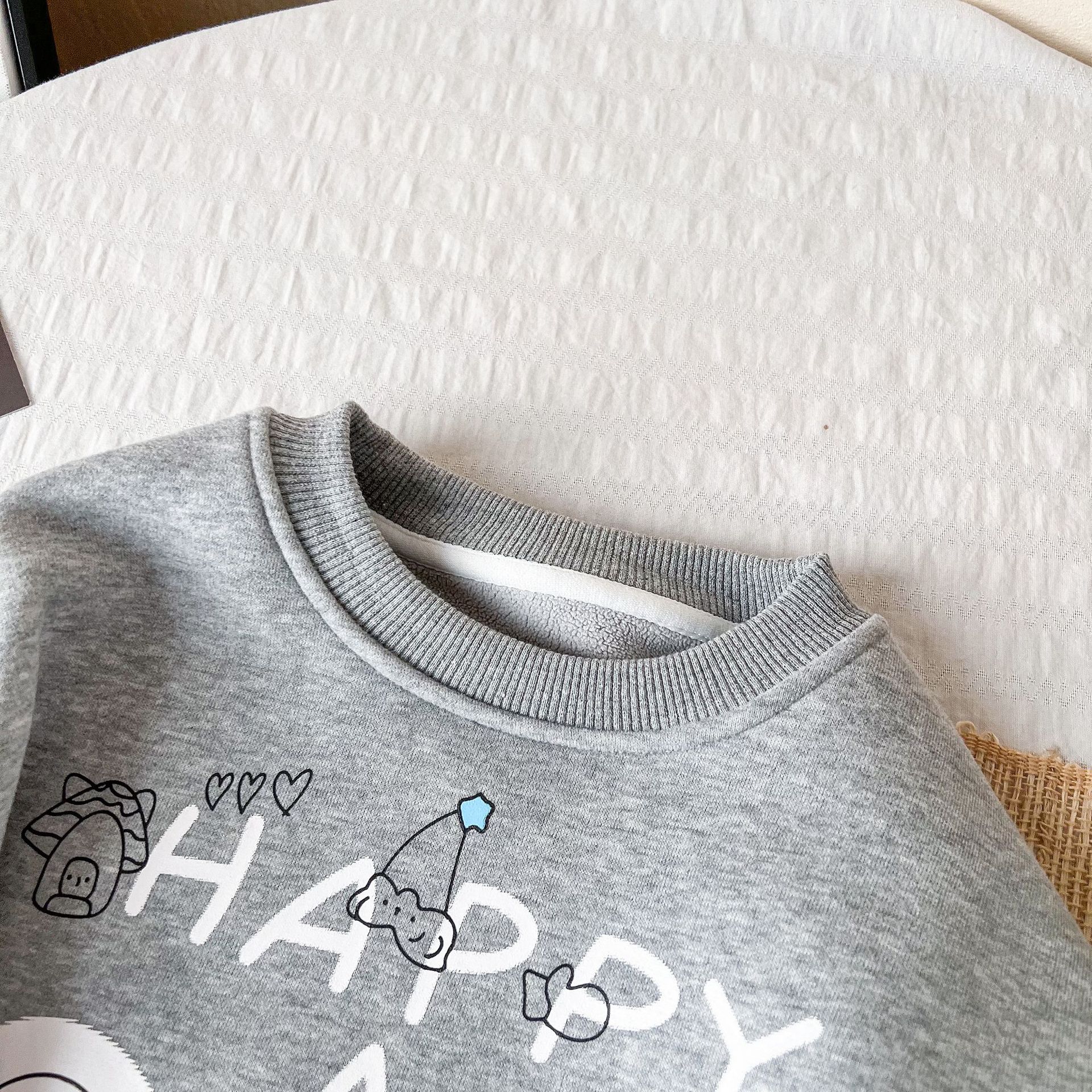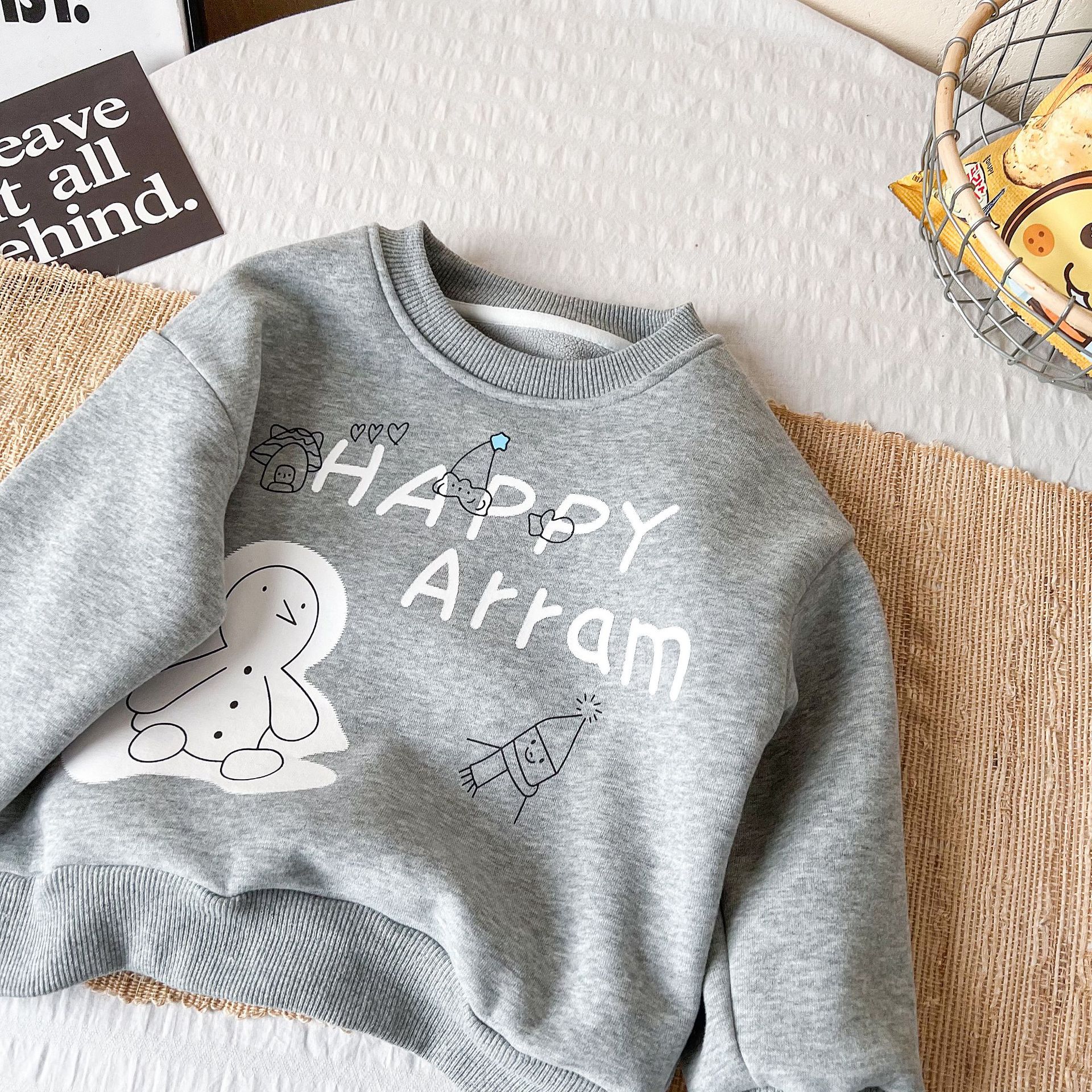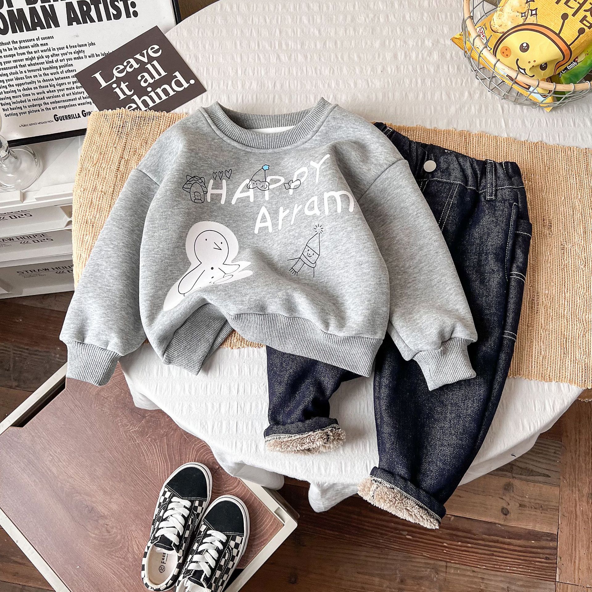 아동복 2024 가을/겨울 새로운 어린이 만화 기모 스웨트 셔츠 한국 스타일 조커 보이즈 그레이 스웨트 셔츠 두꺼운 트렌디스토어 가기