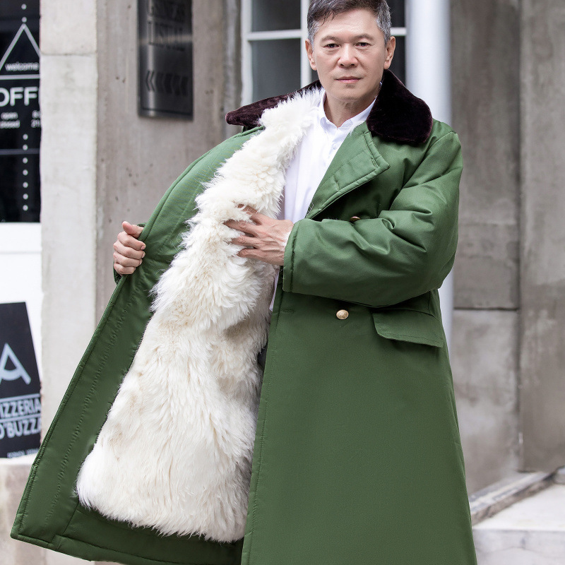 양모 코트 남자 겨울 모피 원피스 양가죽 코트 진짜 양모 두꺼운 따뜻한 긴면 패딩 코트 북동쪽