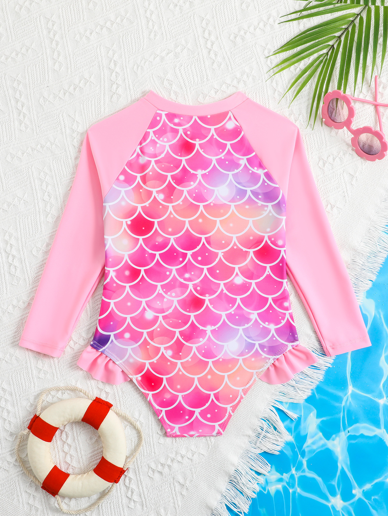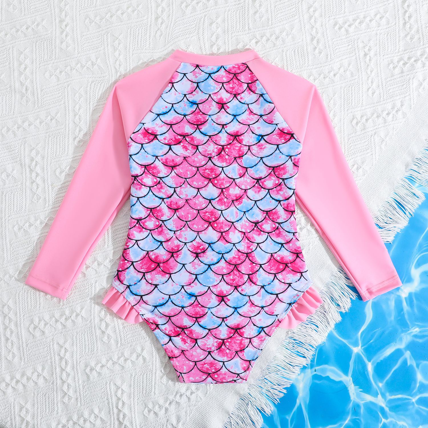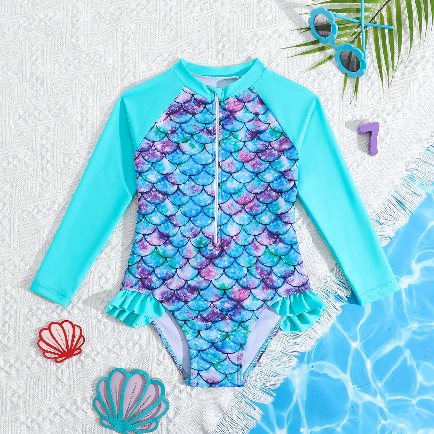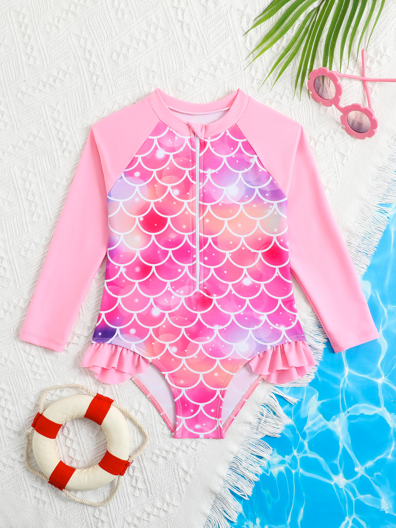 새로운 여자 수영복 지퍼 핑크 물고기 스케일 소녀 원피스 유럽과 미국의 국경 높은 탄성 수영복 세트 설정할 수 있습니다
