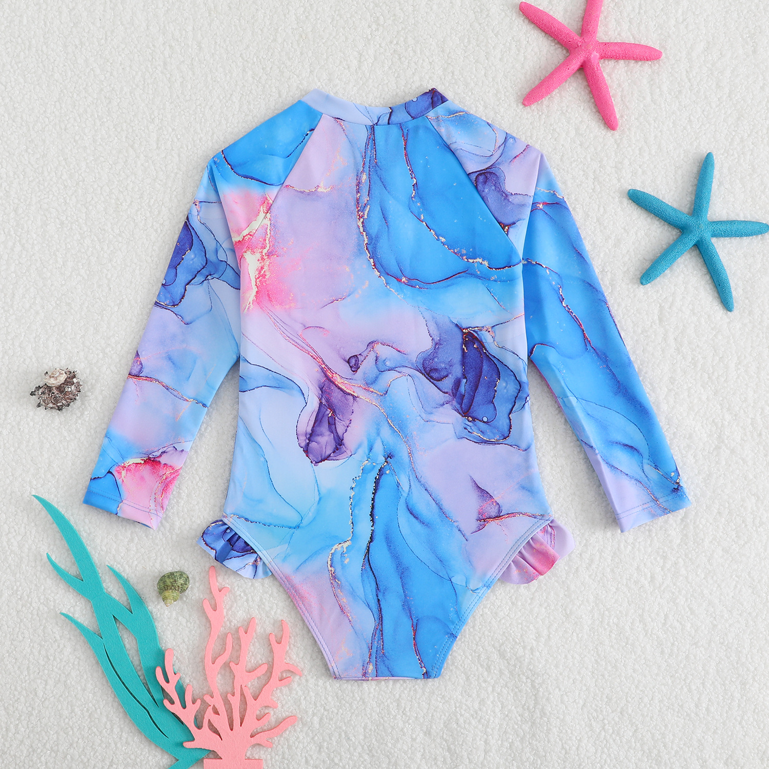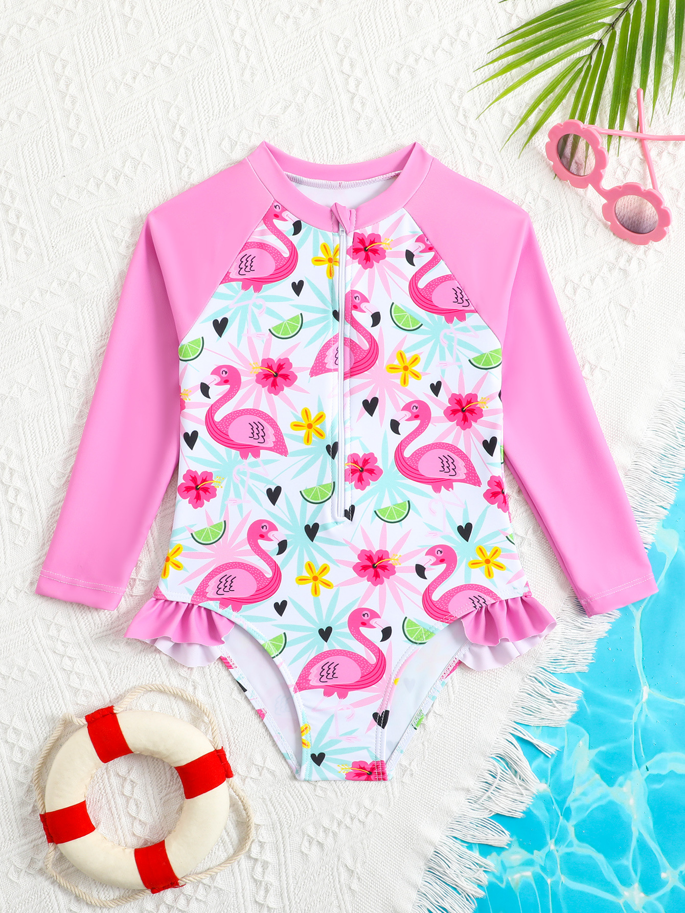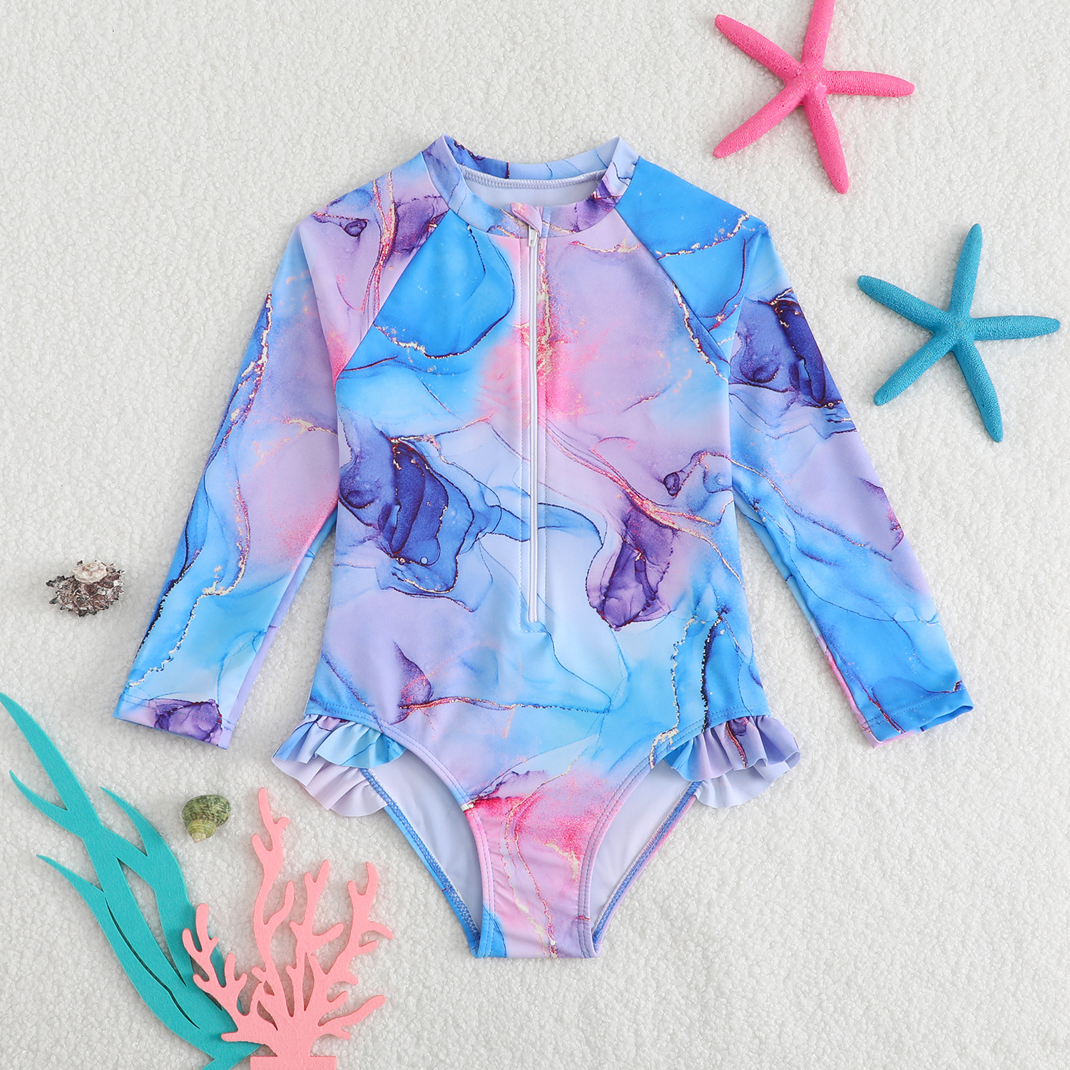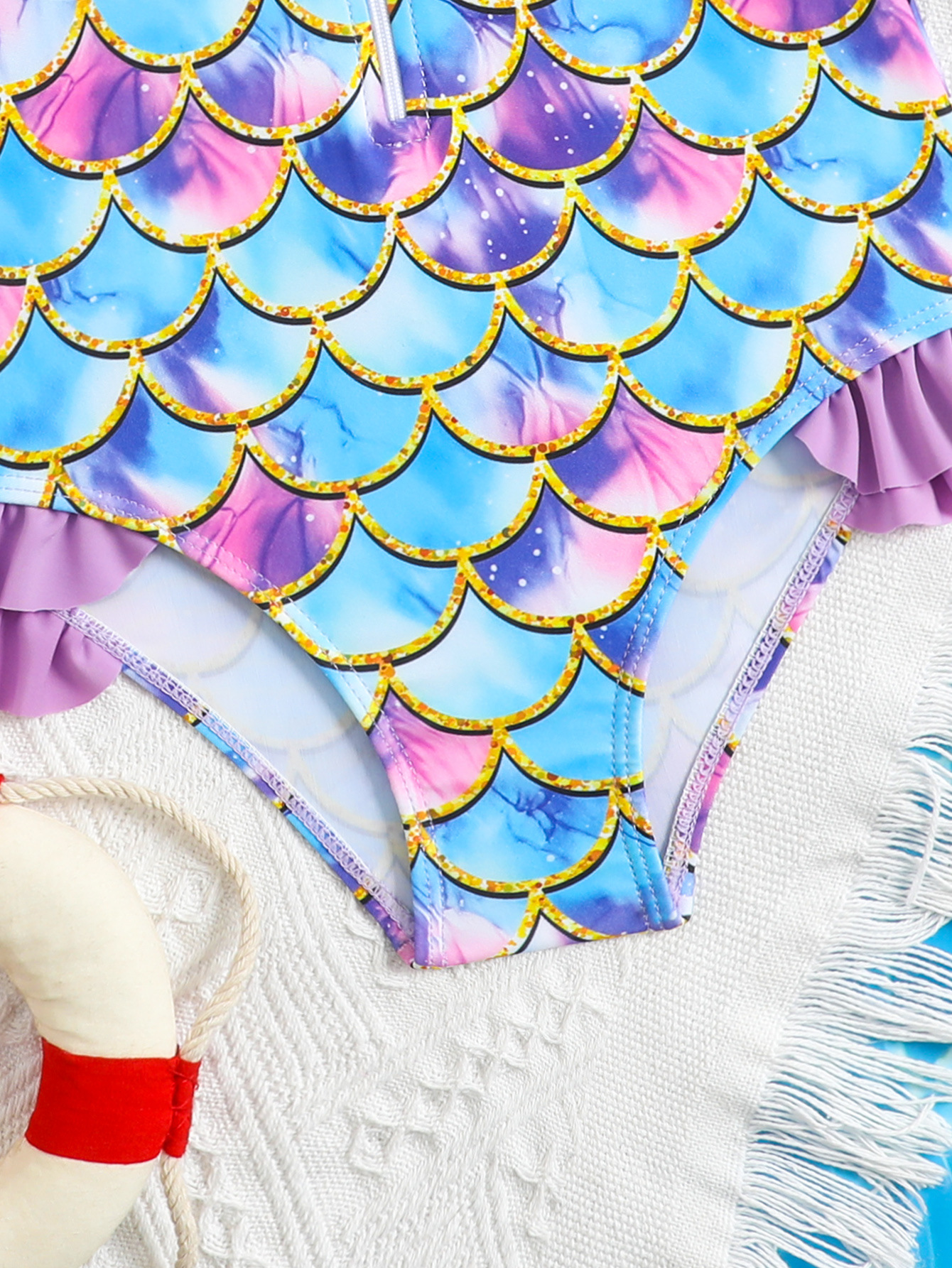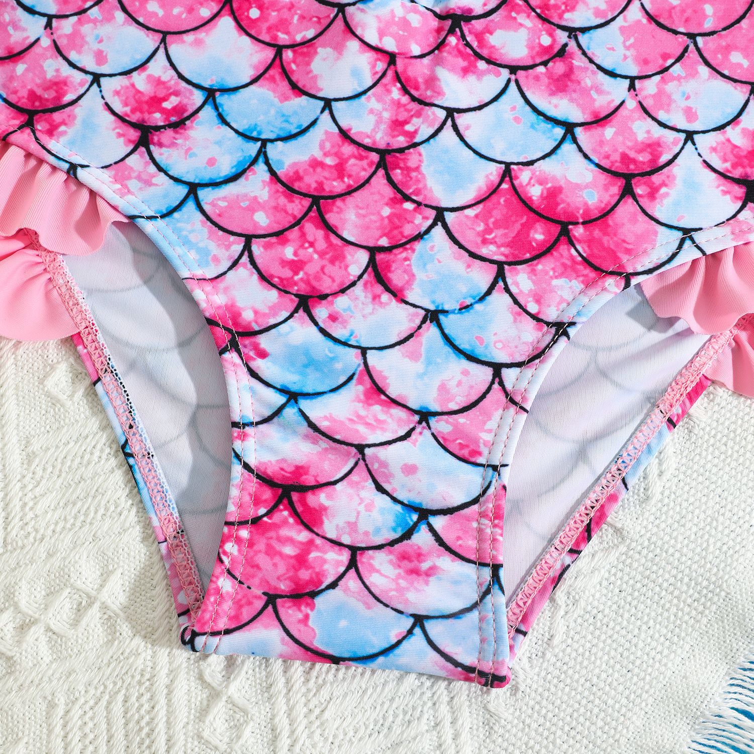 새로운 여자 수영복 지퍼 핑크 물고기 스케일 소녀 원피스 유럽과 미국의 국경 높은 탄성 수영복 세트 설정할 수 있습니다