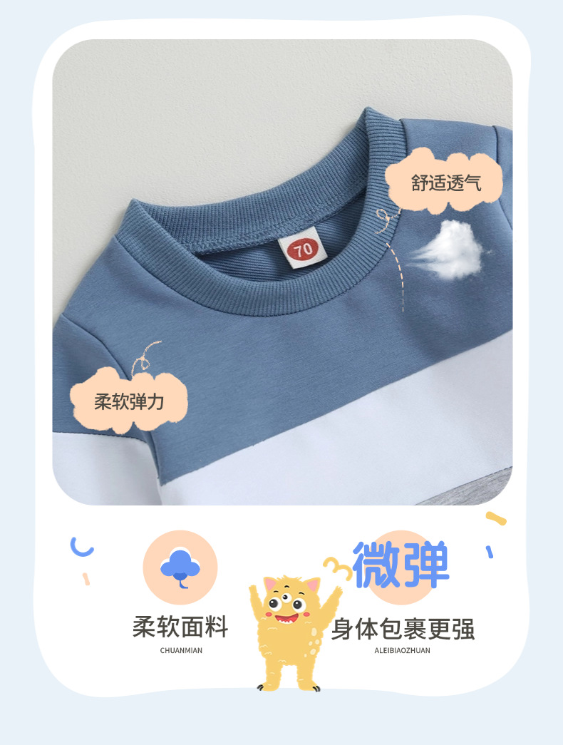 남아용 라운드넥 풀오버 스웨트셔츠 봄 가을 신상품 2세 아기 배색 가로줄무늬 상의 세트