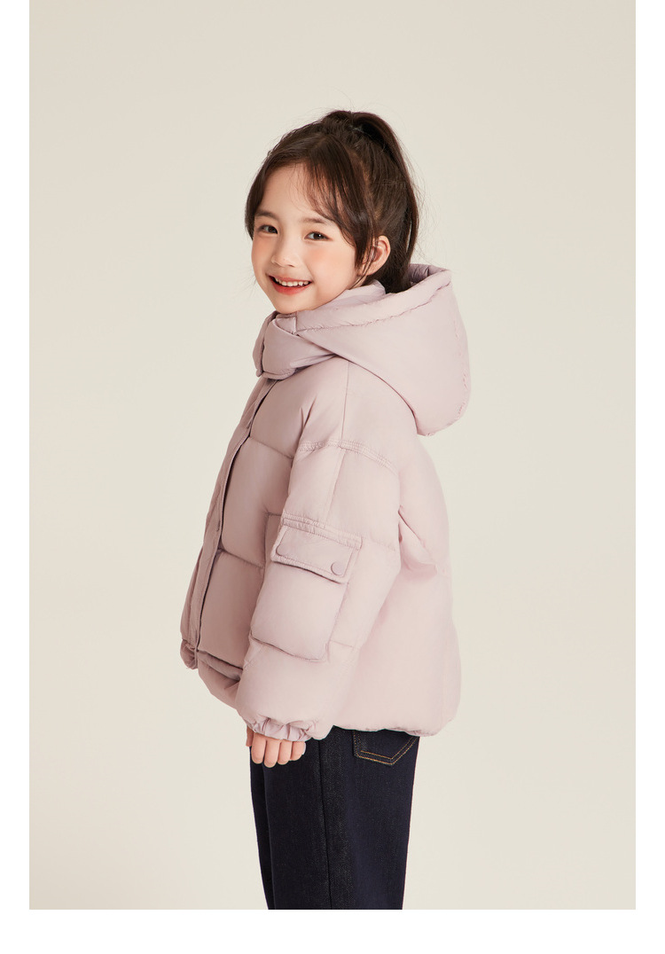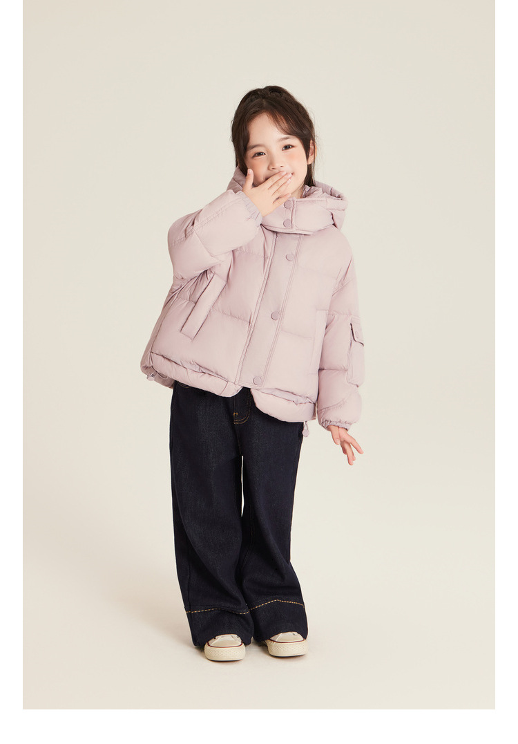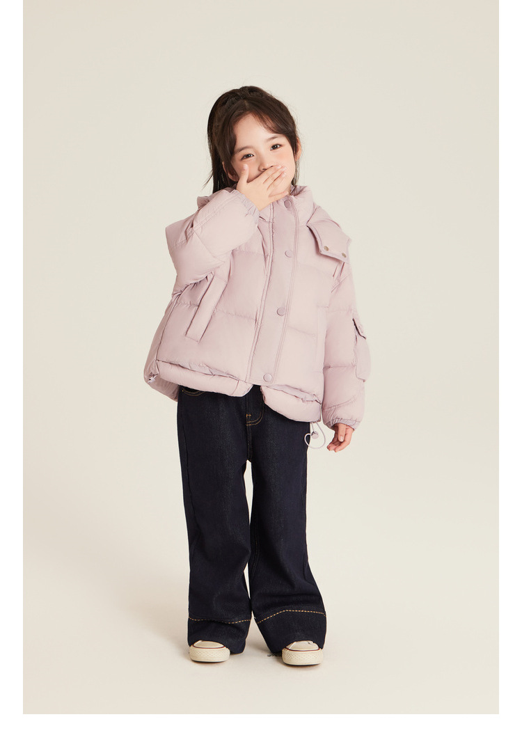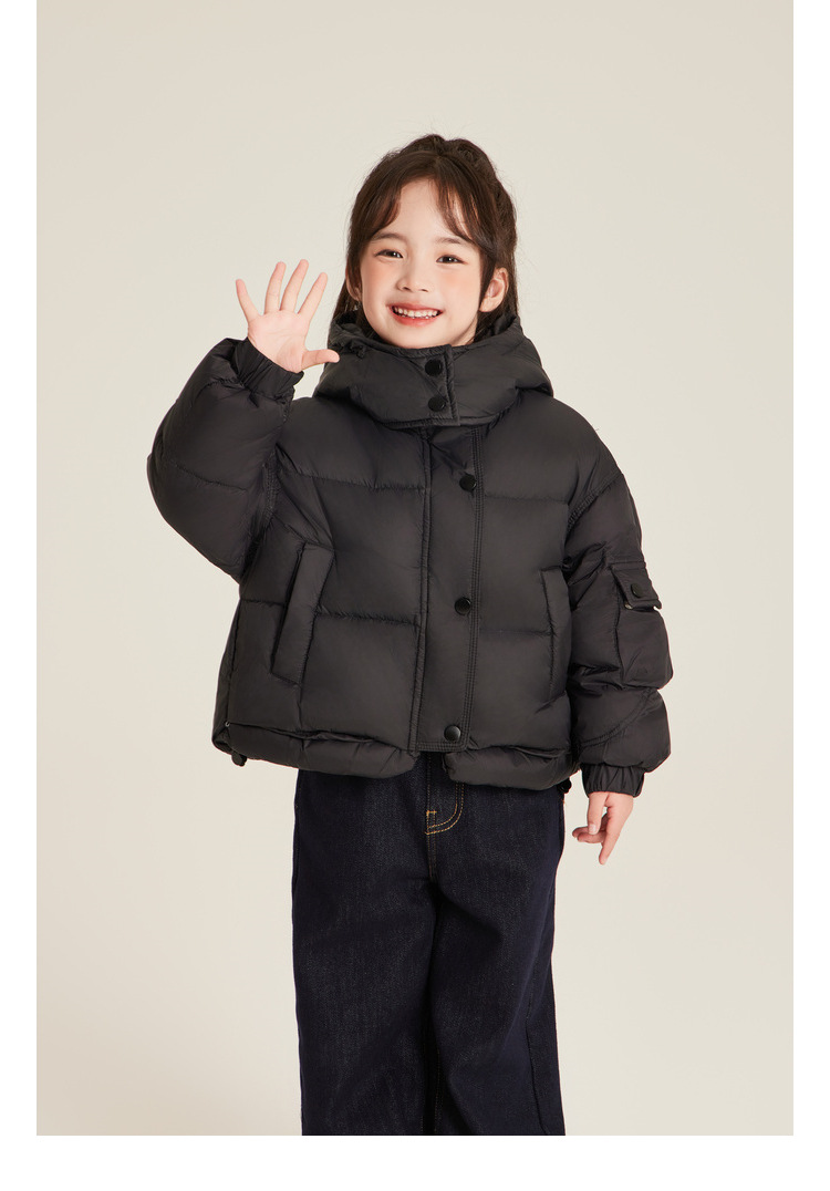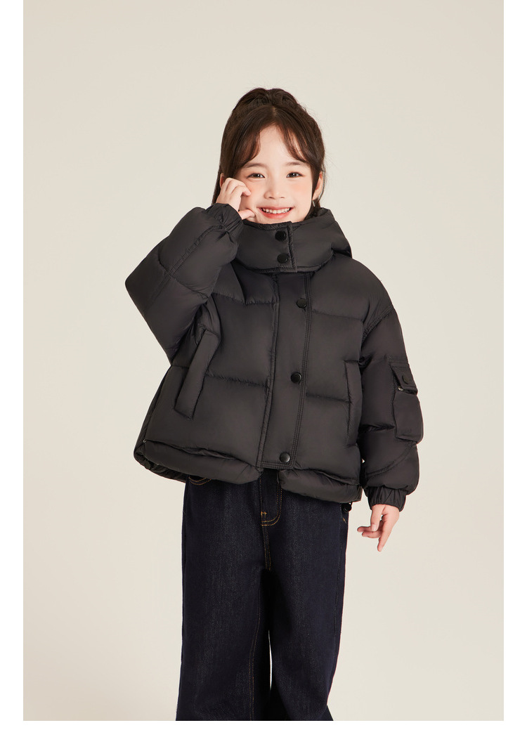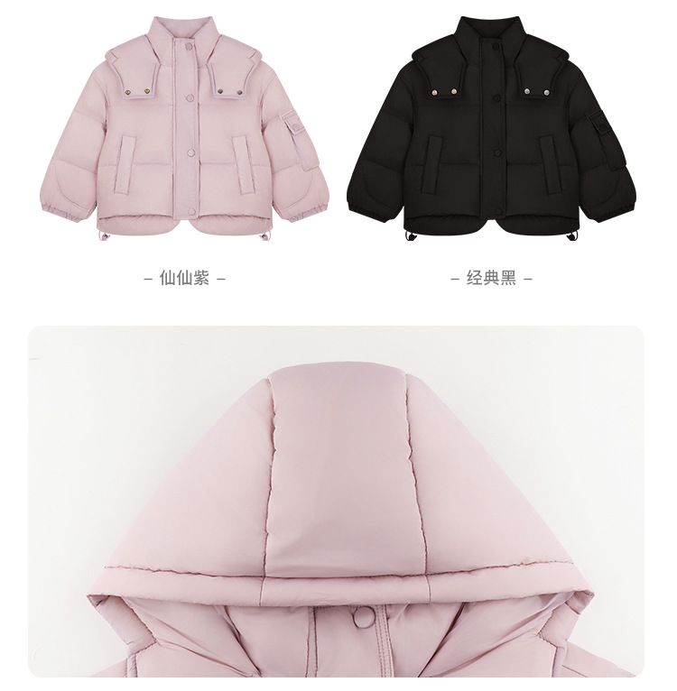 Amybaby 소녀 다운 재킷 겨울 2024 새로운 짧은 캐주얼 슬리브 포켓 후드 다운 재킷 코트스토어 가기