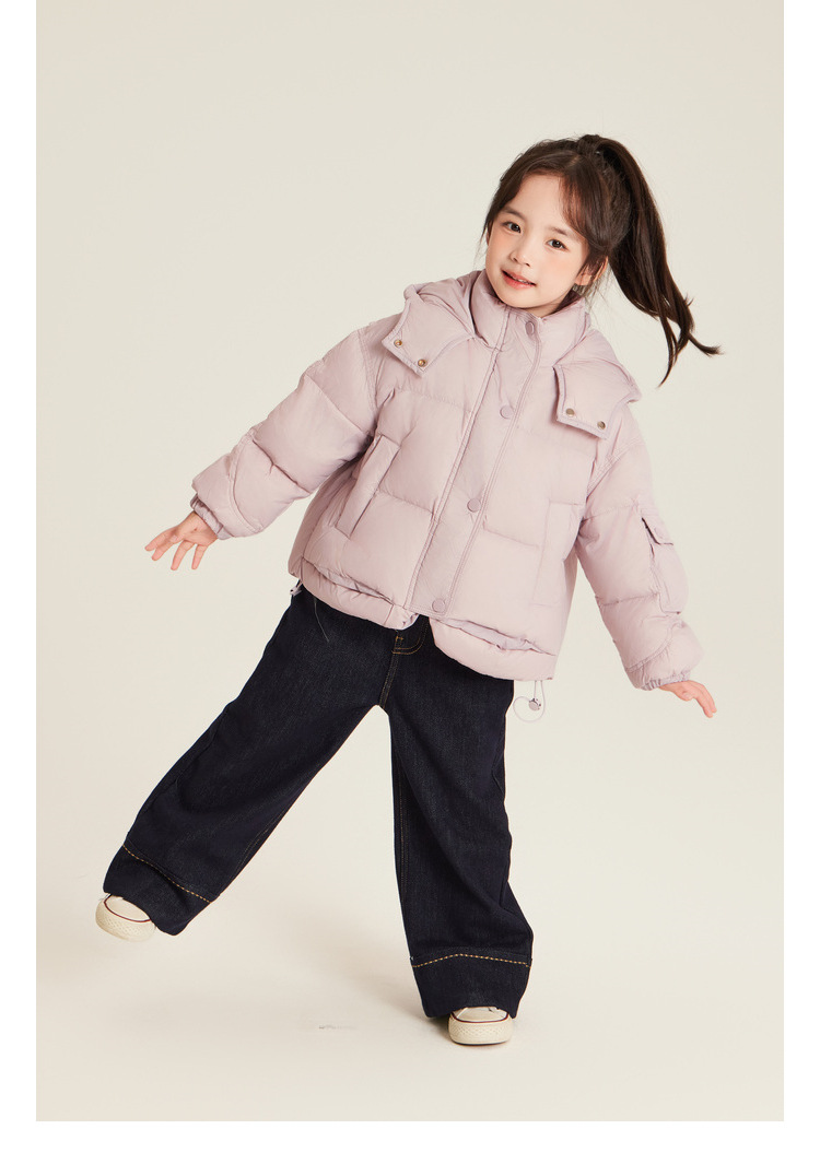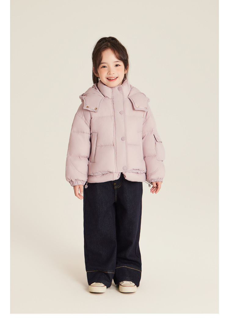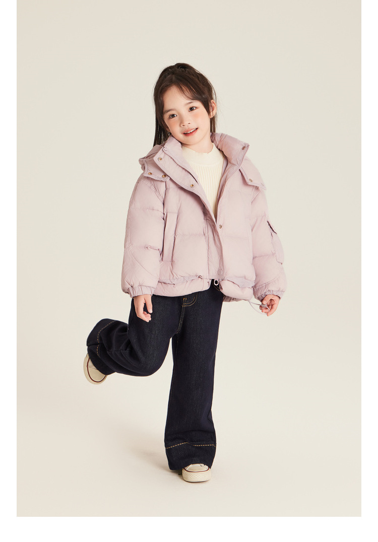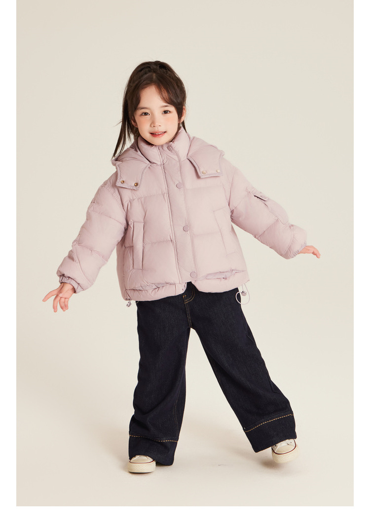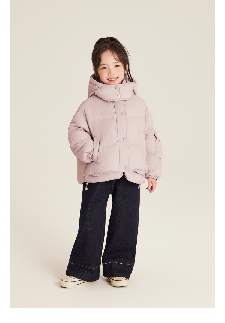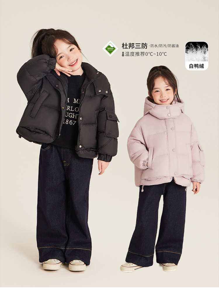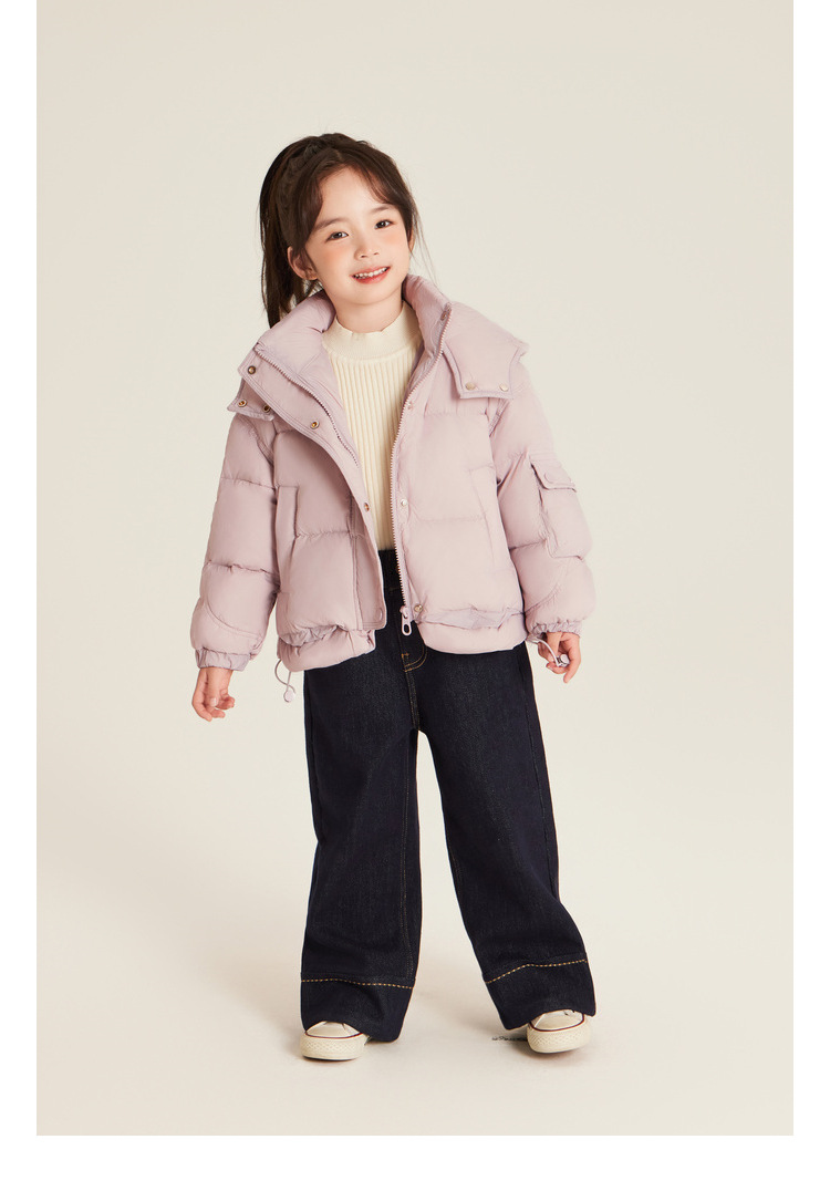 Amybaby 소녀 다운 재킷 겨울 2024 새로운 짧은 캐주얼 슬리브 포켓 후드 다운 재킷 코트스토어 가기