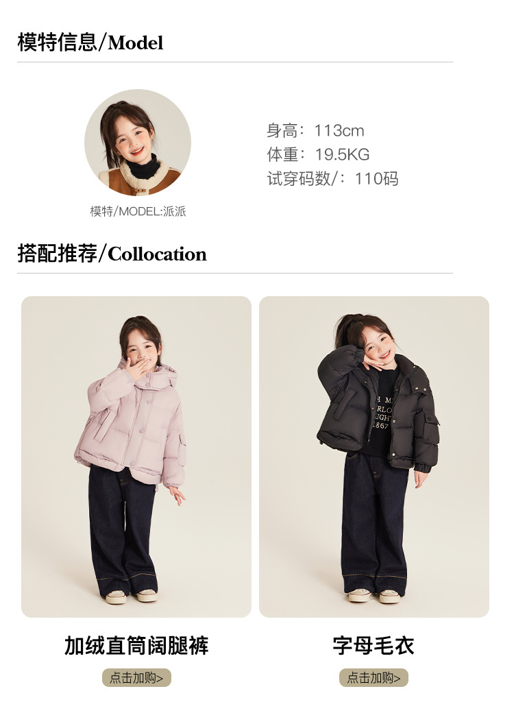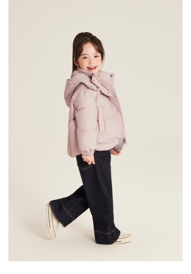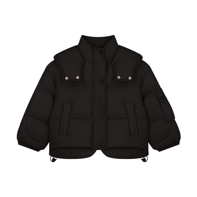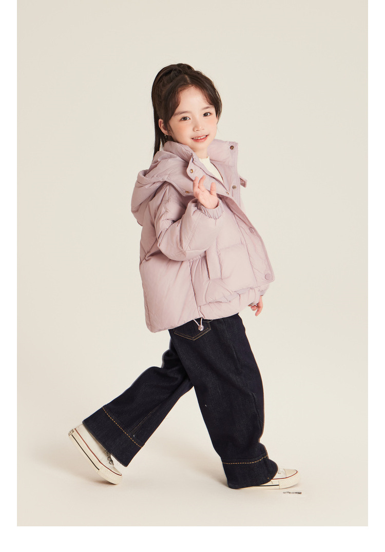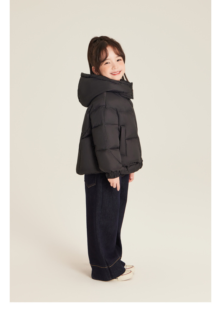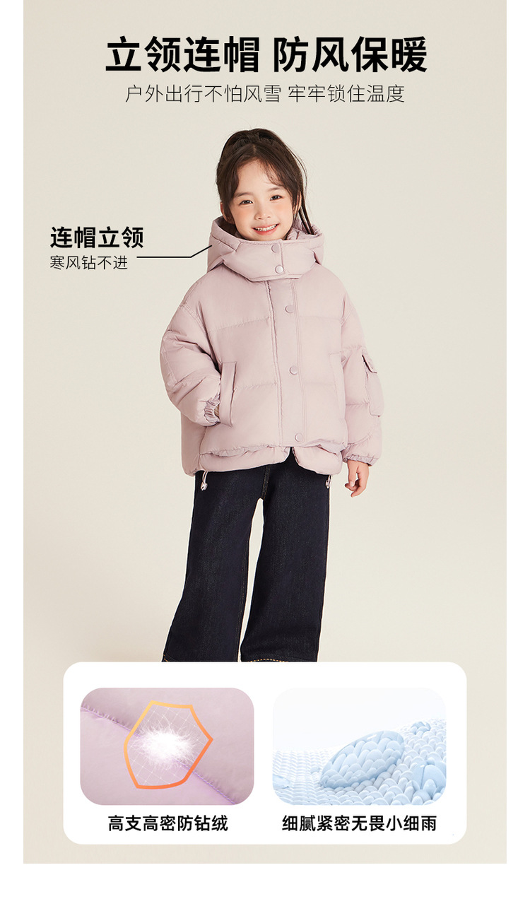 Amybaby 소녀 다운 재킷 겨울 2024 새로운 짧은 캐주얼 슬리브 포켓 후드 다운 재킷 코트스토어 가기