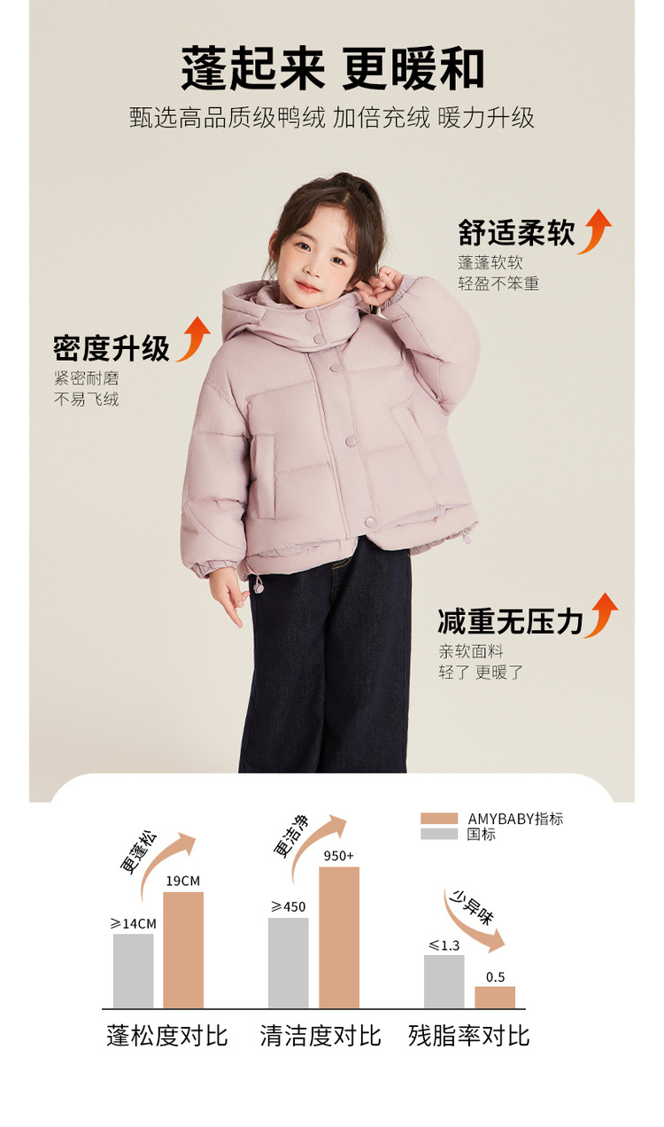 Amybaby 소녀 다운 재킷 겨울 2024 새로운 짧은 캐주얼 슬리브 포켓 후드 다운 재킷 코트