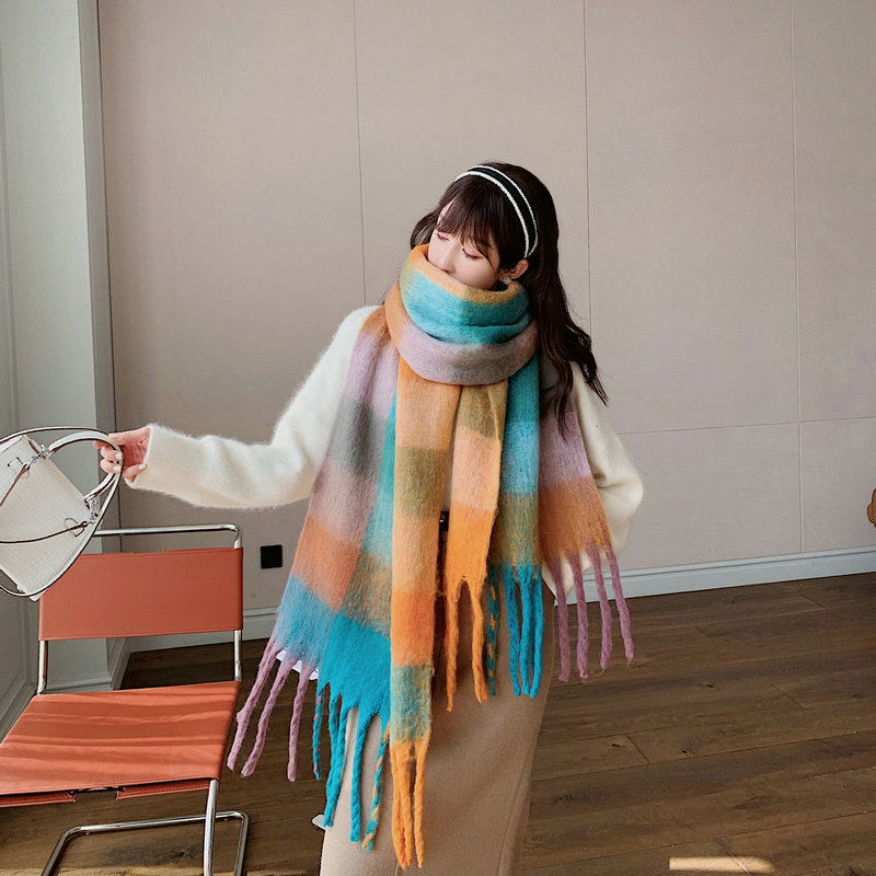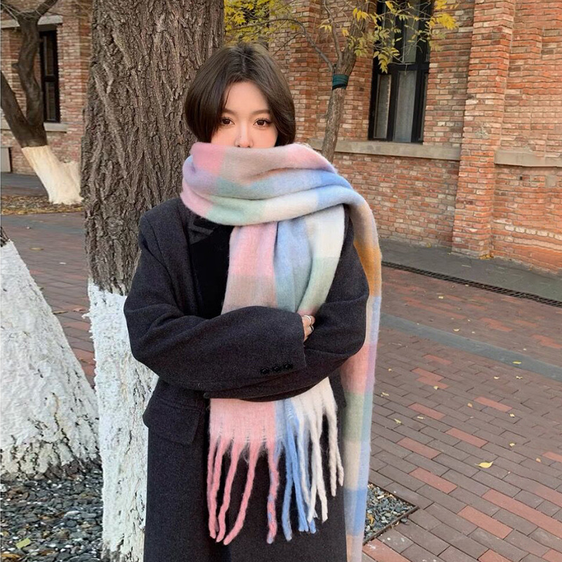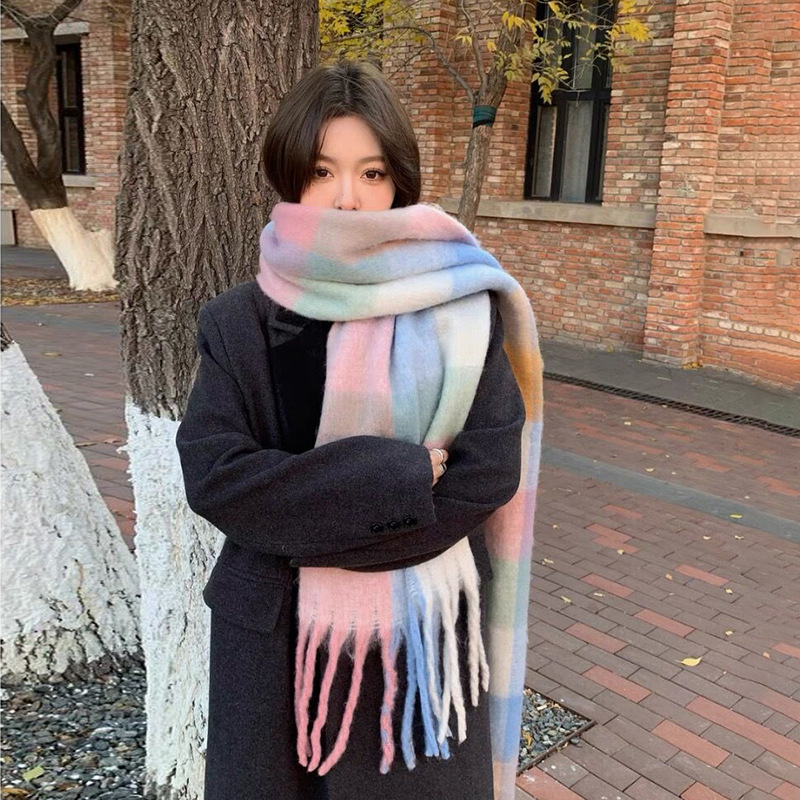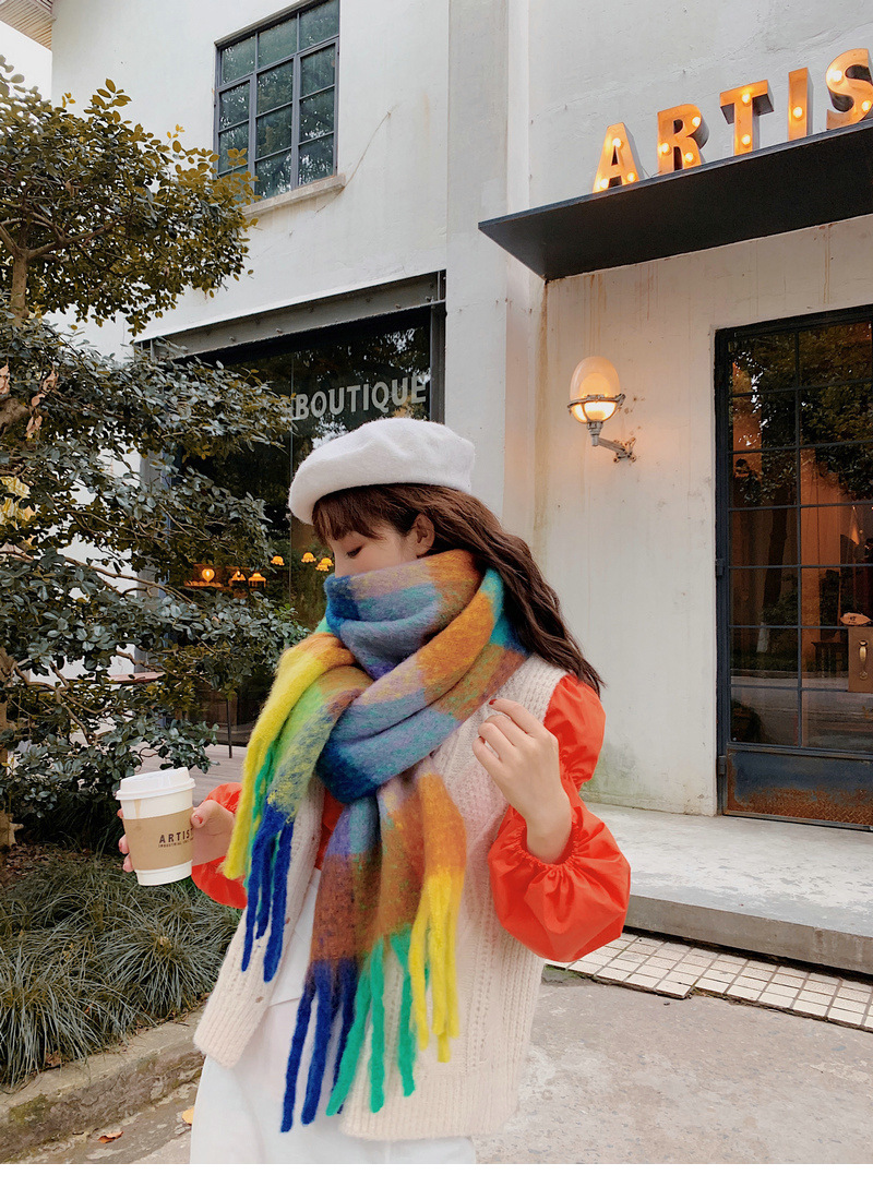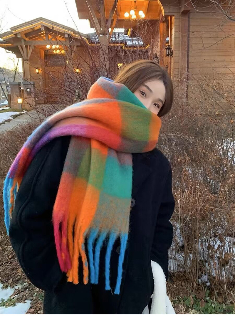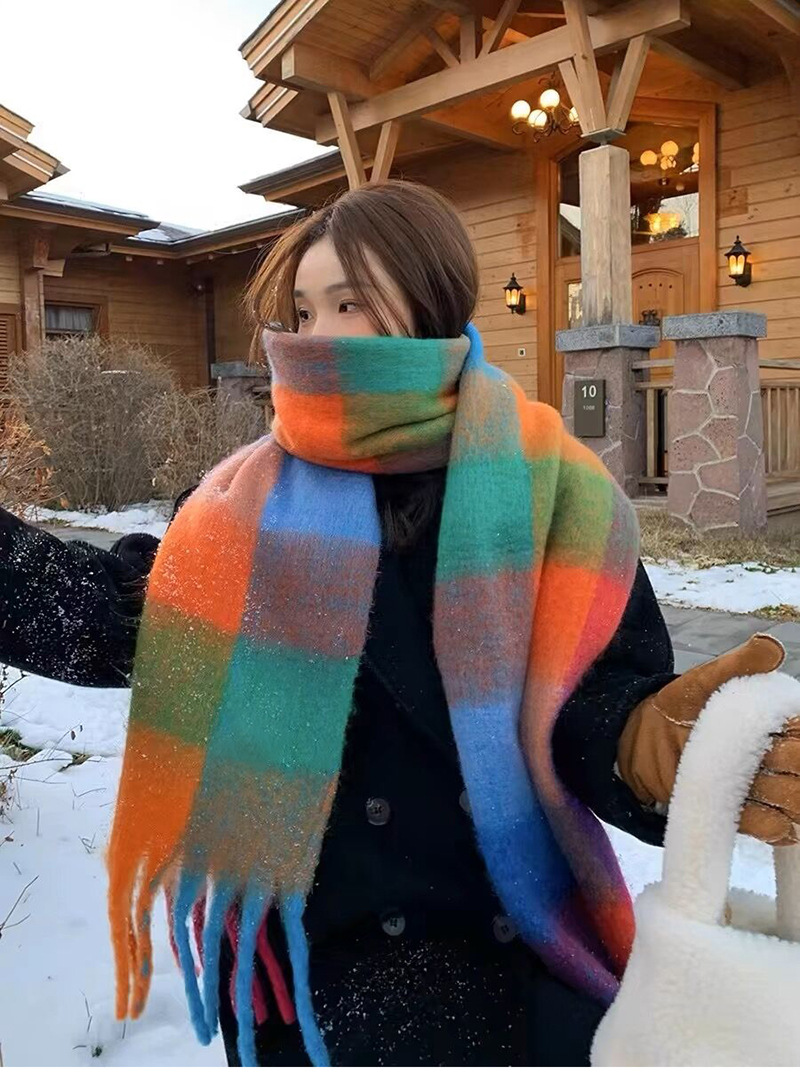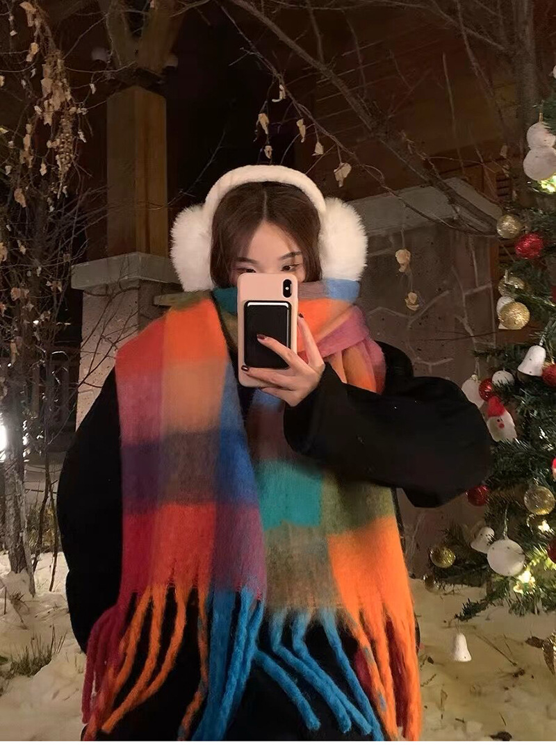레인보우 스카프 쓰촨성 서부 2025 신상 겨울 고급 스카프 여성용 한국 스타일 체크 무늬 분위기 있는 따뜻하고 다용도 숄스토어 가기
