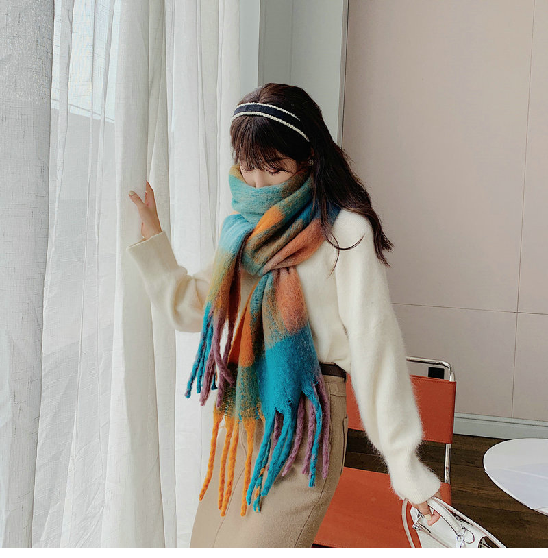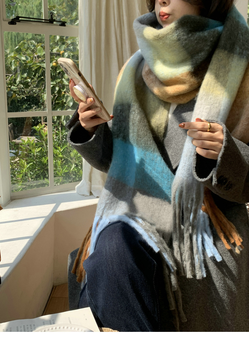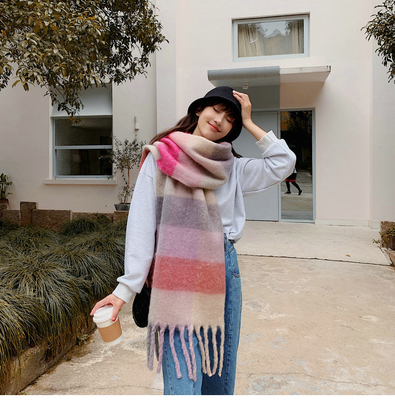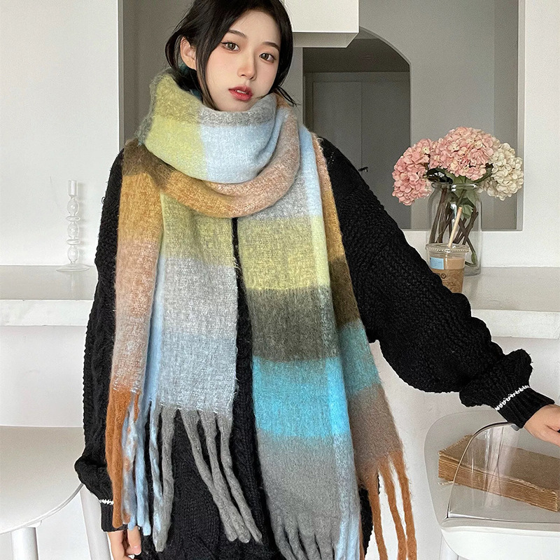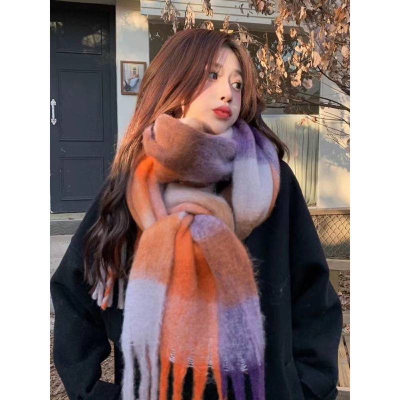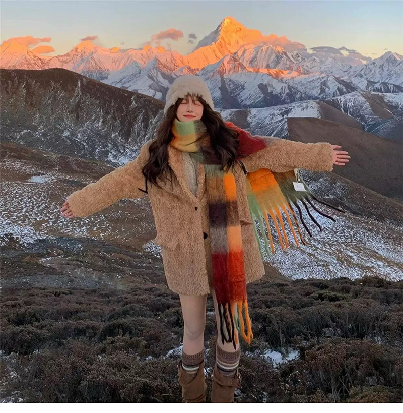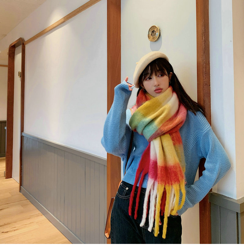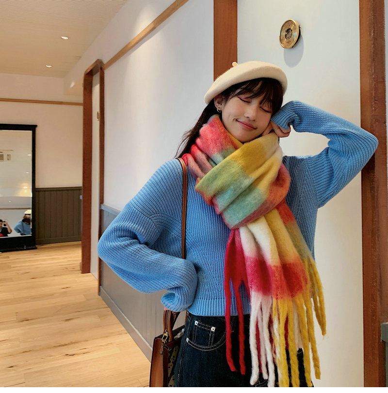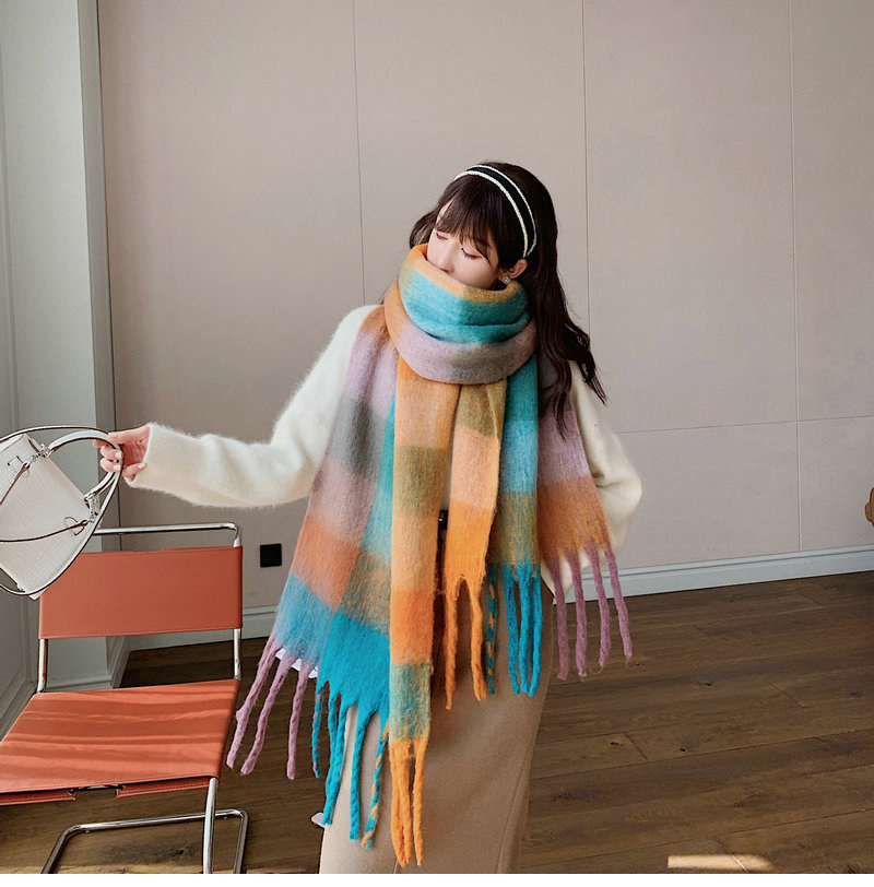 레인보우 스카프 쓰촨성 서부 2025 신상 겨울 고급 스카프 여성용 한국 스타일 체크 무늬 분위기 있는 따뜻하고 다용도 숄스토어 가기