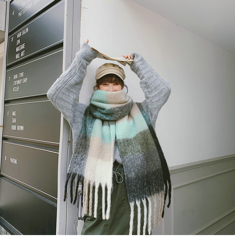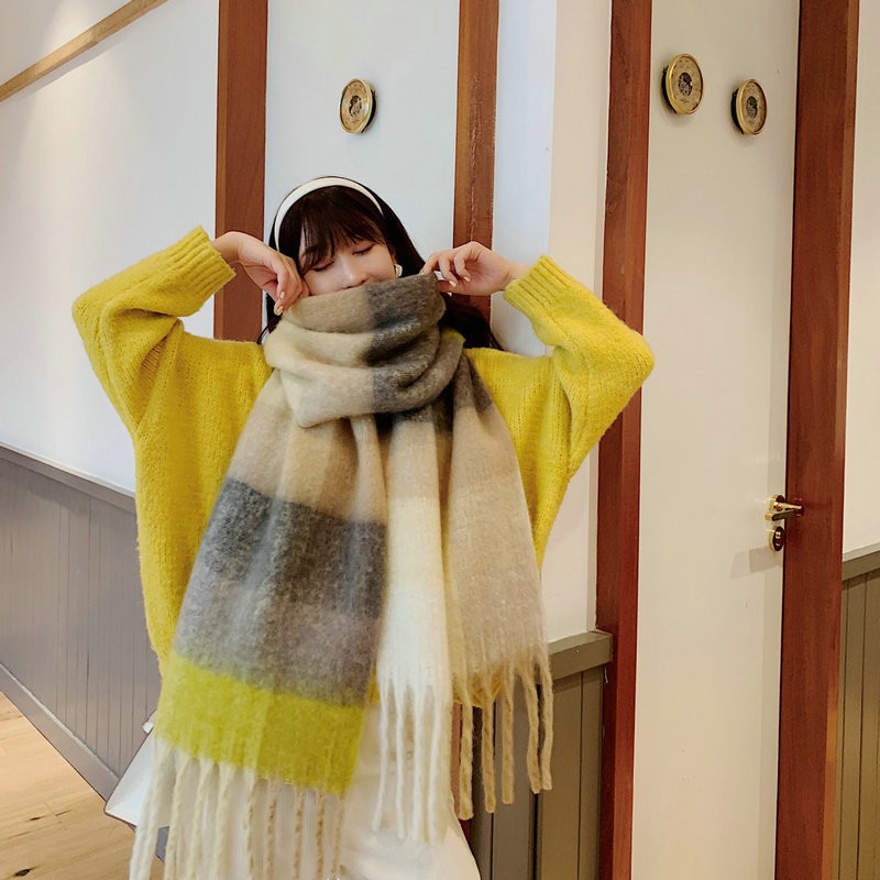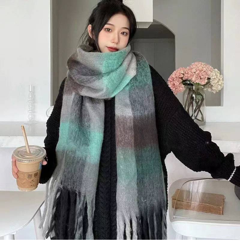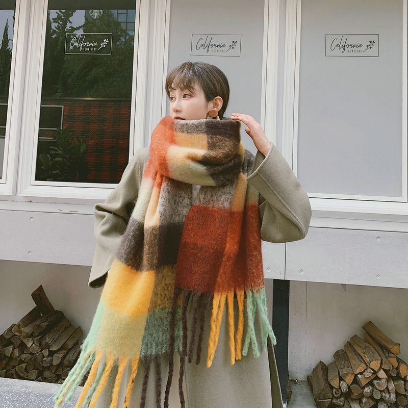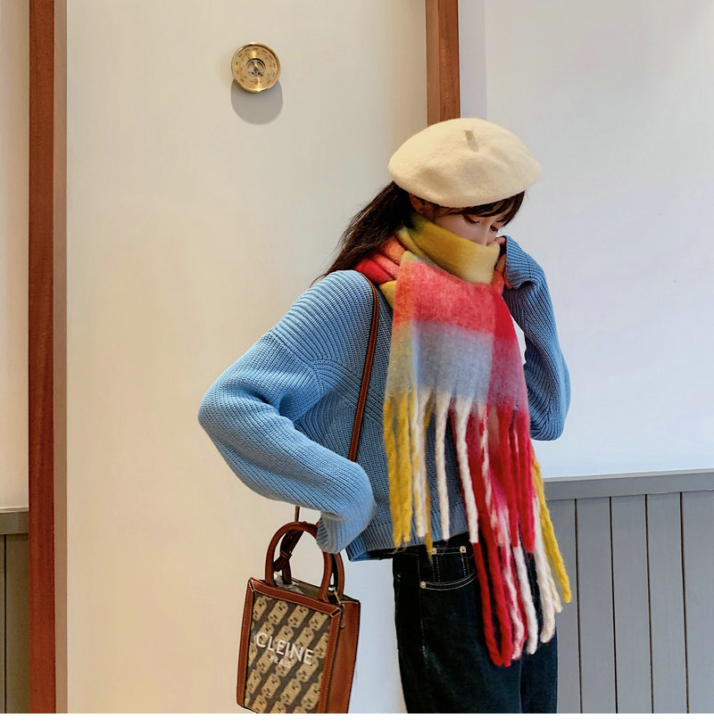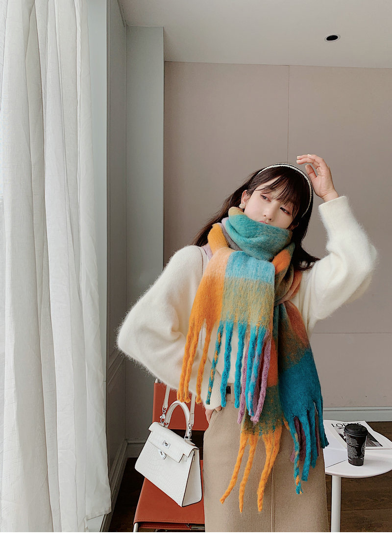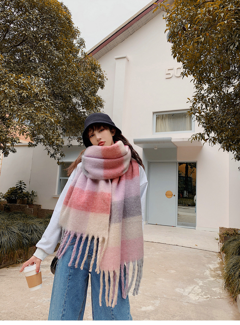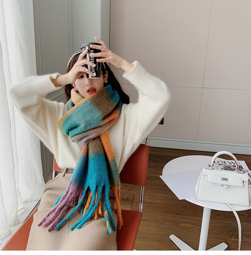 레인보우 스카프 쓰촨성 서부 2025 신상 겨울 고급 스카프 여성용 한국 스타일 체크 무늬 분위기 있는 따뜻하고 다용도 숄스토어 가기