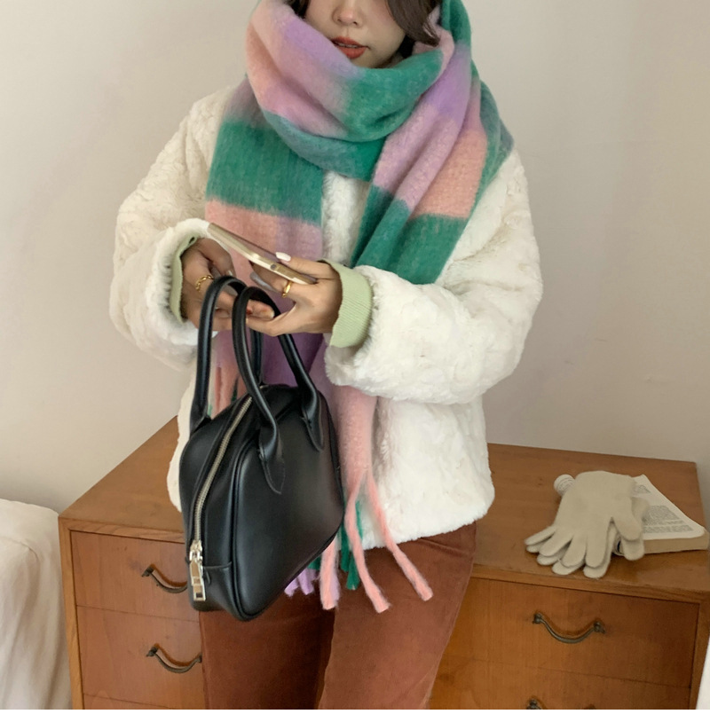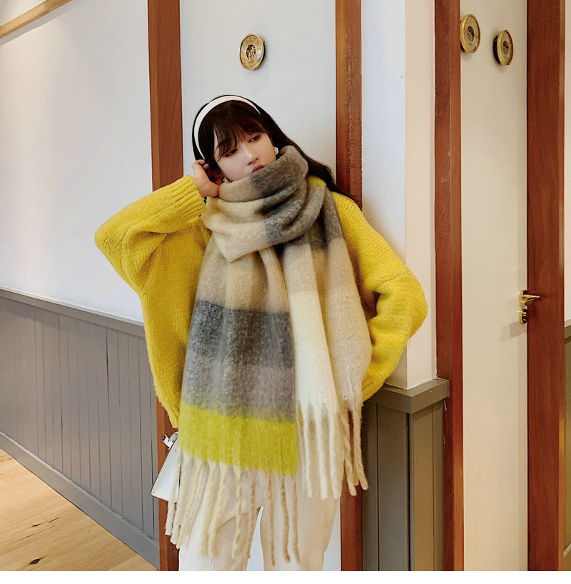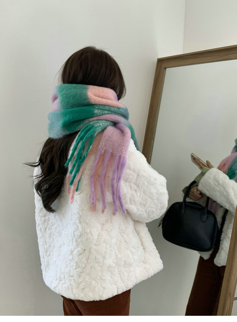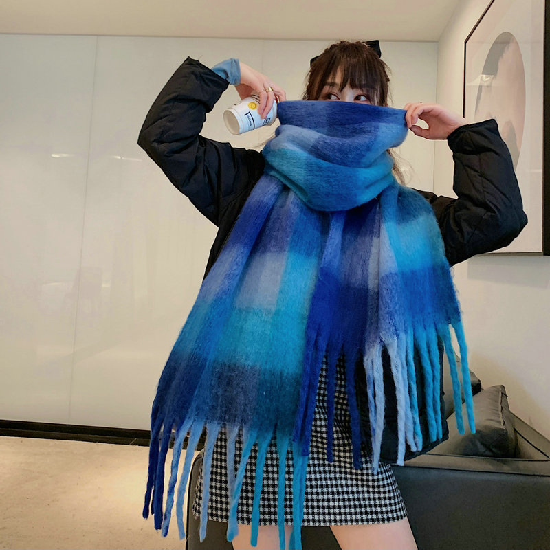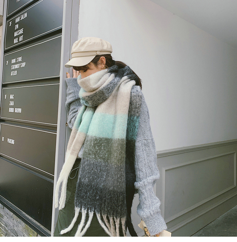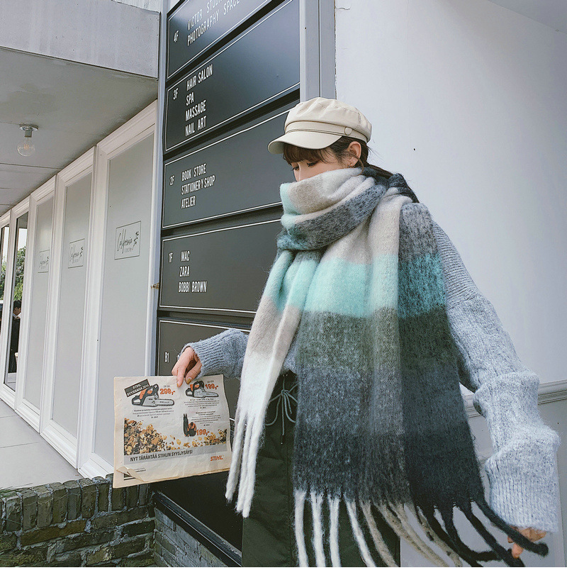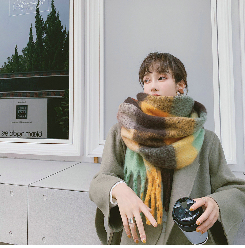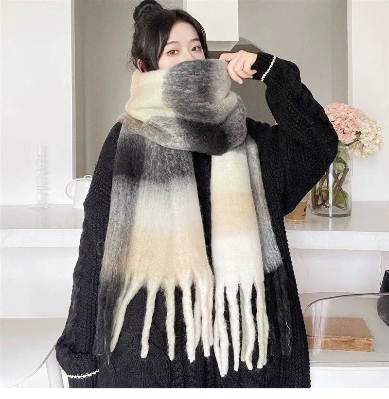 레인보우 스카프 쓰촨성 서부 2025 신상 겨울 고급 스카프 여성용 한국 스타일 체크 무늬 분위기 있는 따뜻하고 다용도 숄스토어 가기