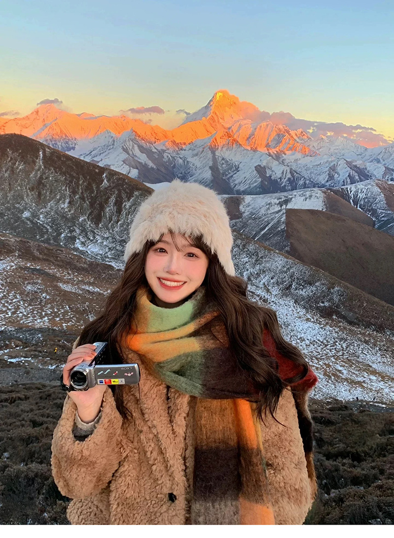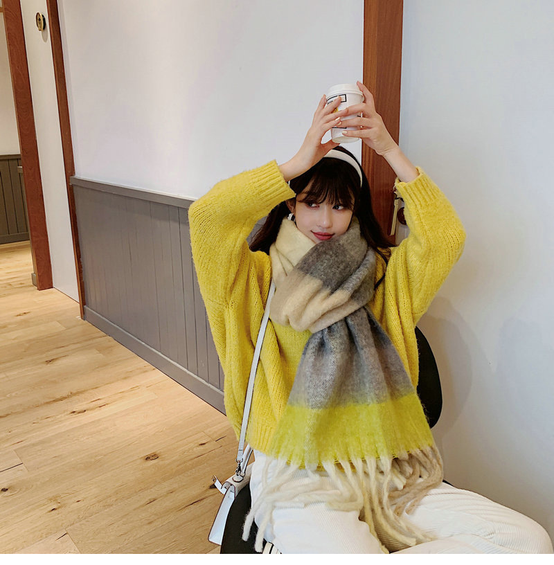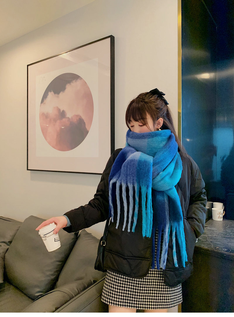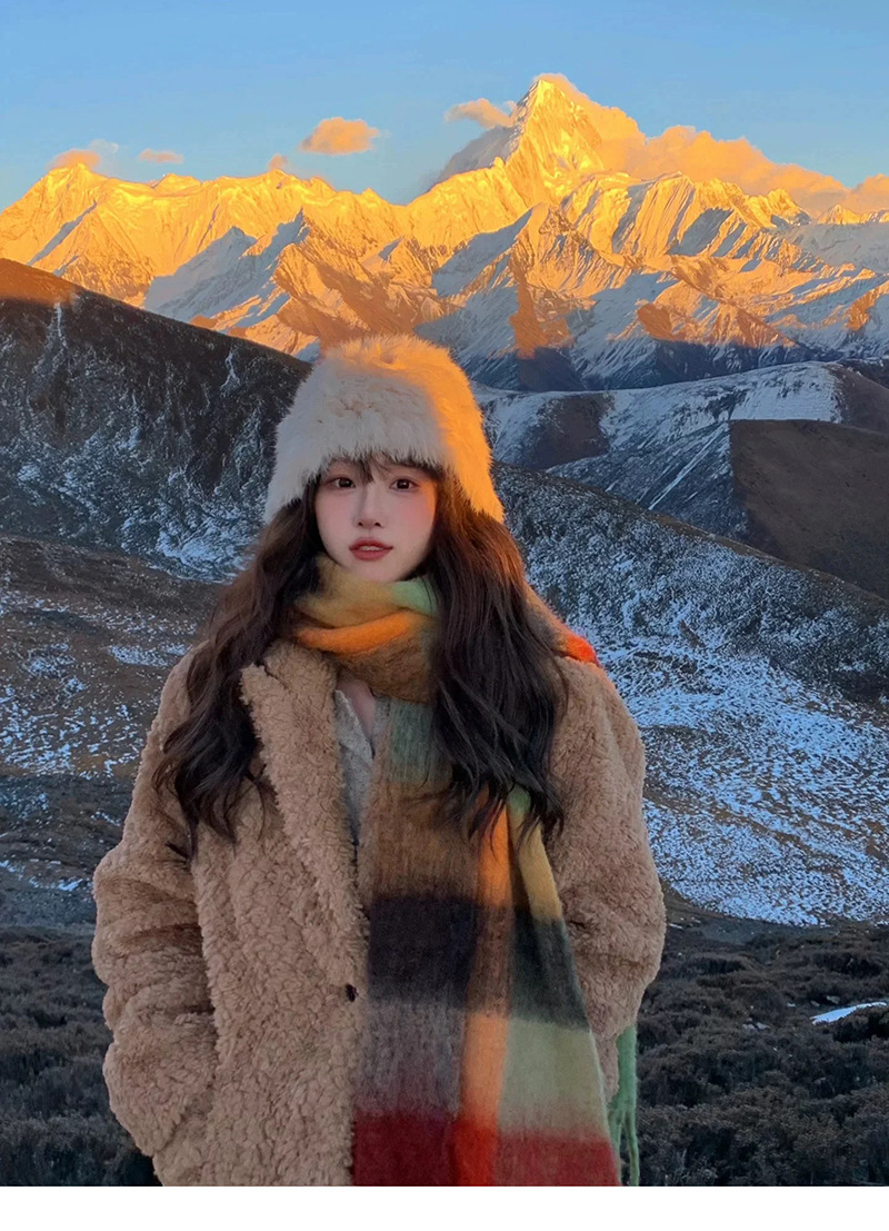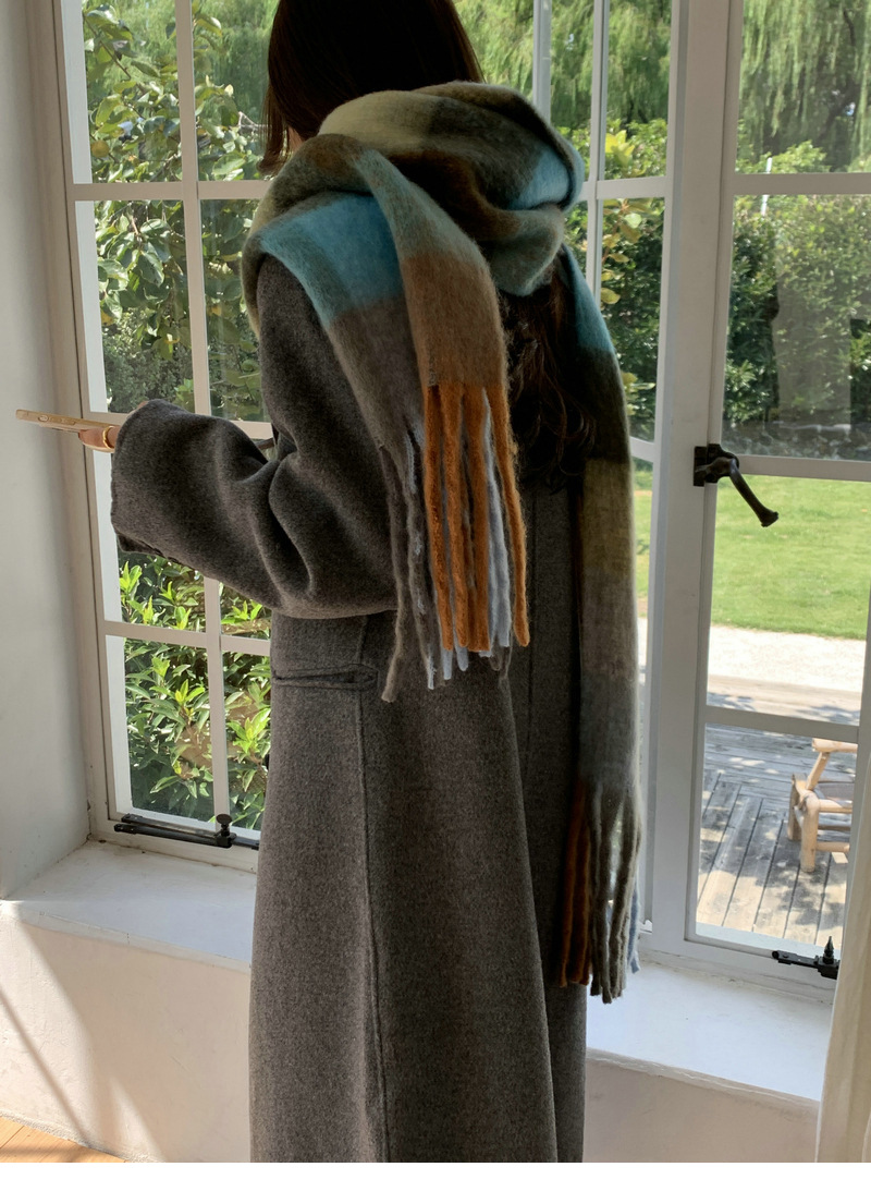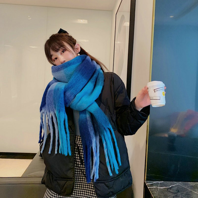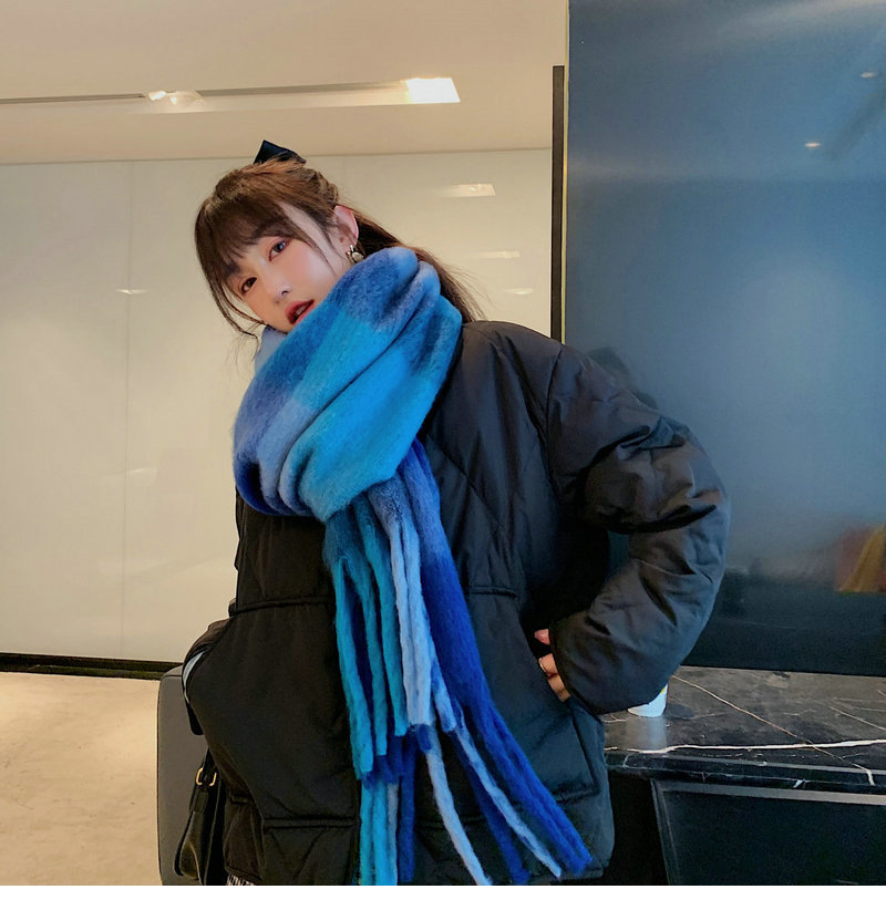 레인보우 스카프 쓰촨성 서부 2025 신상 겨울 고급 스카프 여성용 한국 스타일 체크 무늬 분위기 있는 따뜻하고 다용도 숄스토어 가기