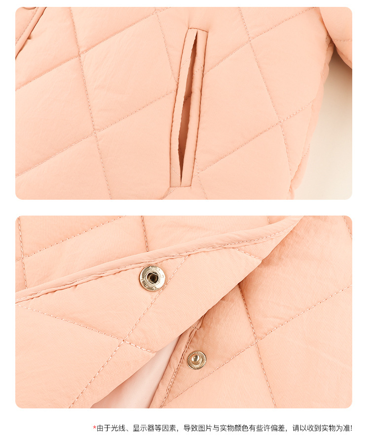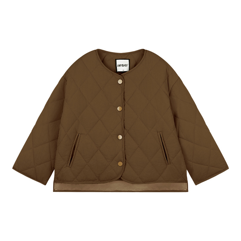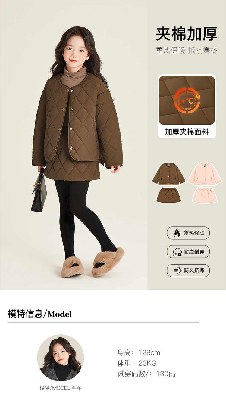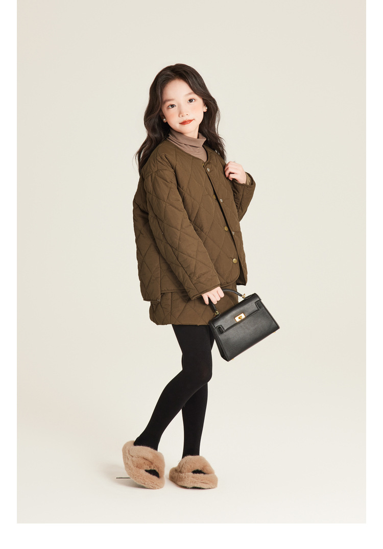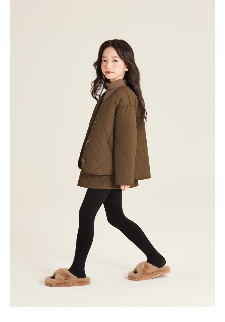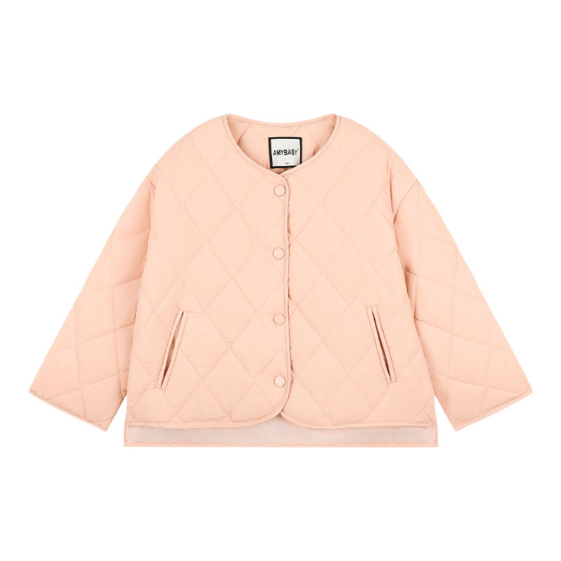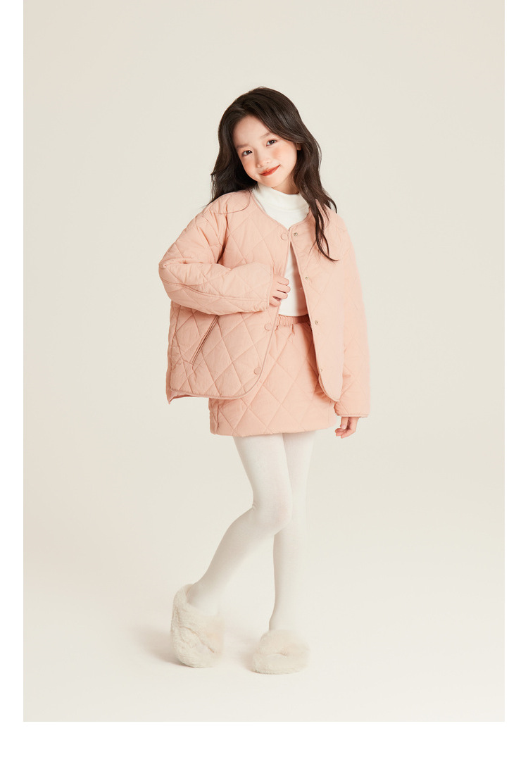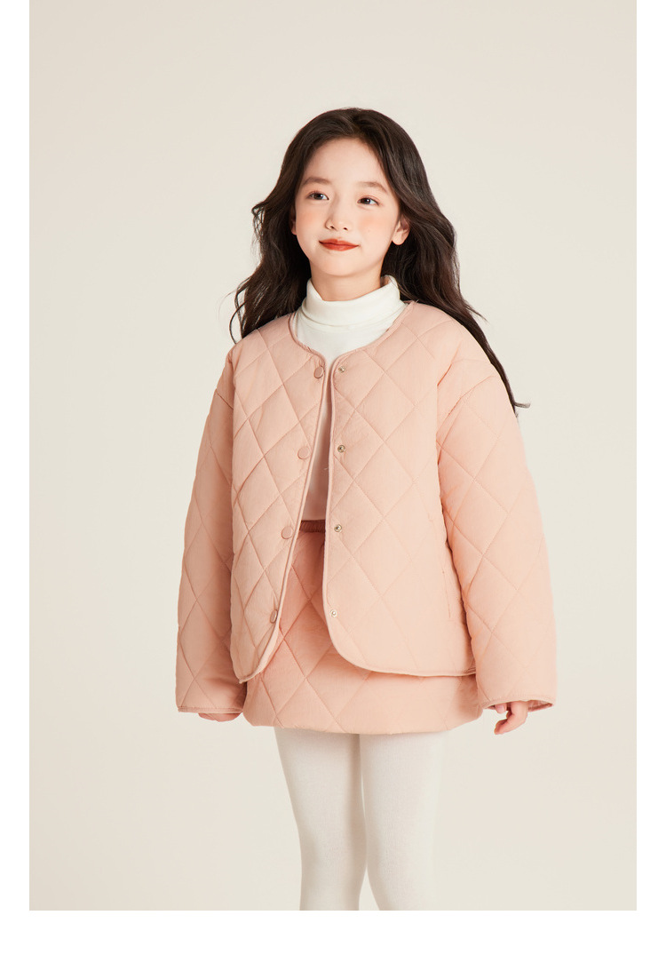 Amybaby 소녀 세트 겨울 2024 새로운 다이아몬드 체크 무늬 단색 둥근 목 따뜻한면 패딩 재킷 스커트스토어 가기