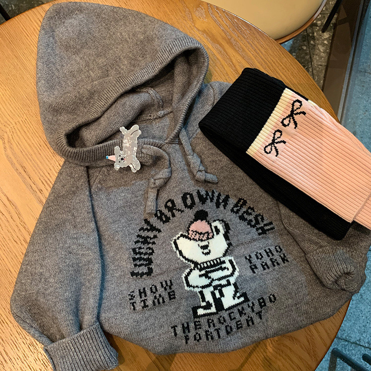 2024 새로운 가을과 겨울 옷 어린이 아기 편지 니트 스웨터 풀오버 소녀의 서양식 만화 스웨터 후드스토어 가기