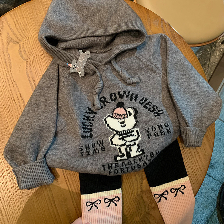 2024 새로운 가을과 겨울 옷 어린이 아기 편지 니트 스웨터 풀오버 소녀의 서양식 만화 스웨터 후드