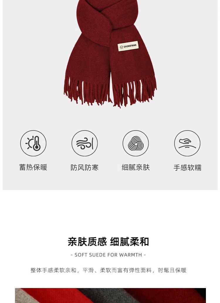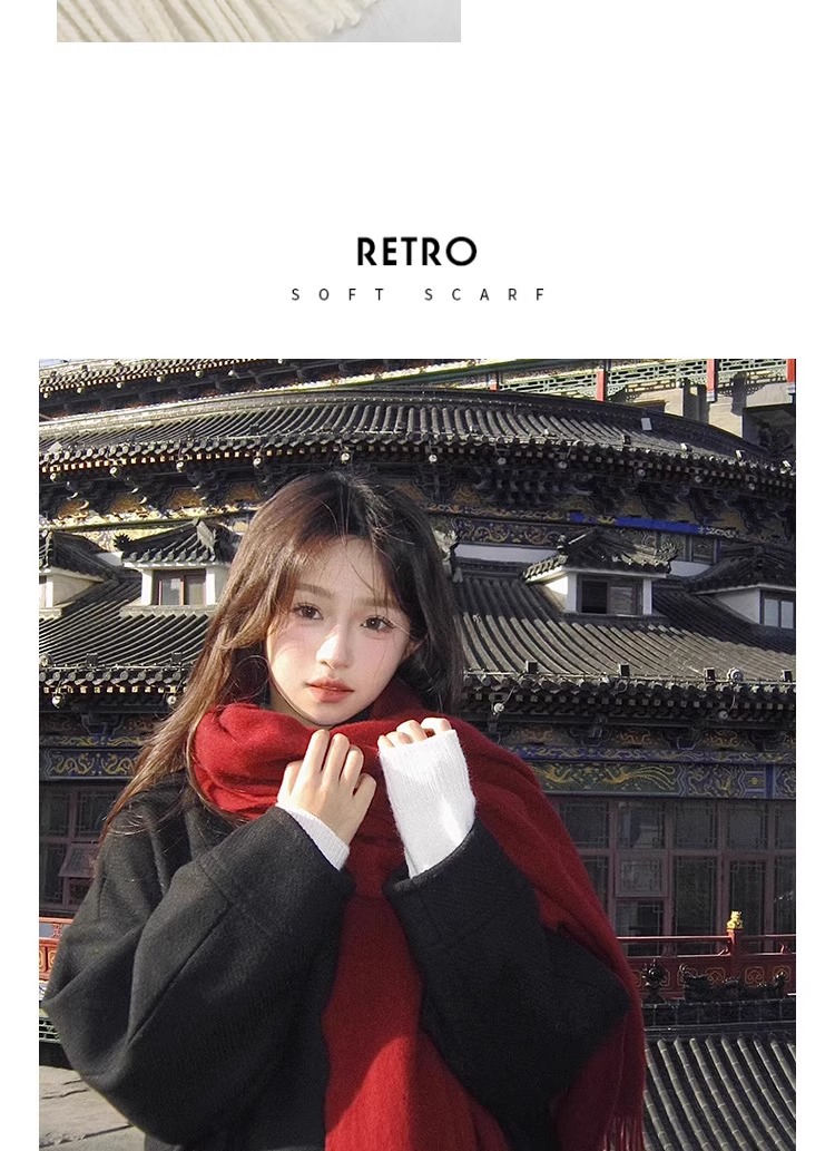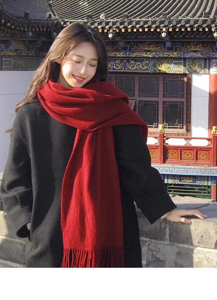 빨간색 스카프 여성용 가을 겨울 따뜻한 크리스마스 선물 커플용 모조 캐시미어 스카프 한국 스타일 분위기 있는 단색 숄