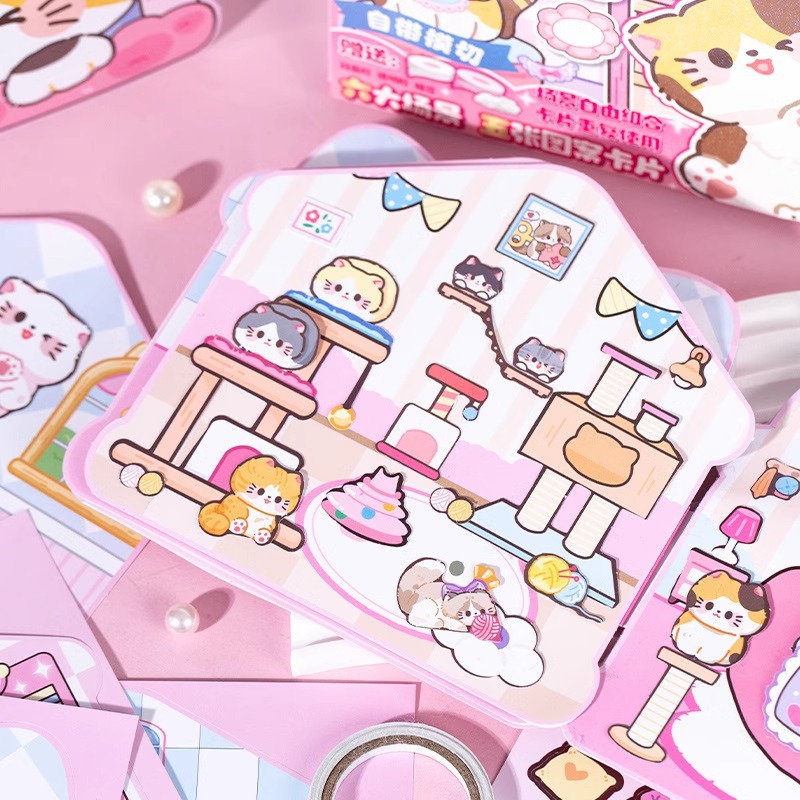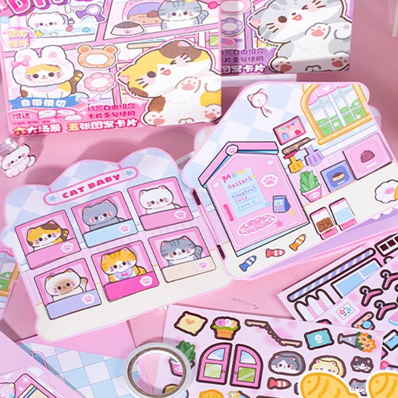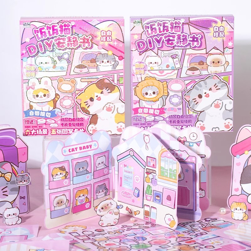 새끼 고양이 애완 동물 조용한 책 컷 프리 수제 어린이 DIY 소녀 장난감 고양이 입체 생산 재료스토어 가기