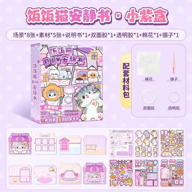 • DIY 조용한 책⭐[작은 보라색 상자] - 무료 핀셋