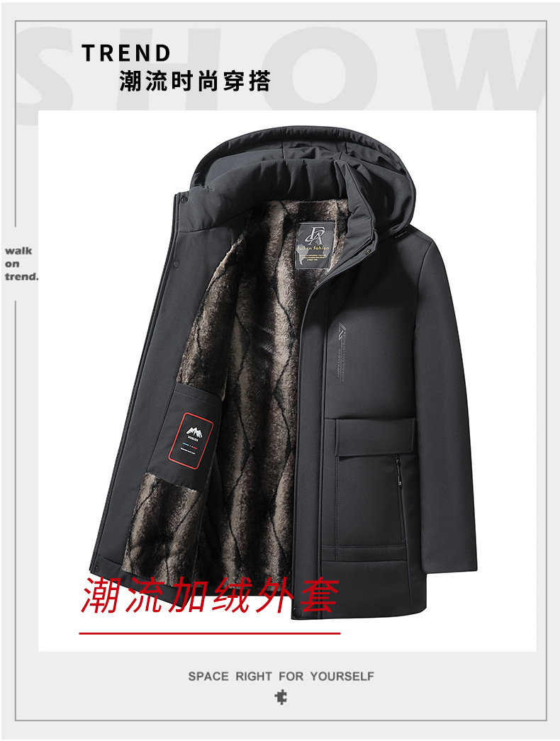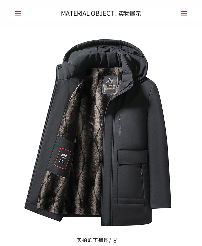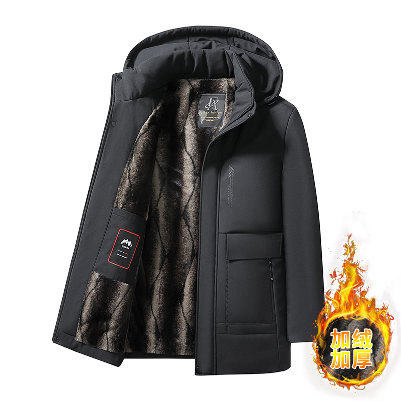 남자 2024 가을 및 겨울 코튼 코트 기모 두꺼운 중년 및 노인 코튼 코트 면화 패딩 재킷 후드 기모 아빠 겨울 코트
