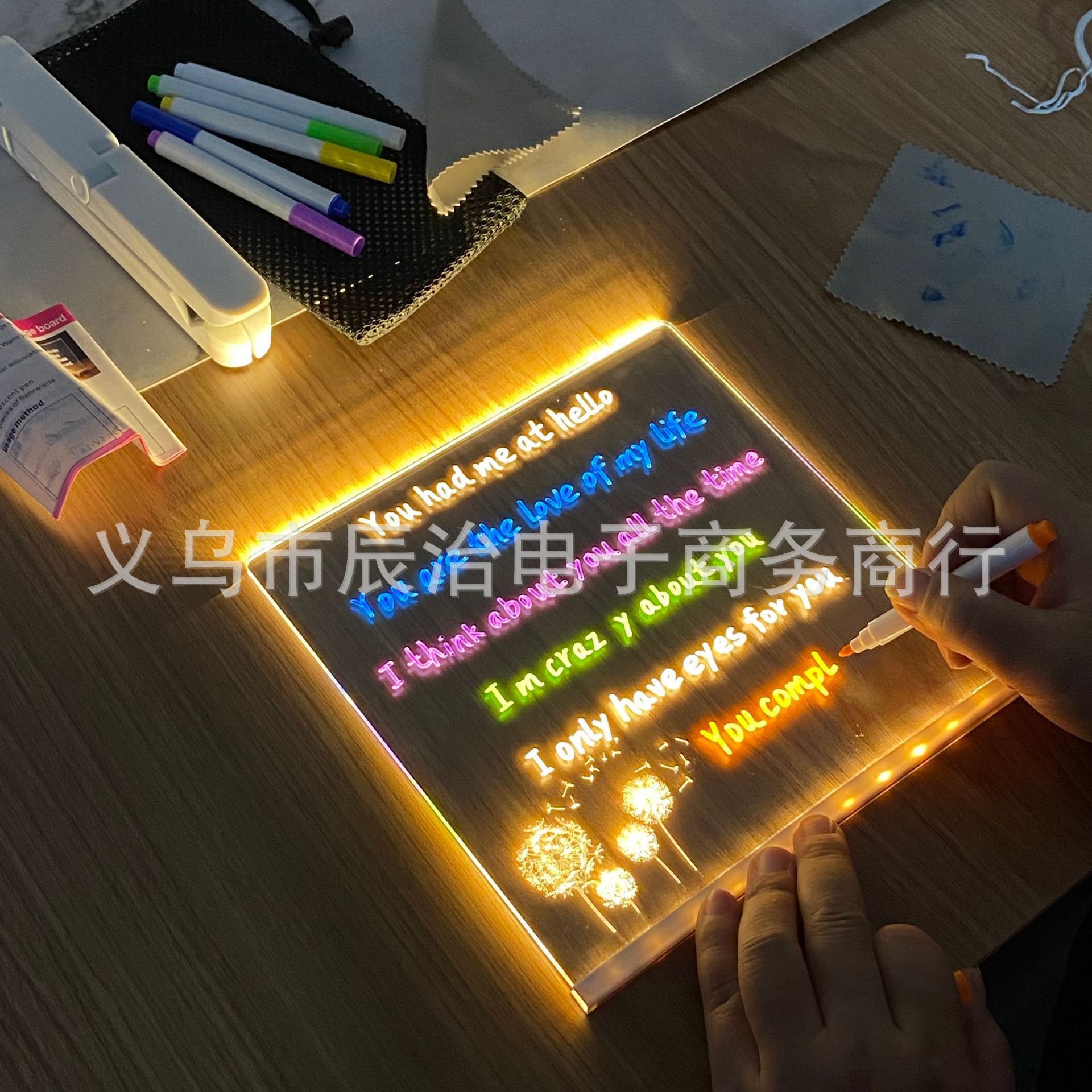 • 20*20cm-다채로운 펜-투명 양면 쓰기 아크릴 발광 쓰기 메시지 보드