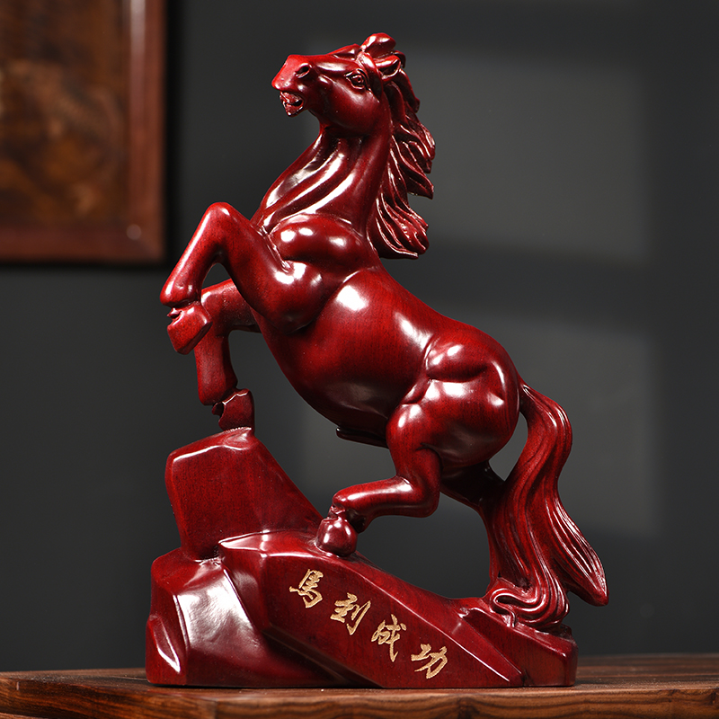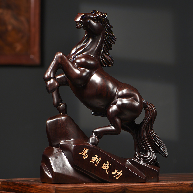 Ebony Solid Wood Horse 장식품 성공 공예품에 목제 조각 집 거실 데스크탑 오프닝 선물 구름스토어 가기
