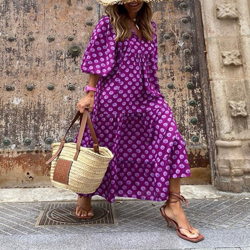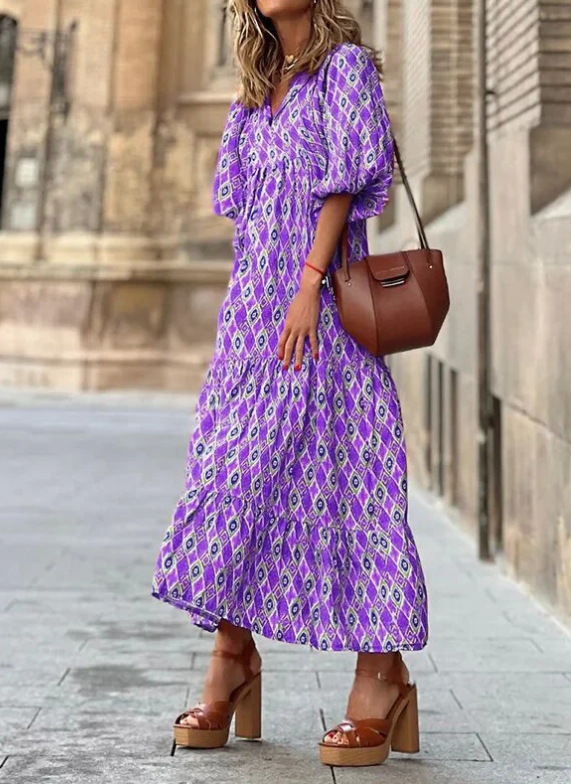 국경을 넘나 드는 유럽과 미국의 플러스 사이즈 여성 기하학 루센 보헤미안 라운드 넥 랜턴 슬리브 스위트 소녀의 원피스스토어 가기