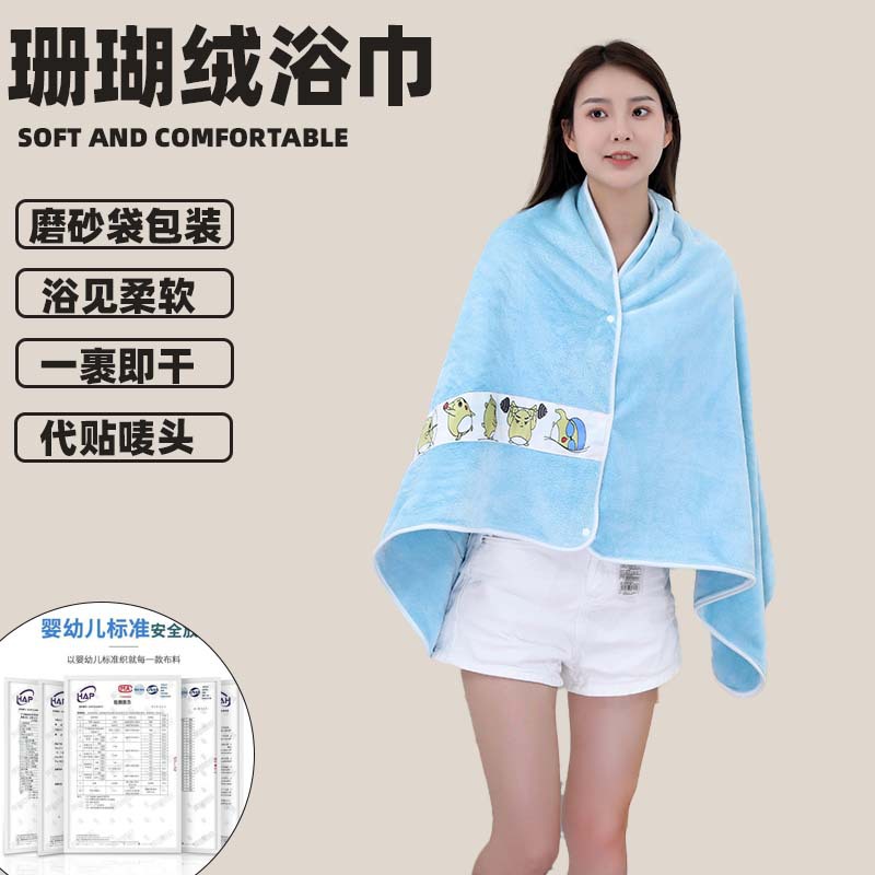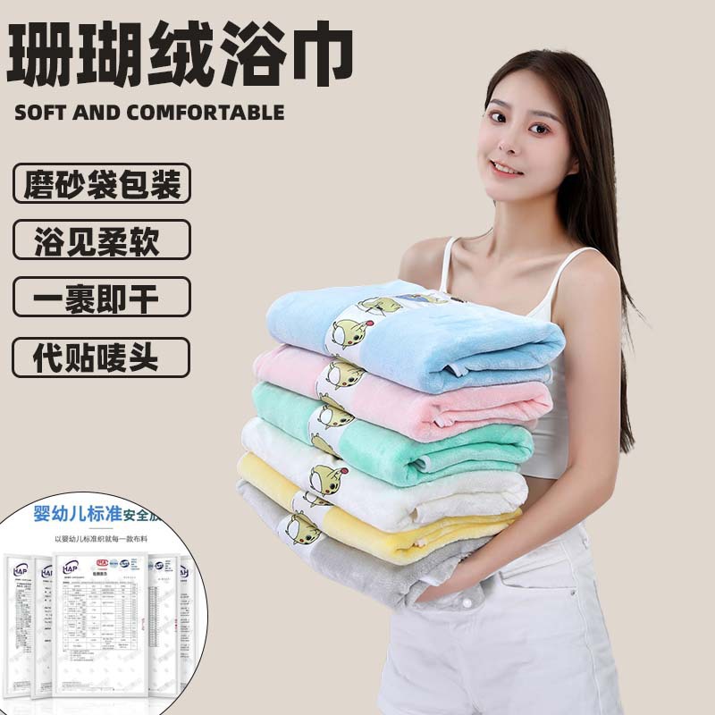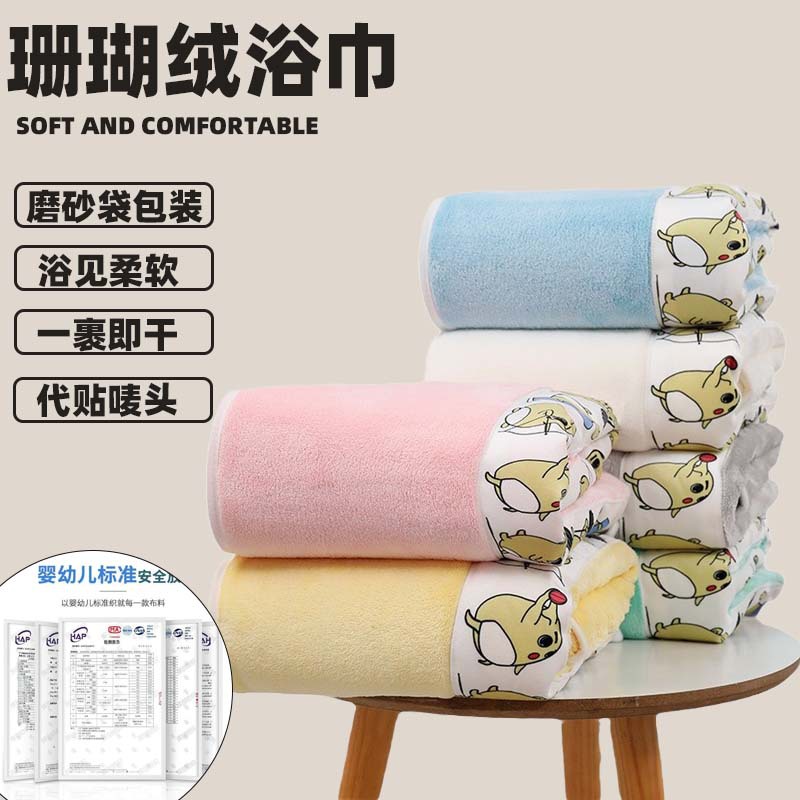 항균 산호 양털 목욕 타월 부드러운 두꺼운 귀여운 만화 어린이 비치 타월 흡수성 빠른 건조 타월 비치 타월스토어 가기