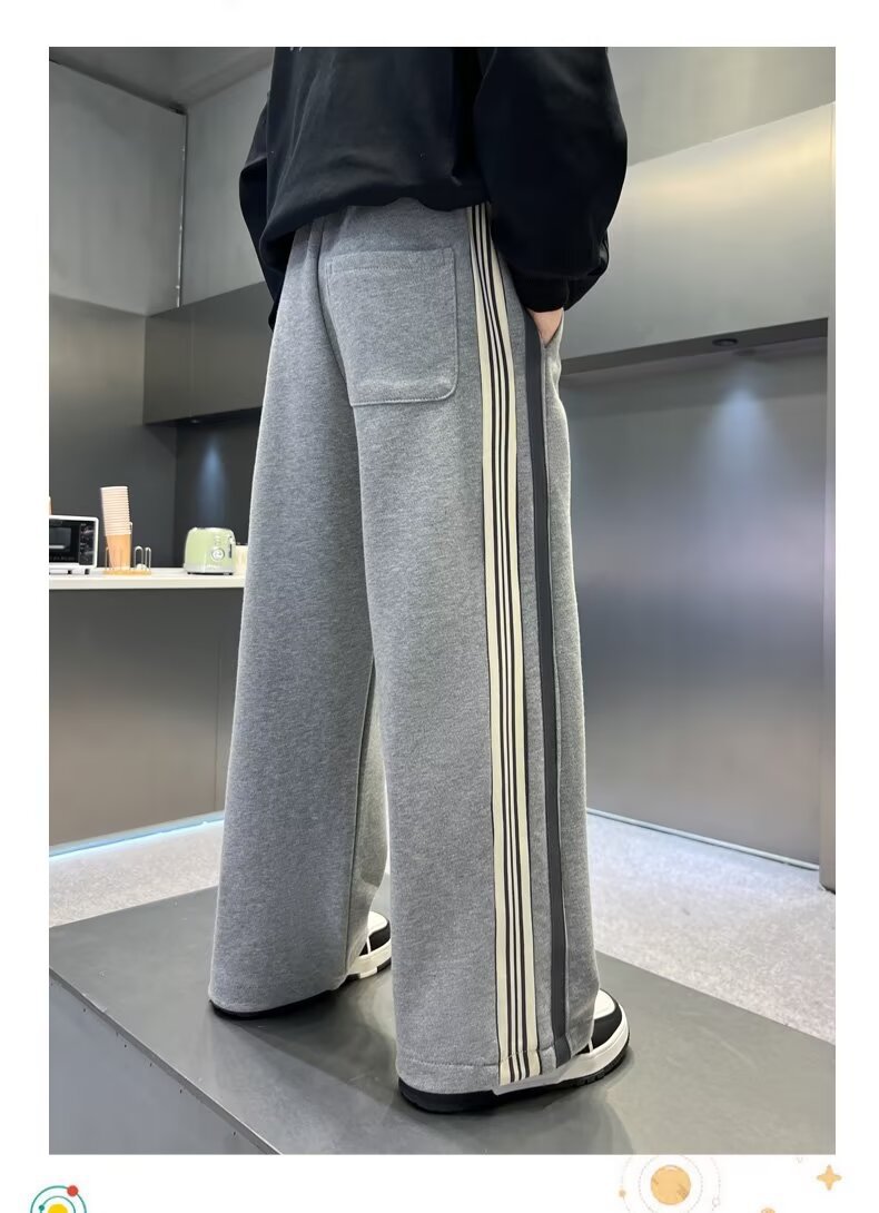 소년 바지 넓은 다리 바지 2024 년 봄과 가을 새로운 어린이 가을 스포츠 바지 큰 어린이 기모 운동복 잘 생긴 유행