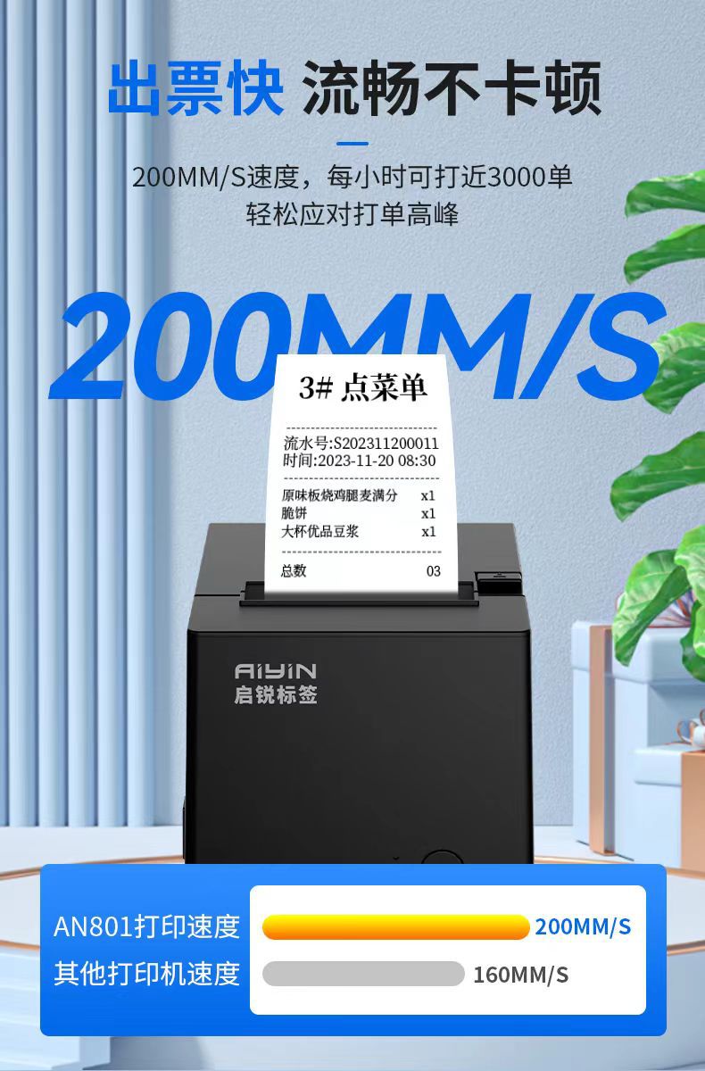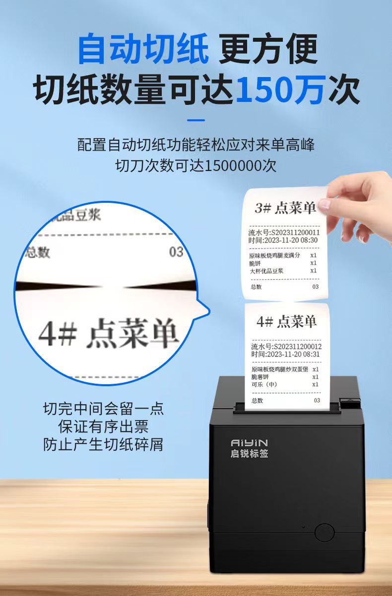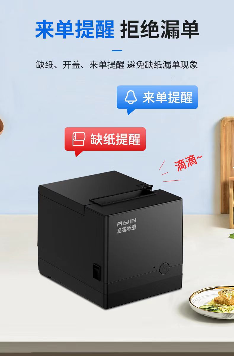 열 영수증 주문 인쇄 기계 80mm Meituan 테이크 아웃 프론트 데스크 영수증 후면 주방 주문 프린터 음성 방송
