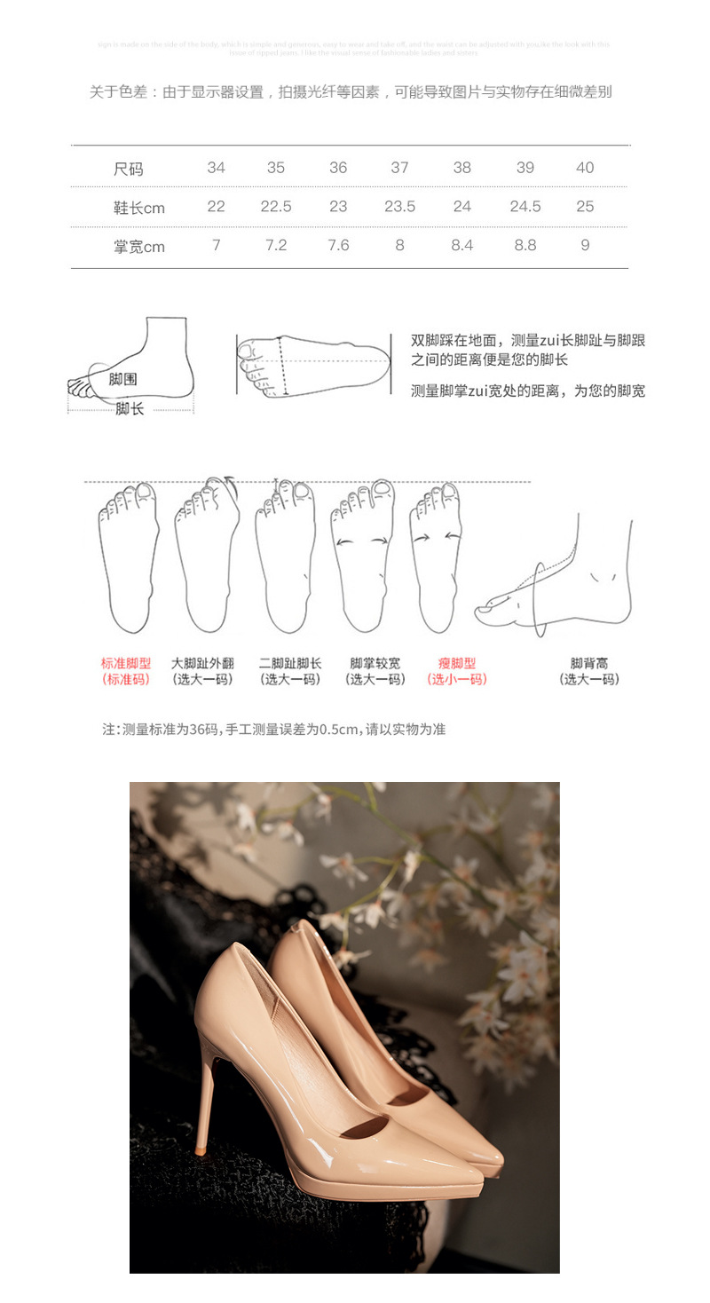 8899-1 새로운 방수 플랫폼 하이힐 여성의 뾰족한 얇은 힐 에티켓 신발 통근 작업 신발 간단한 피곤하지 않은 발스토어 가기