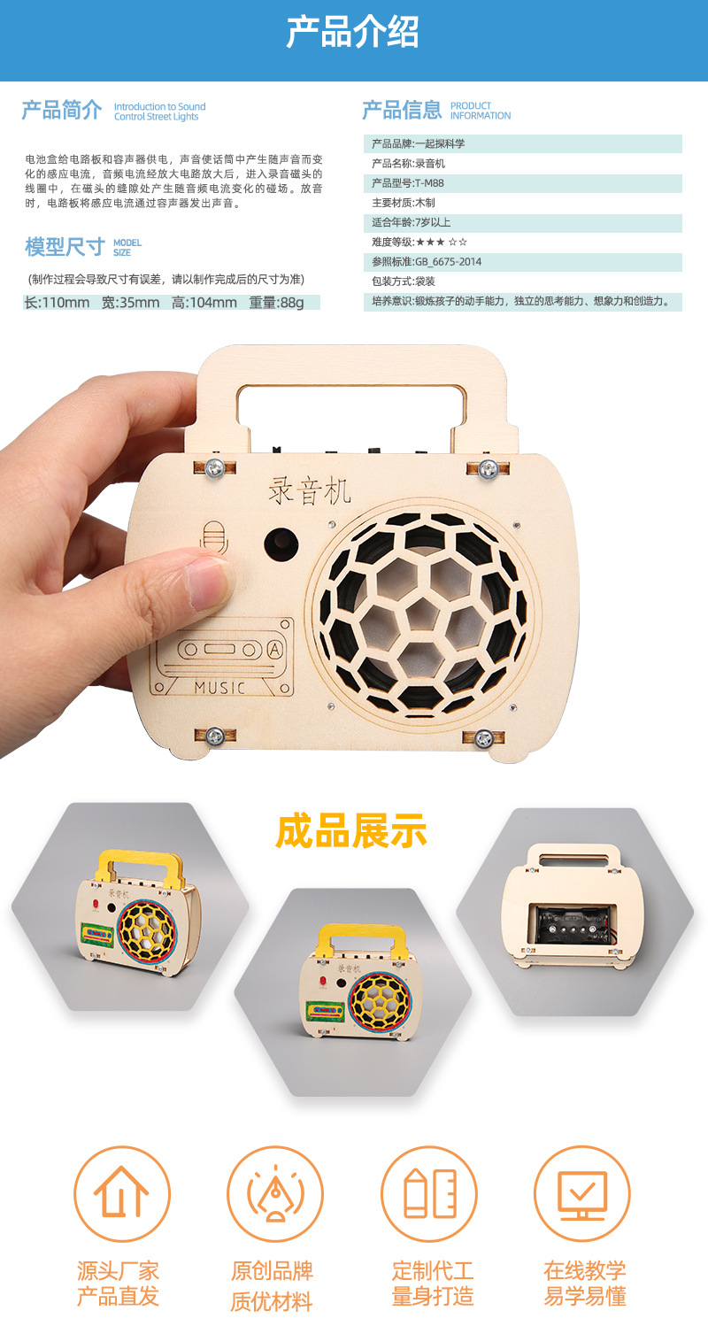 수제 레코더 기술 작은 생산 수제 DIY 수제 조립 교육 보조 창조적 인 과학 실험 교재 패키지