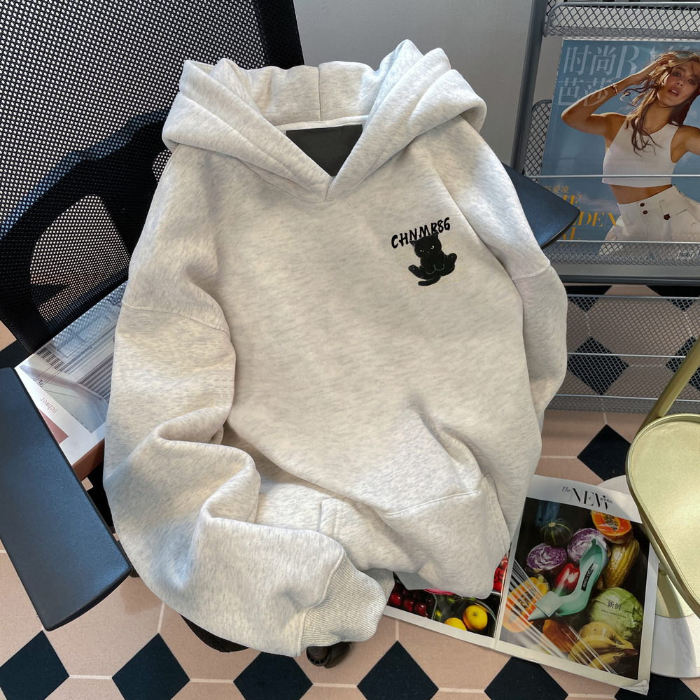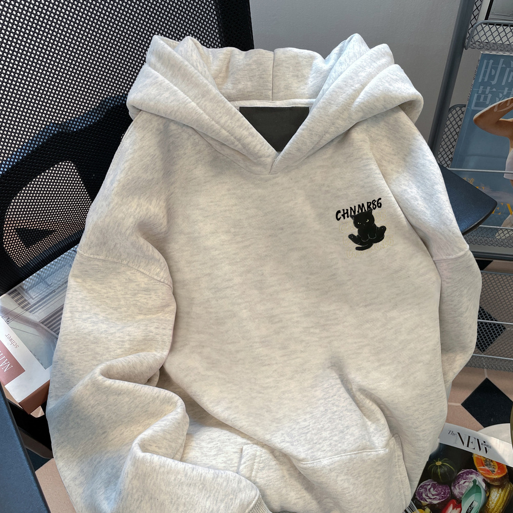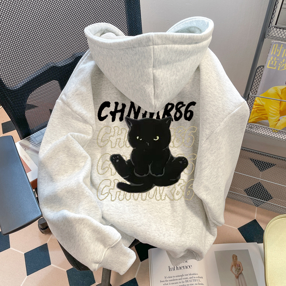 미국 스타일의 트렌디 브랜드 슈퍼 잘 생긴 고양이 인쇄 스웨터 봄 가을 얇은 플러스 사이즈 통통녀 슬리밍 후드 자켓스토어 가기