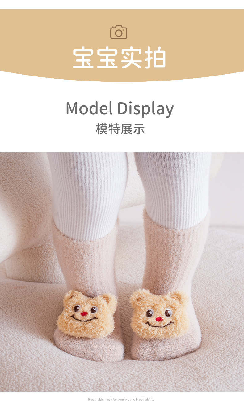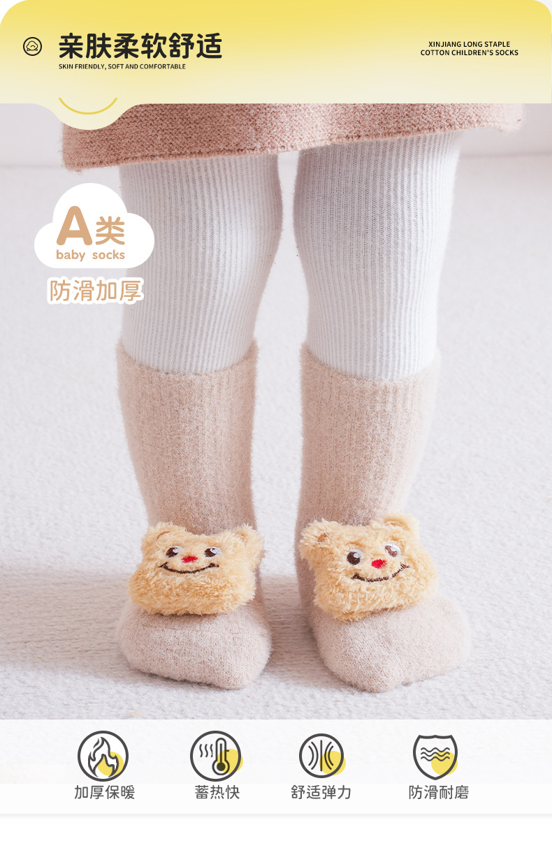 가을과 겨울 기모 두꺼운 아기 양말 신생아 비 슬립 바닥 양말 아기 만화 인형 유아 양말스토어 가기