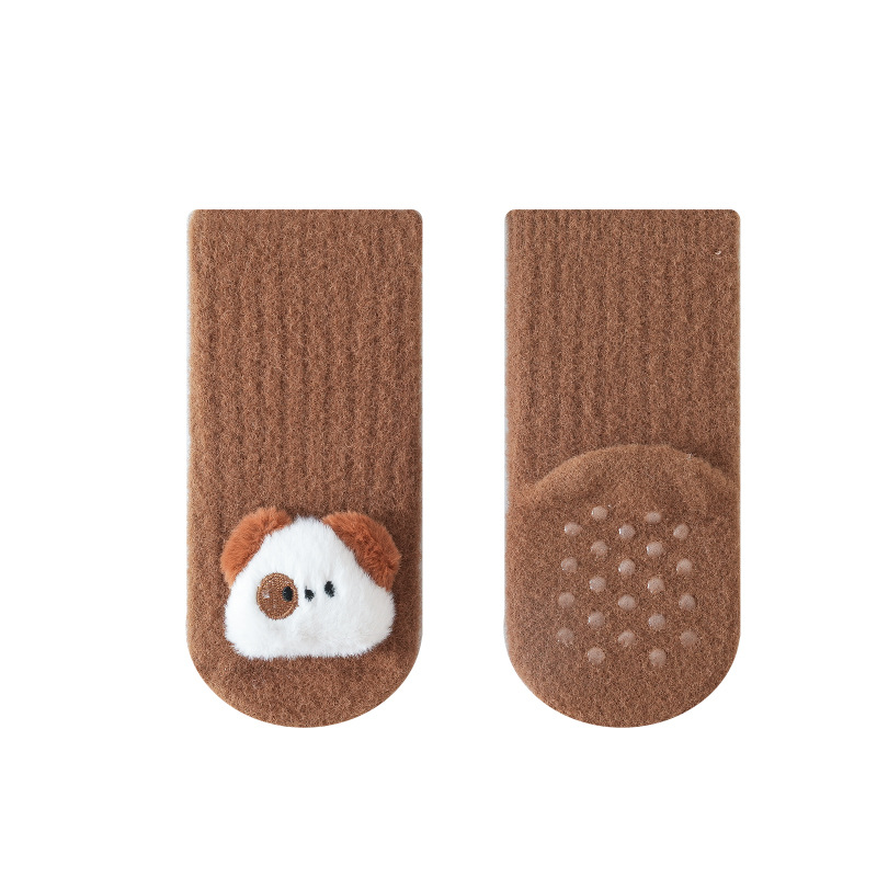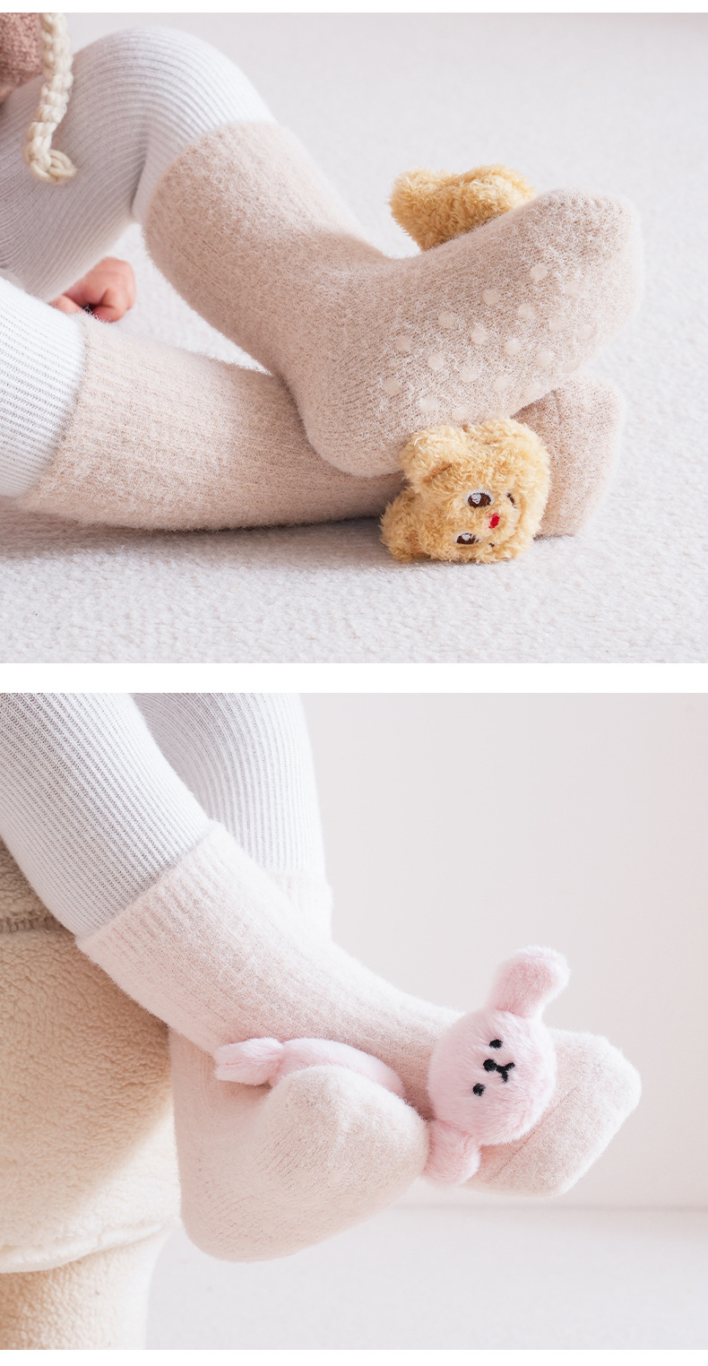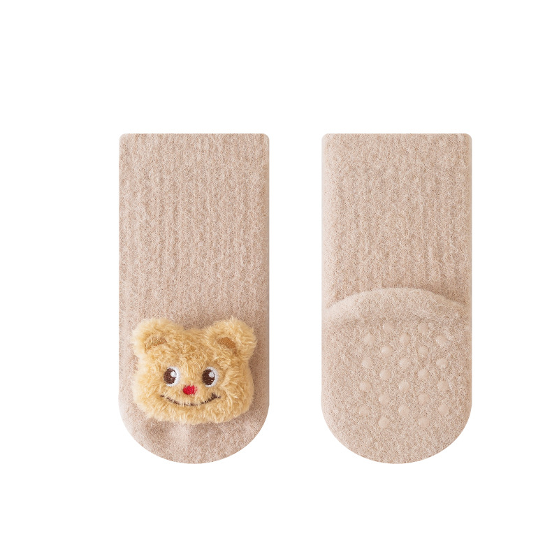 가을과 겨울 기모 두꺼운 아기 양말 신생아 비 슬립 바닥 양말 아기 만화 인형 유아 양말