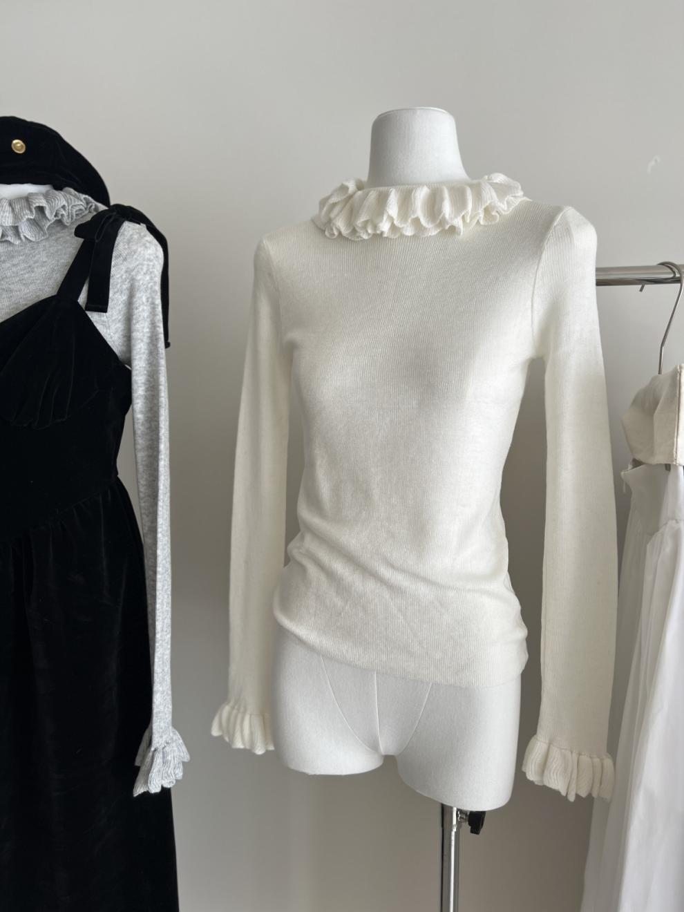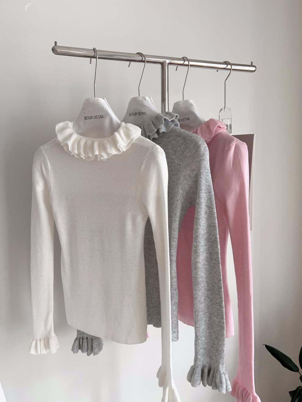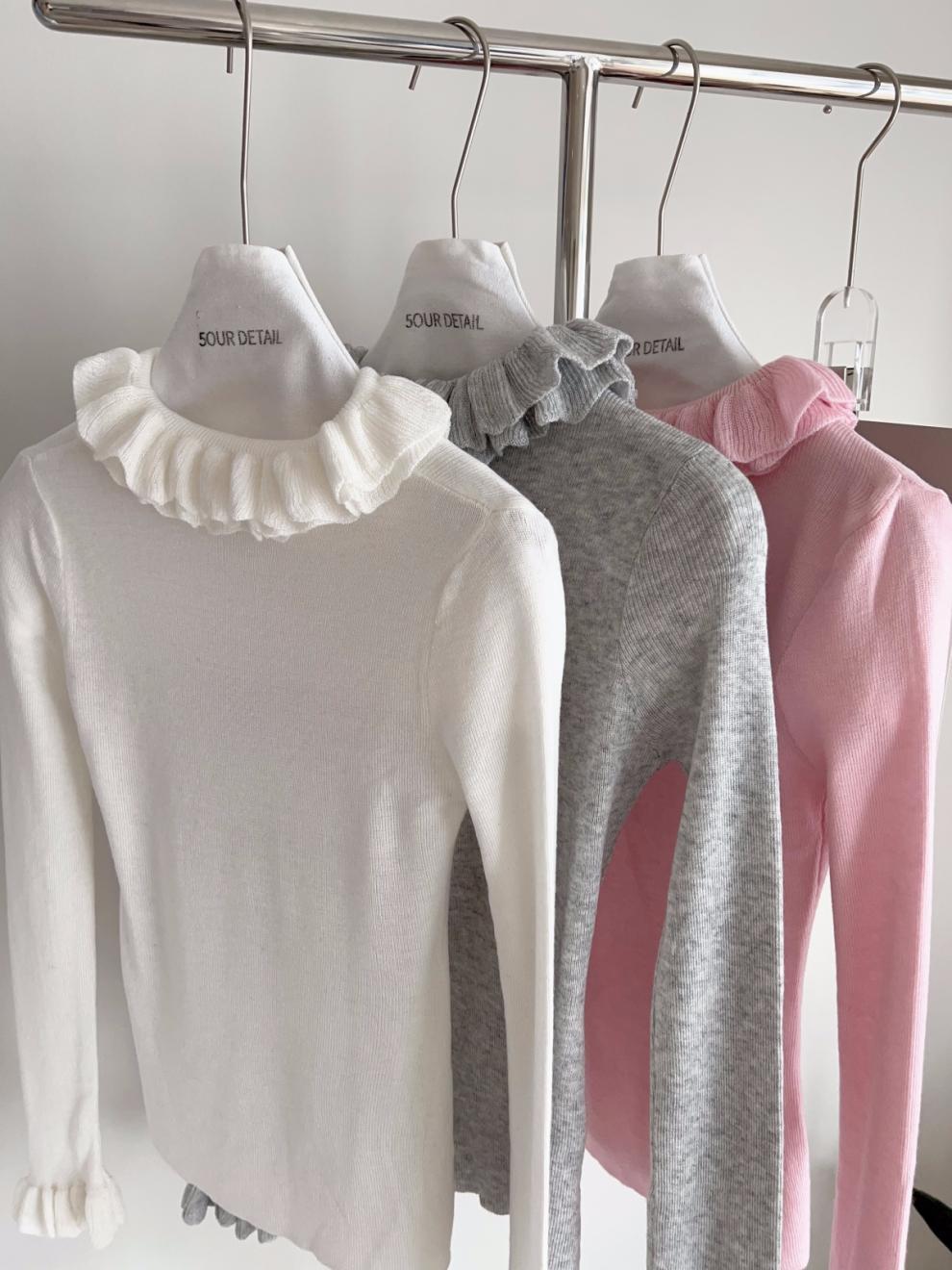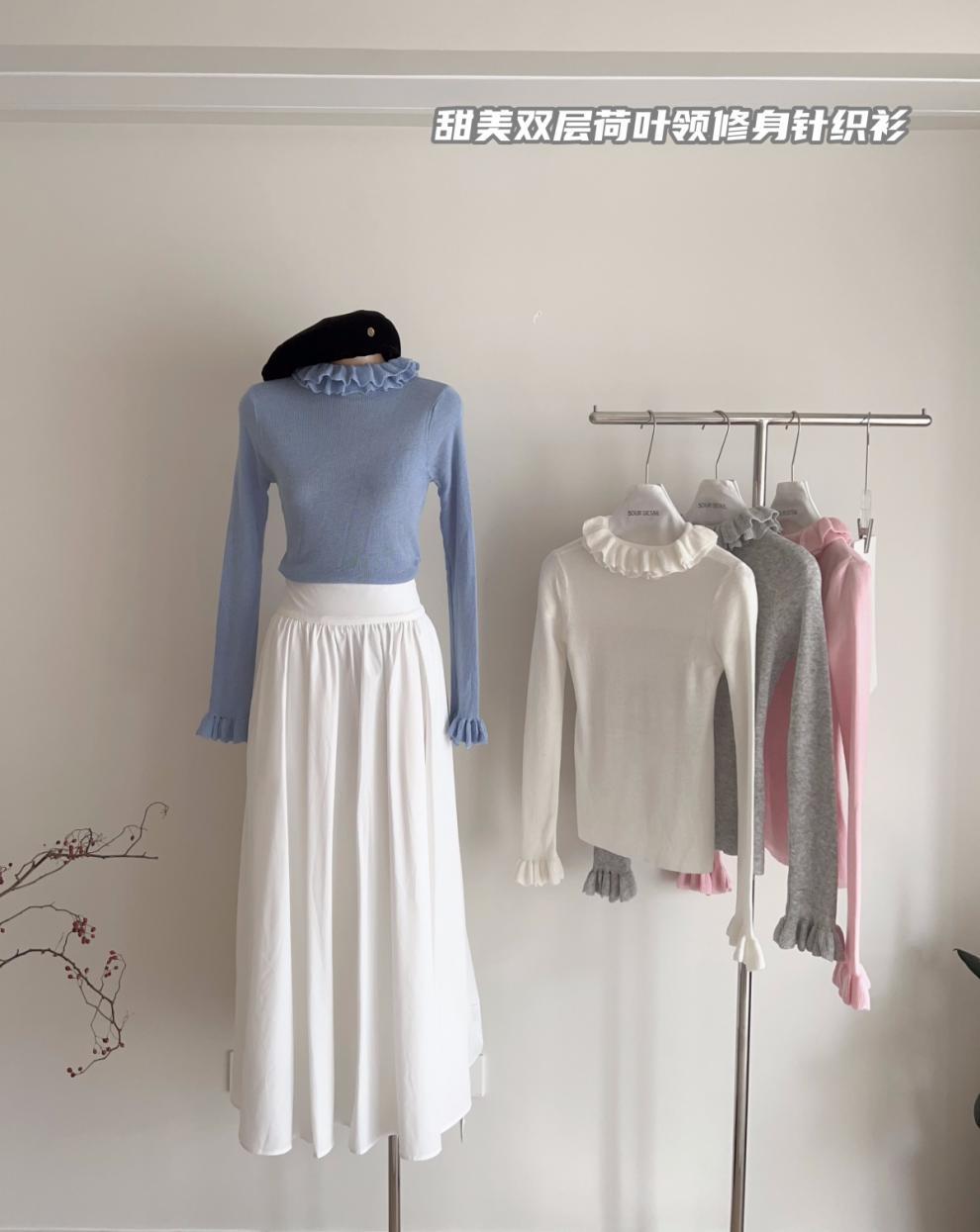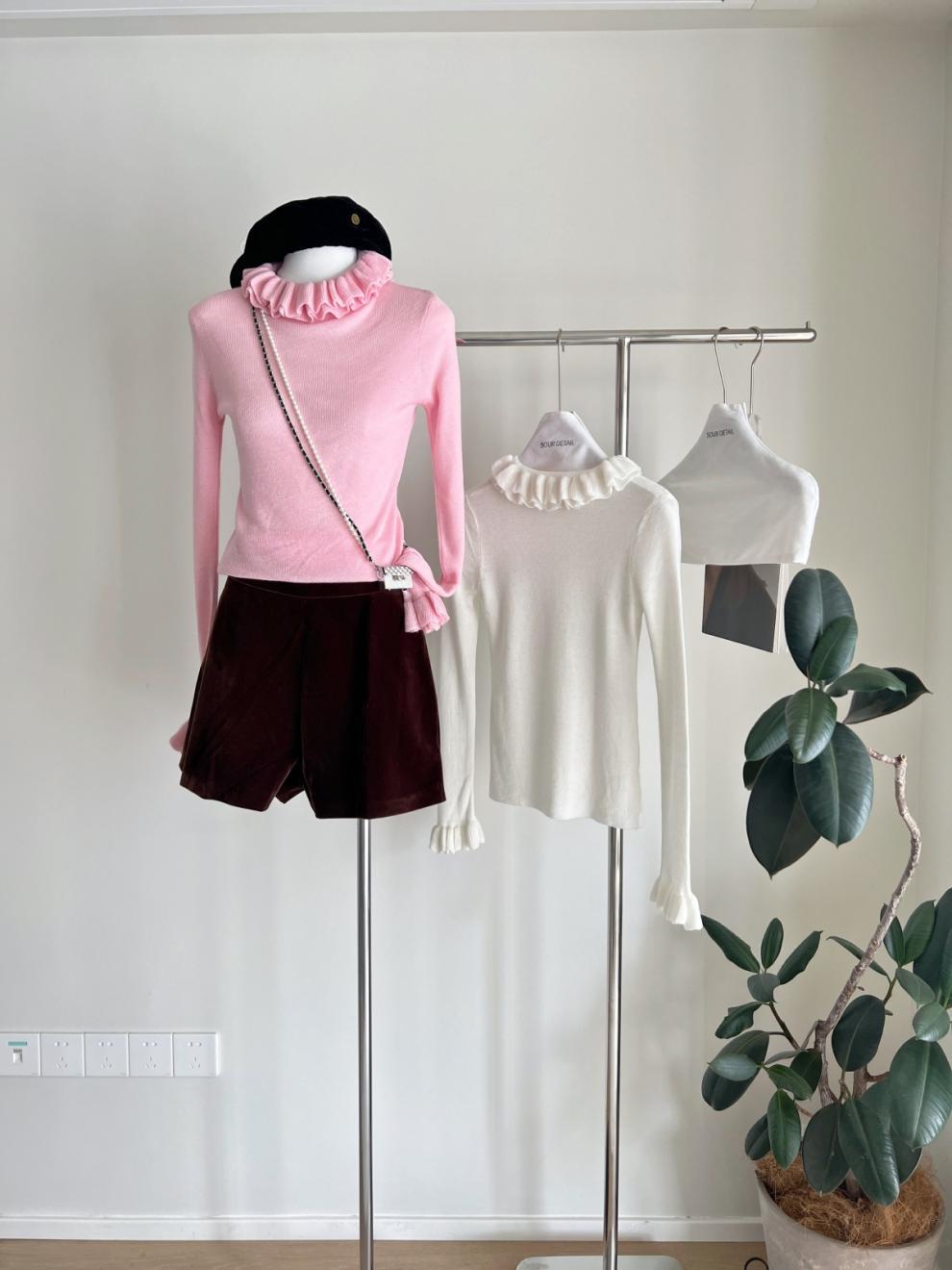 달콤한 나이를 줄이는 연꽃 칼라 더블 레이스 옷깃 슬림 핏 니트 스웨터 우아한 슬리밍 경량 베이스 셔츠 여성용 탑스토어 가기